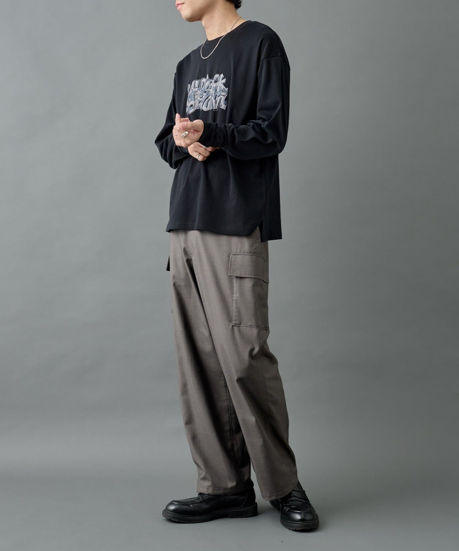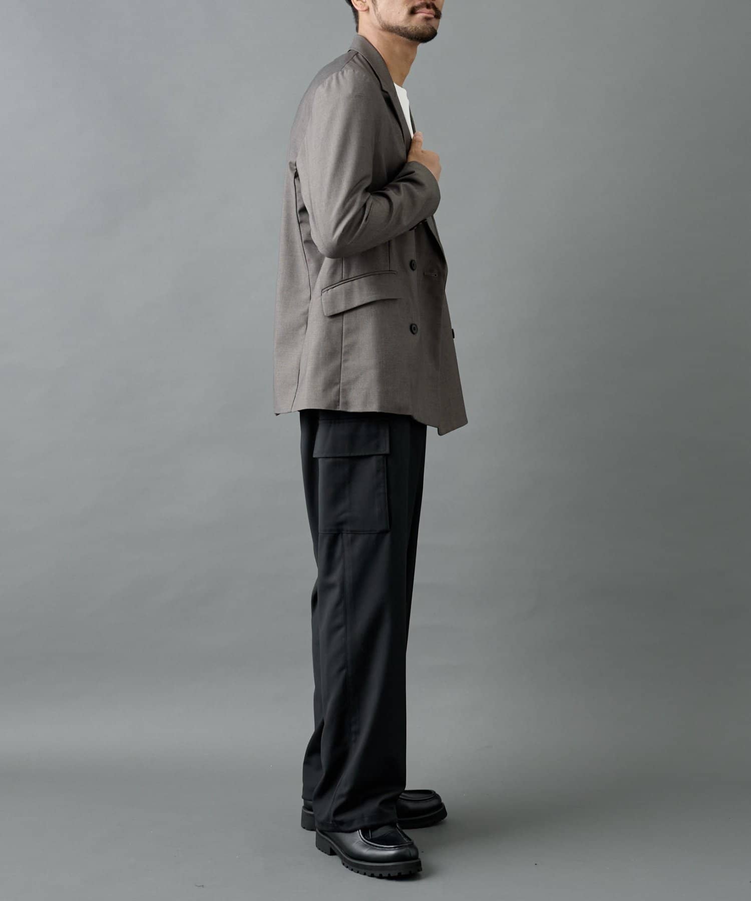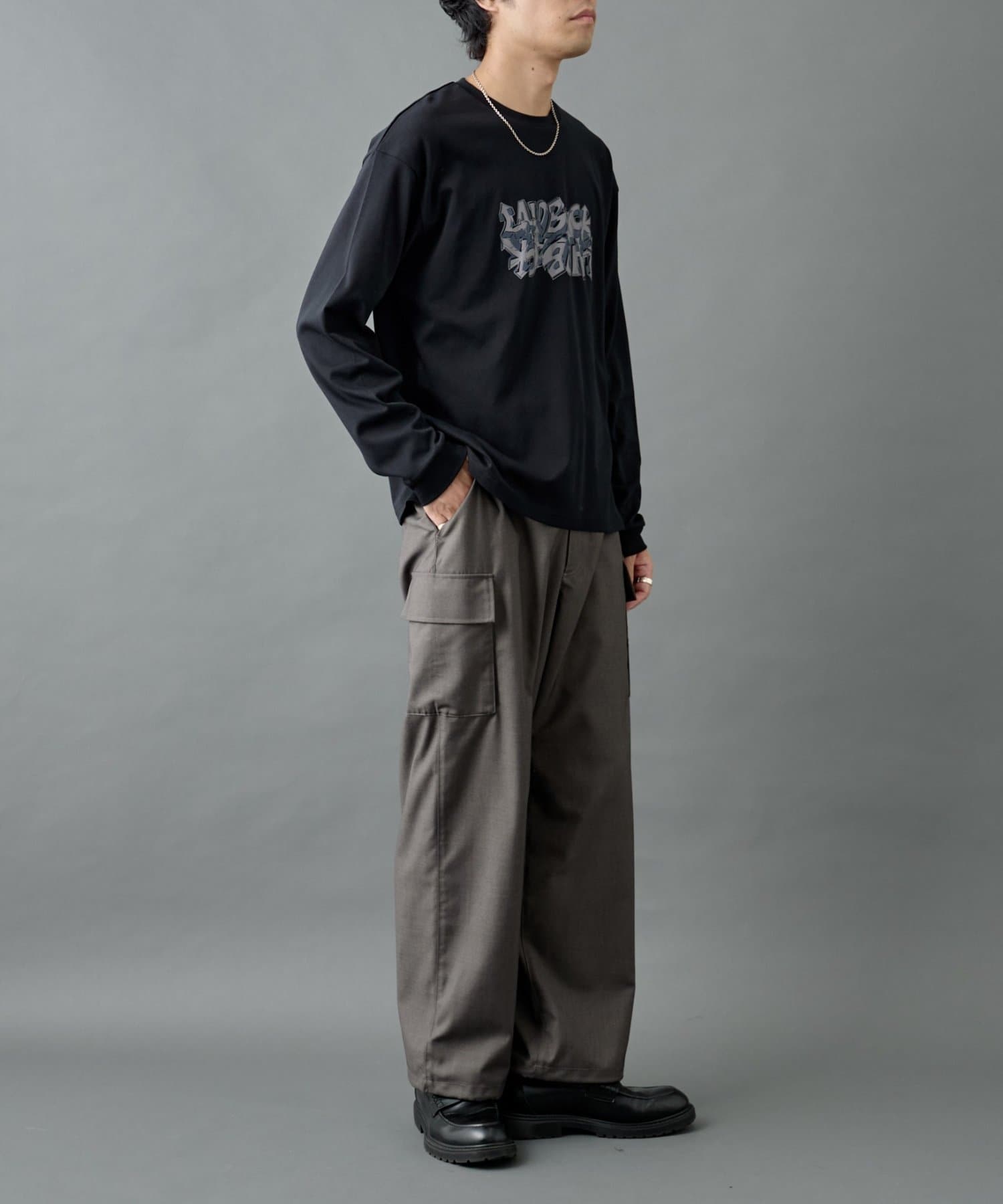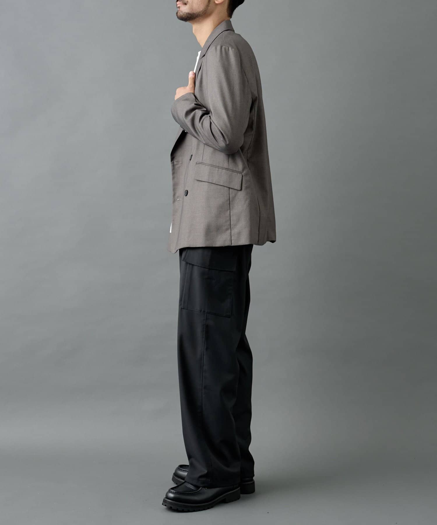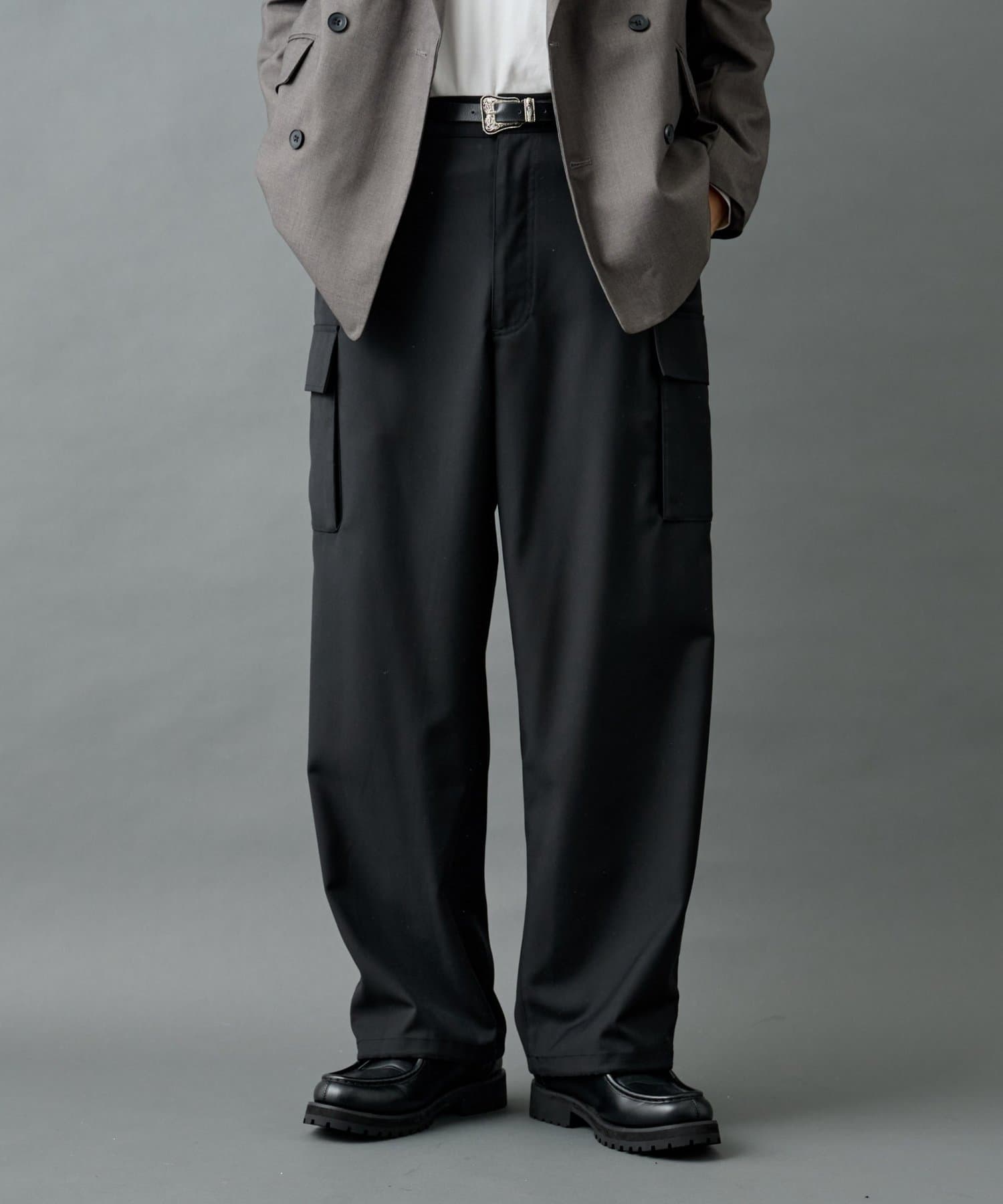 ミリタリー由来のカーゴディテールを、スラックス仕様の美しいシルエットに落とし込んだシルエットがポイントです。