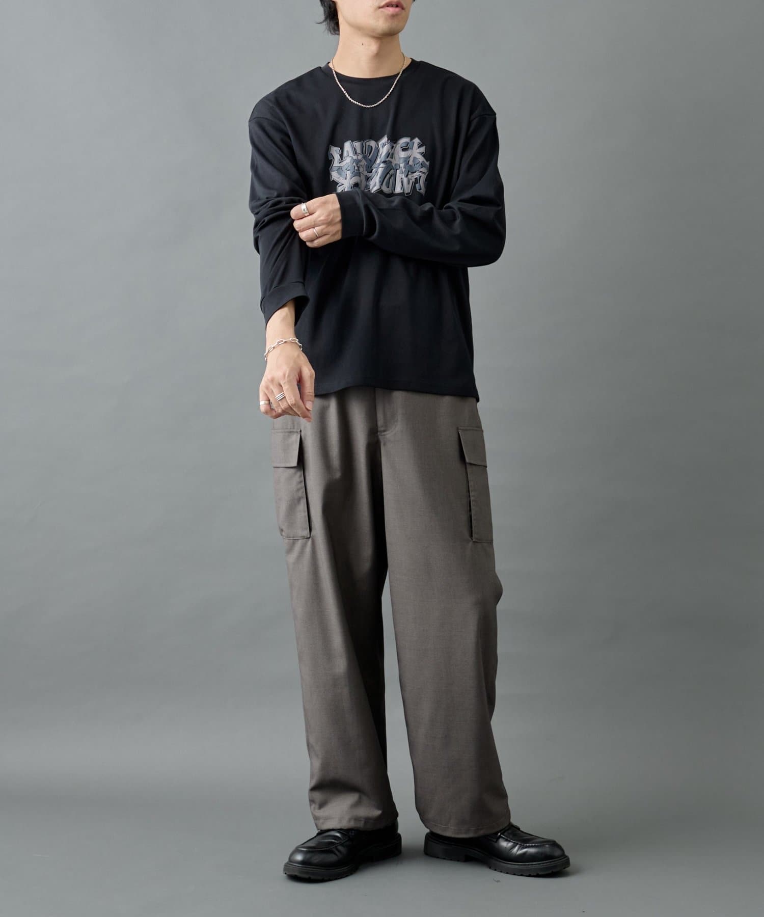ウールライクな高級感を持ちながら、扱いやすく快適な“ウーリートロ素材”を採用したウーリートロカーゴスラックスです。
