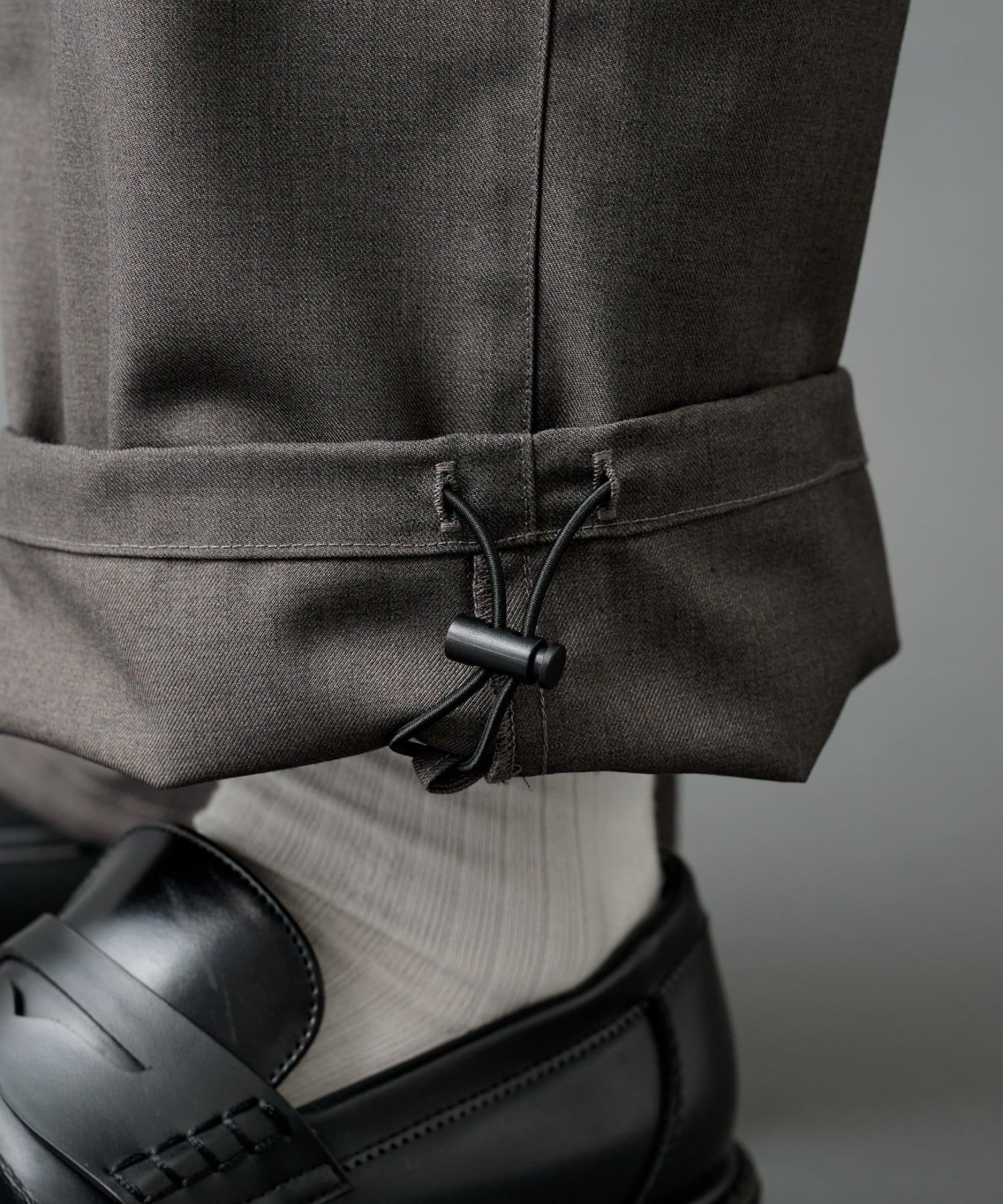 また、裾にはドローコードがついているため、好きなシルエット、丈感に調節ができ、機能性も抜群です。