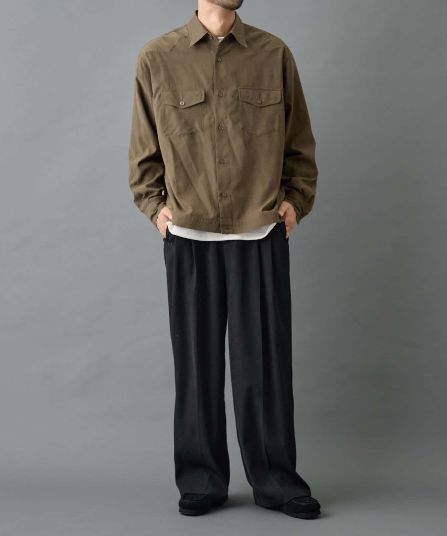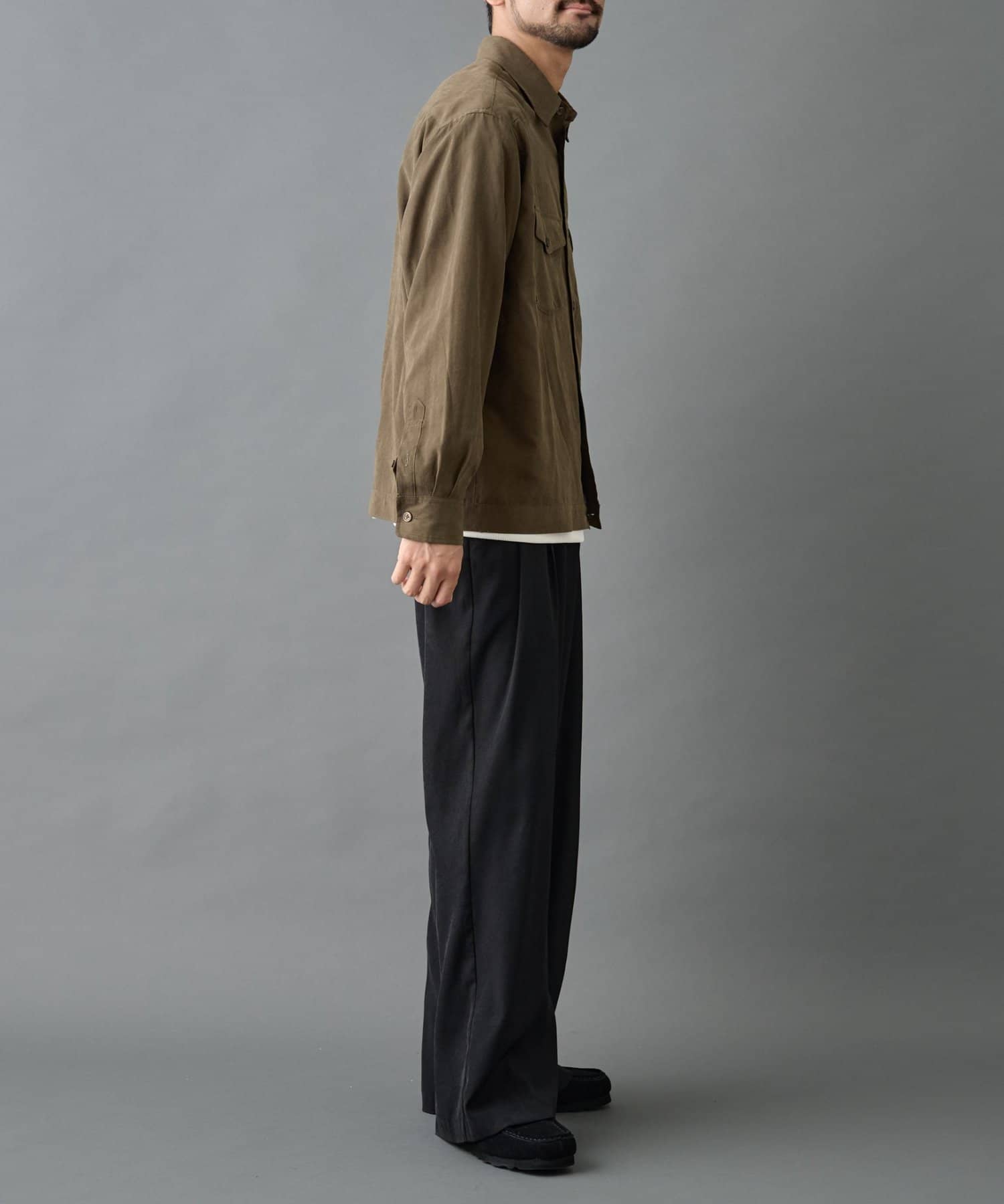 ヨーク切り替えやフロントにある2つのフラップポケットのウエスタンディテールアクセントとなり、シンプルながらも存在感ある一枚になります。