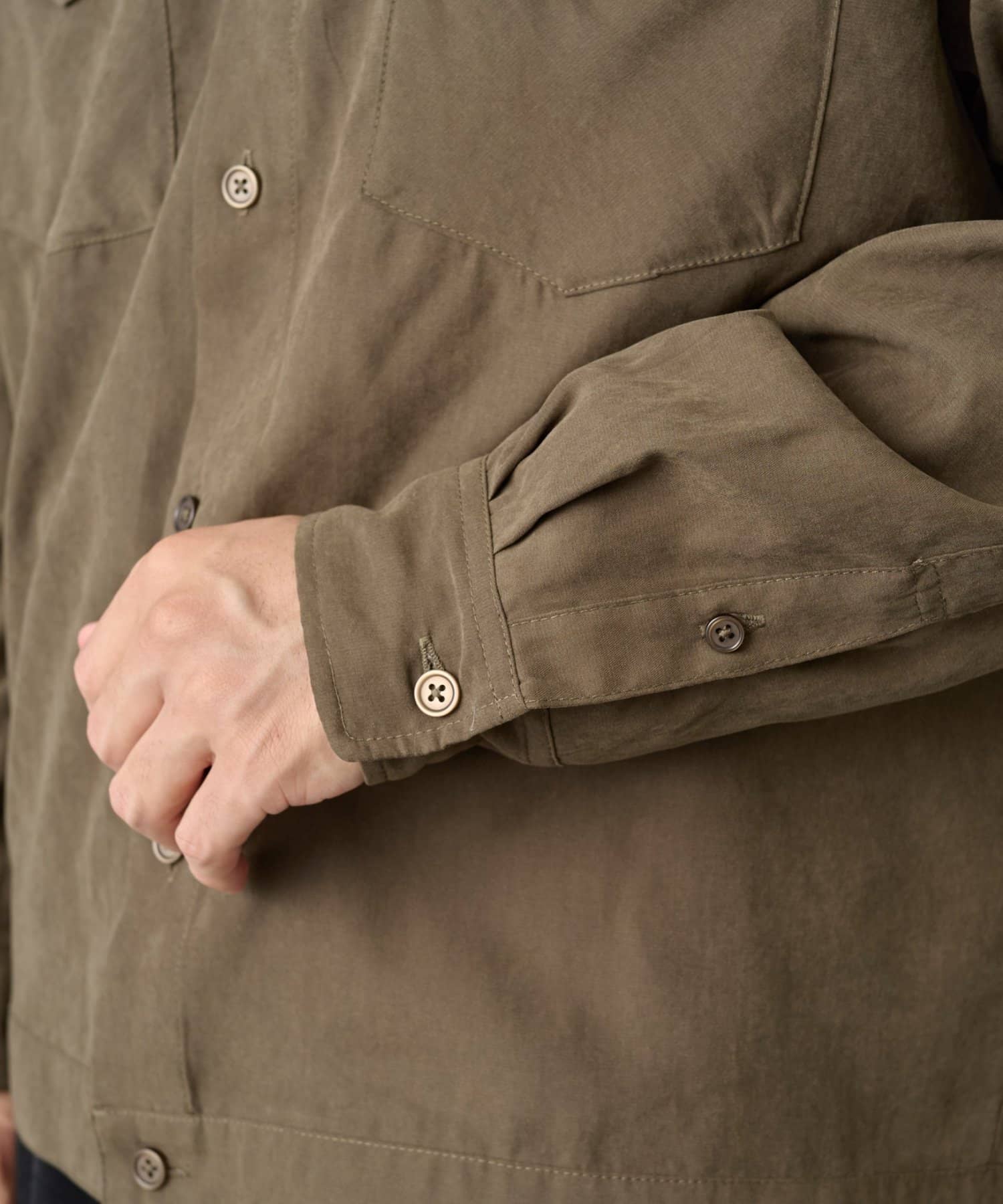 肌触りの良いナローピーチ生地は、上品な光沢と柔らかさを兼ね備え程よい厚みでロングシーズン活躍します。