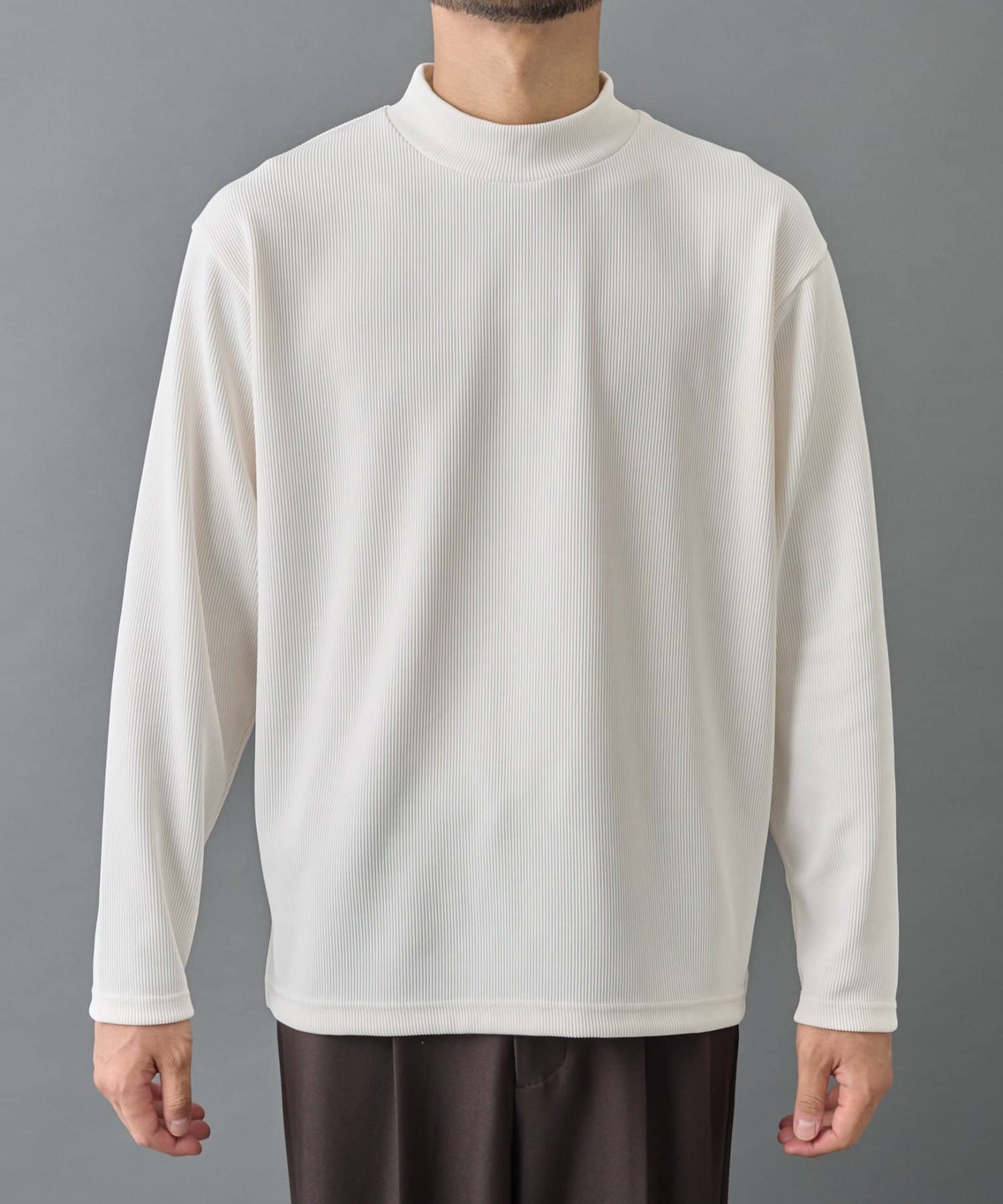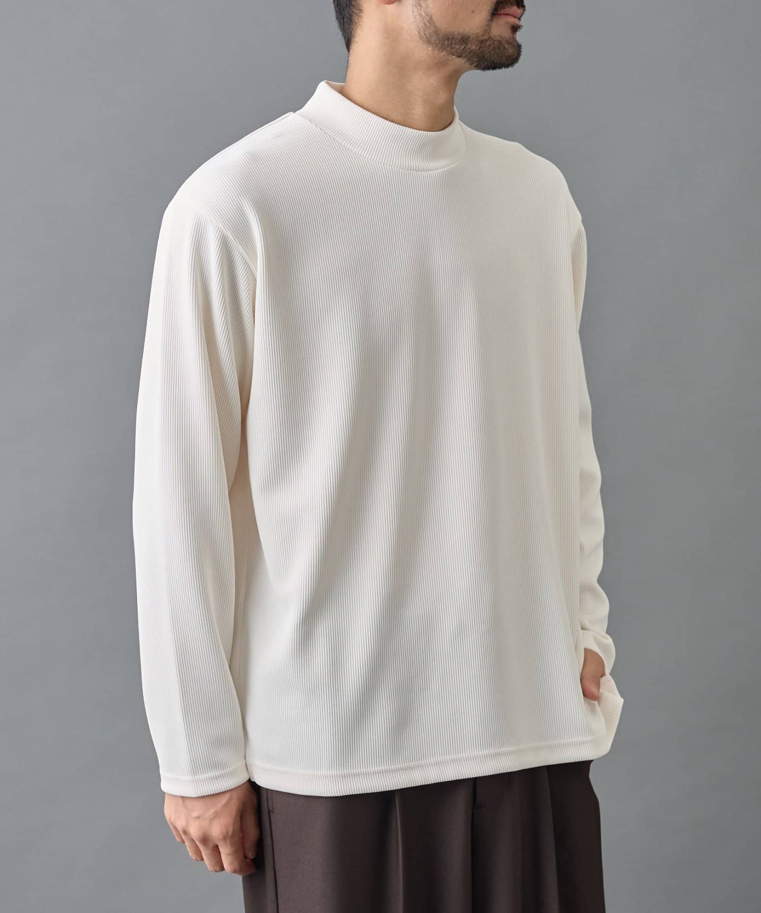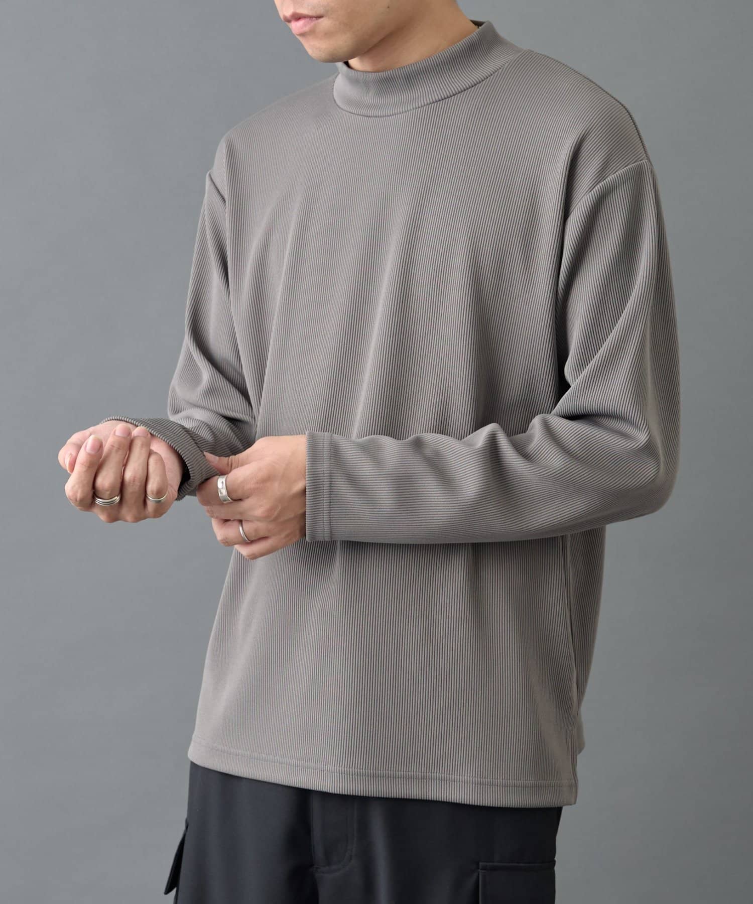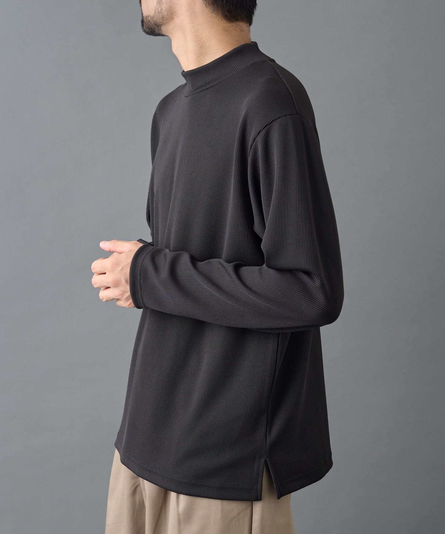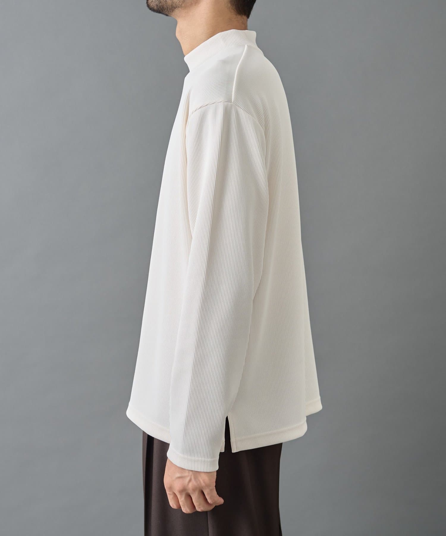 程よい落ち感のあるドレープリブ素材を採用した、大人のためのハイネック長袖Tシャツです。