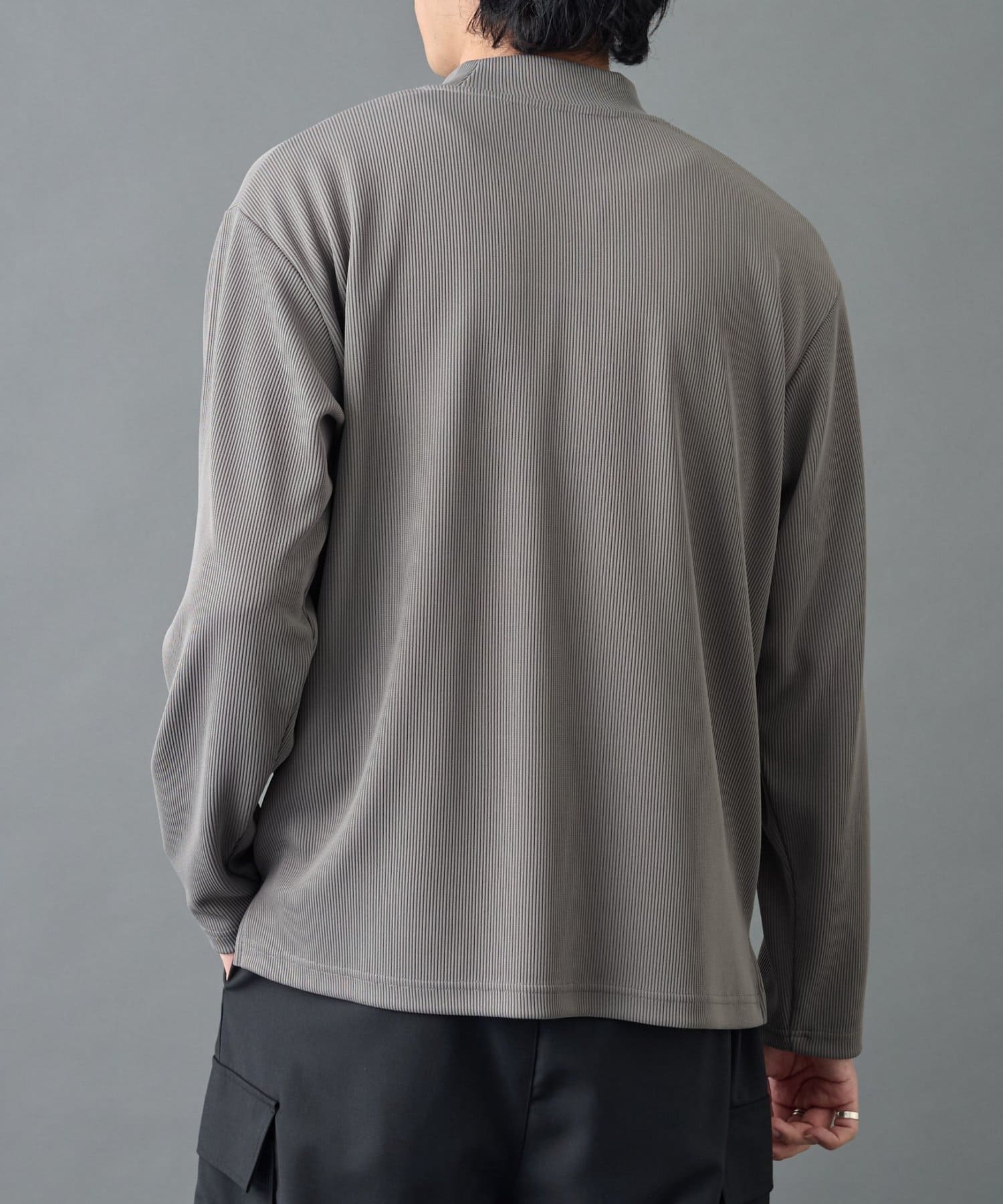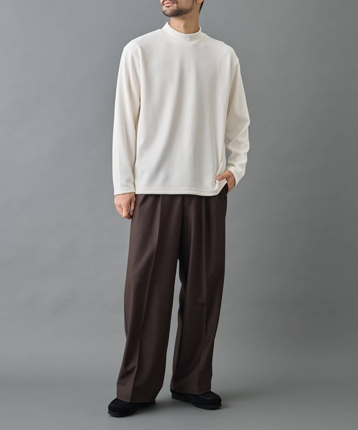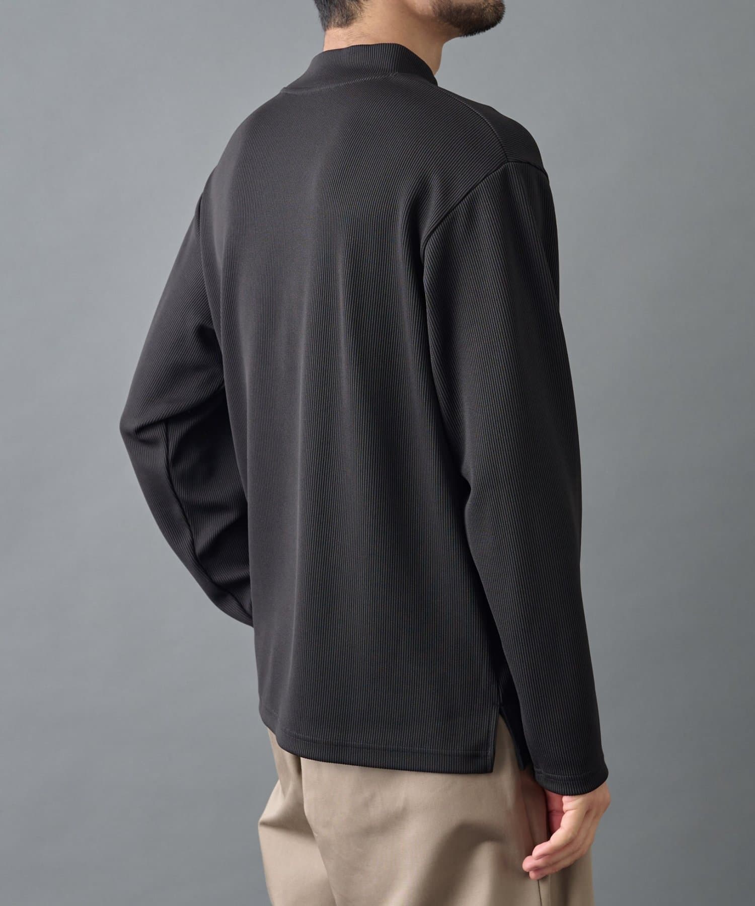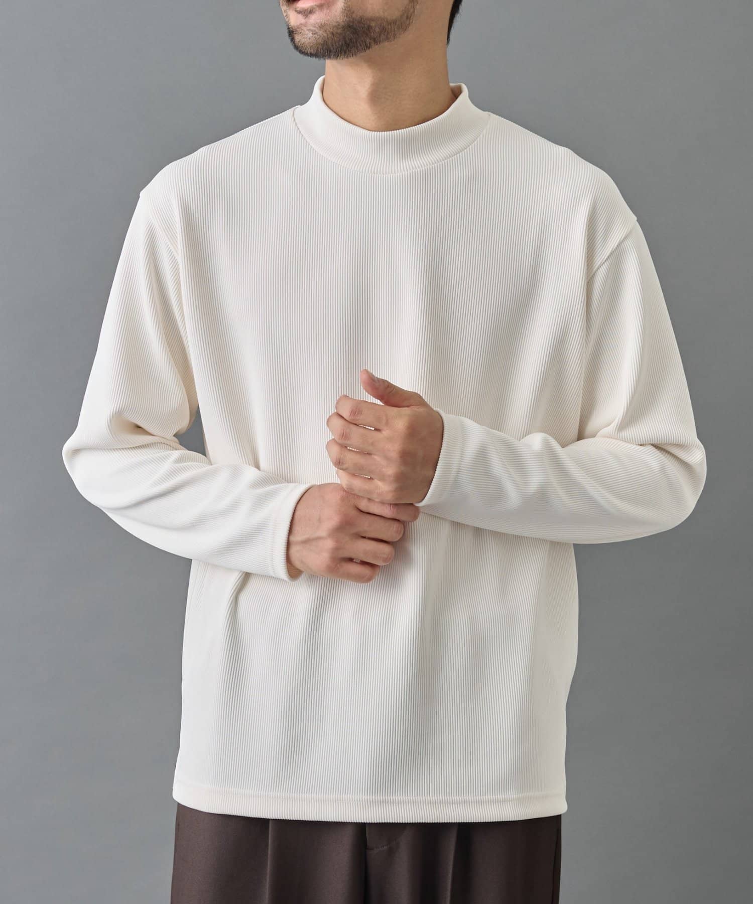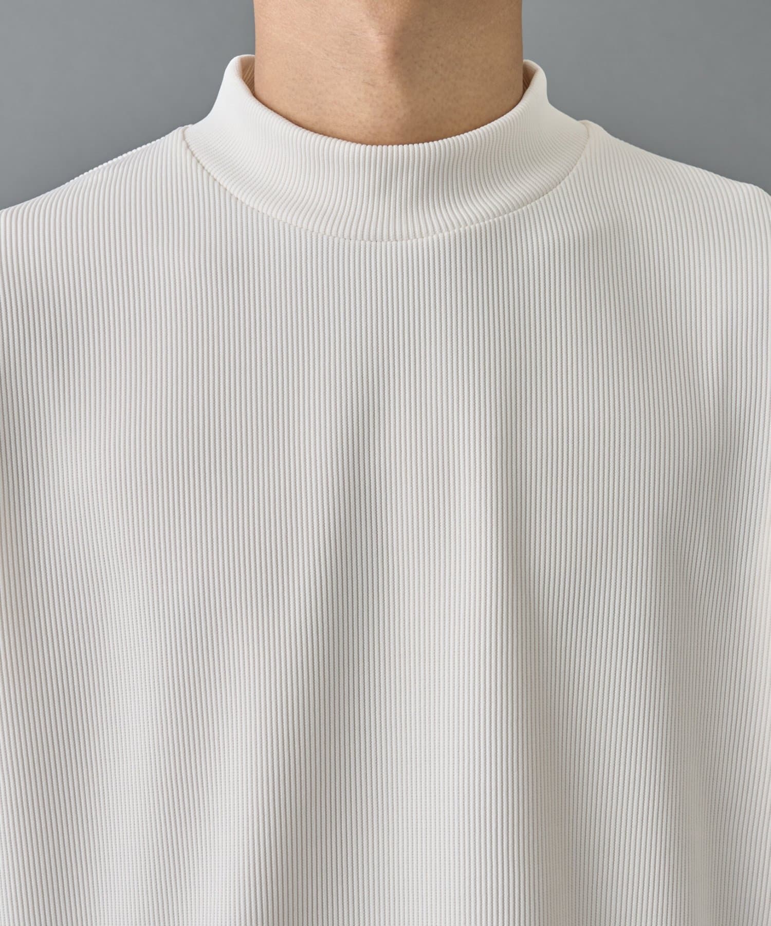 程よい落ち感のあるドレープリブ素材を採用した、大人のためのハイネック長袖Tシャツです。