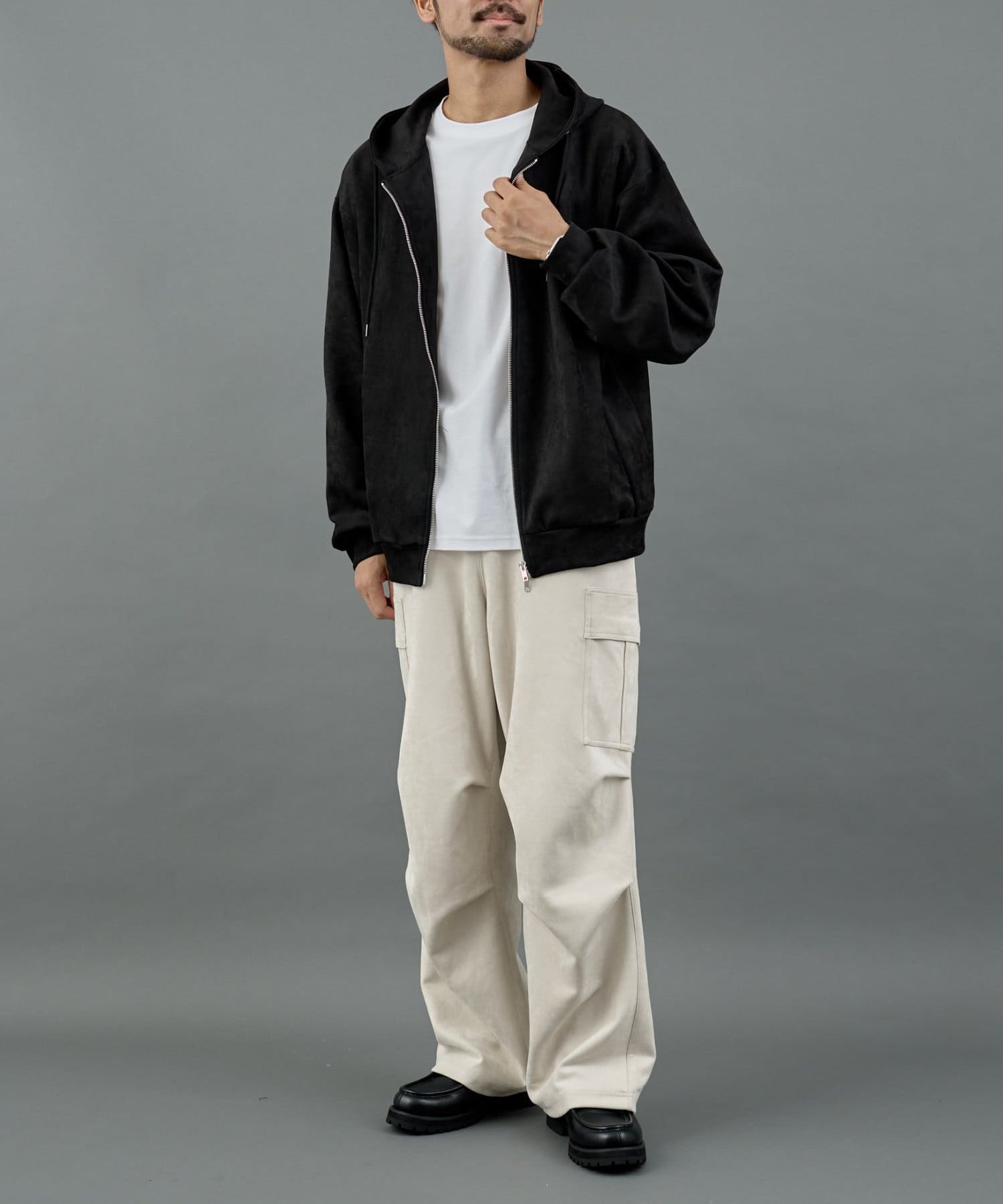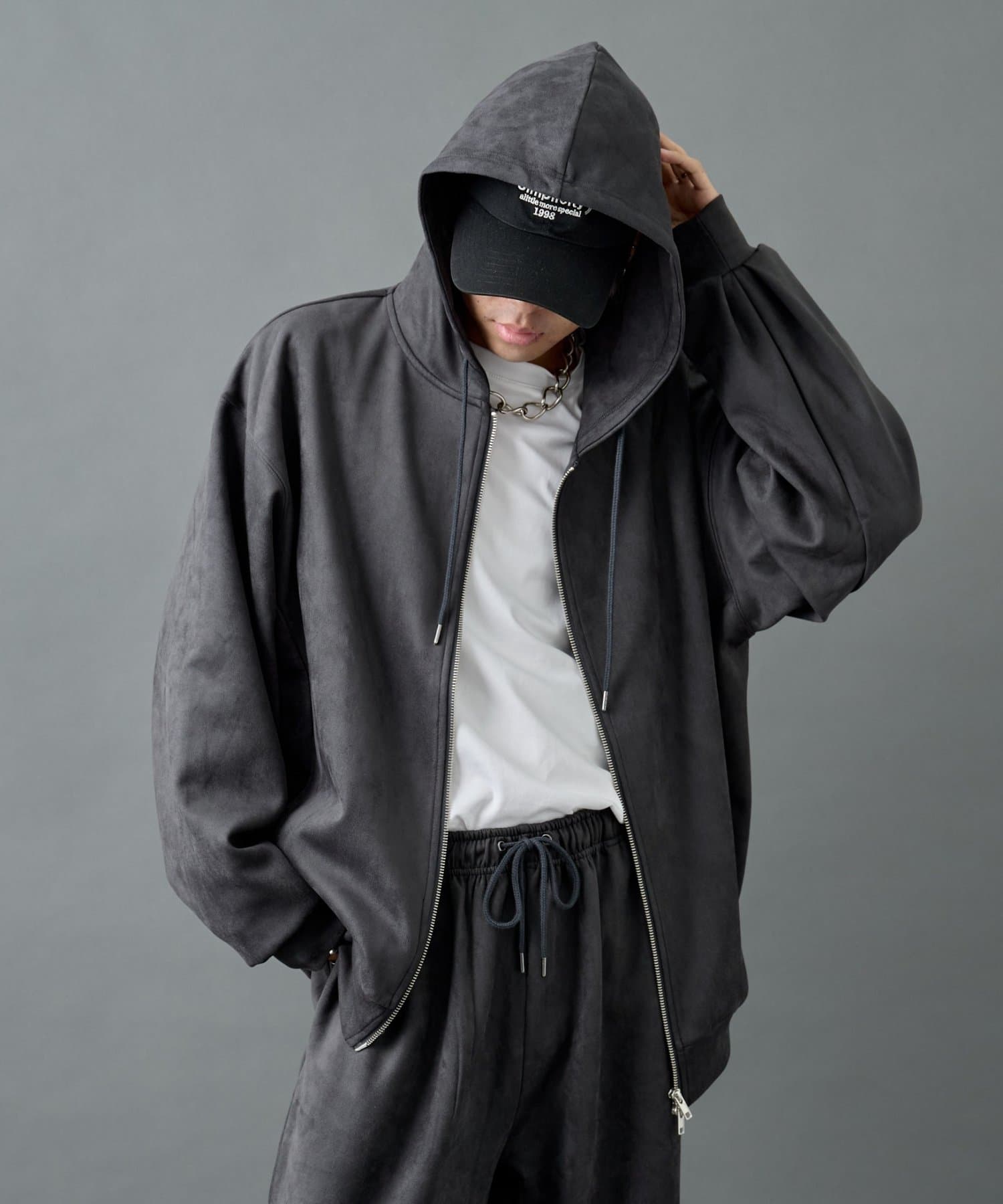 【WEB限定】シンセティックスエードダブルジップパーカー