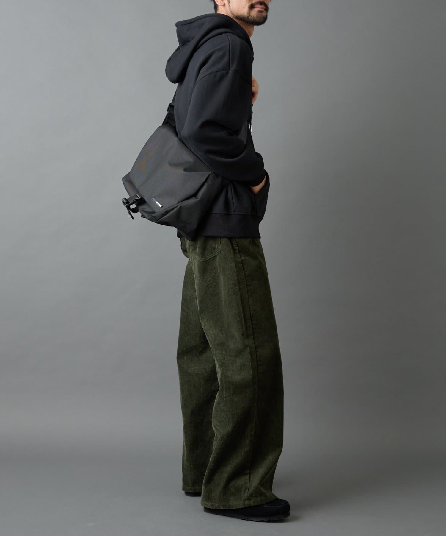 両サイドには大きめのポケットがついているため機能性も抜群です。