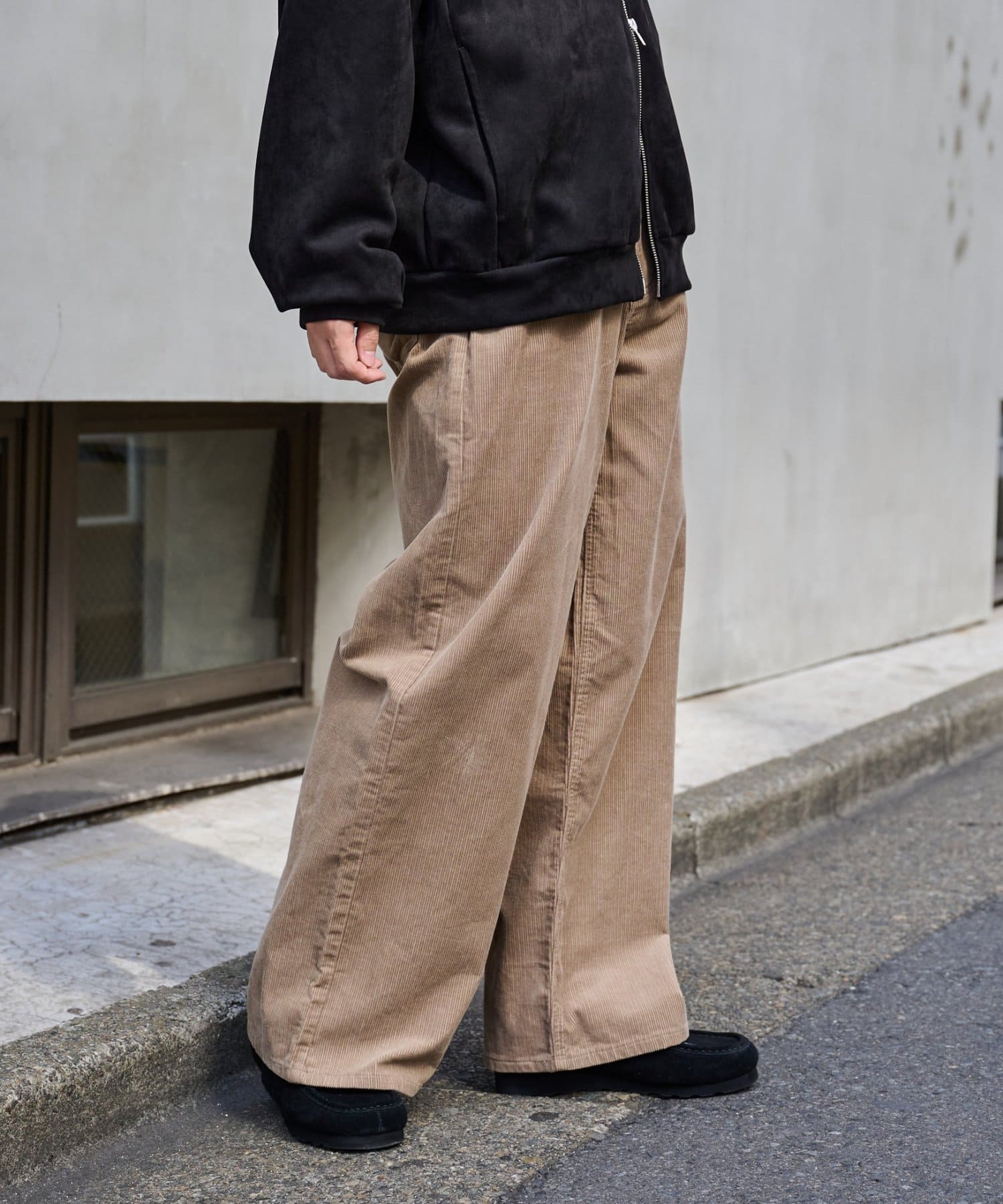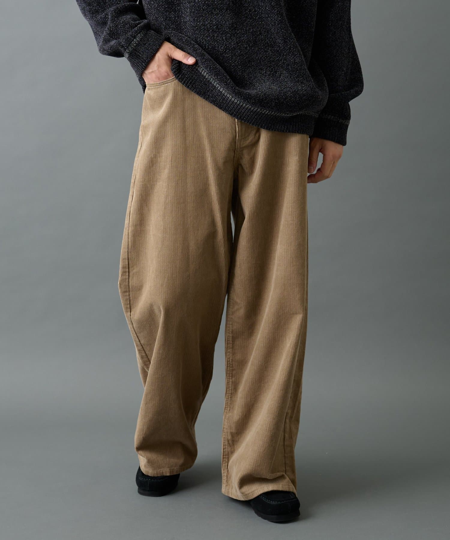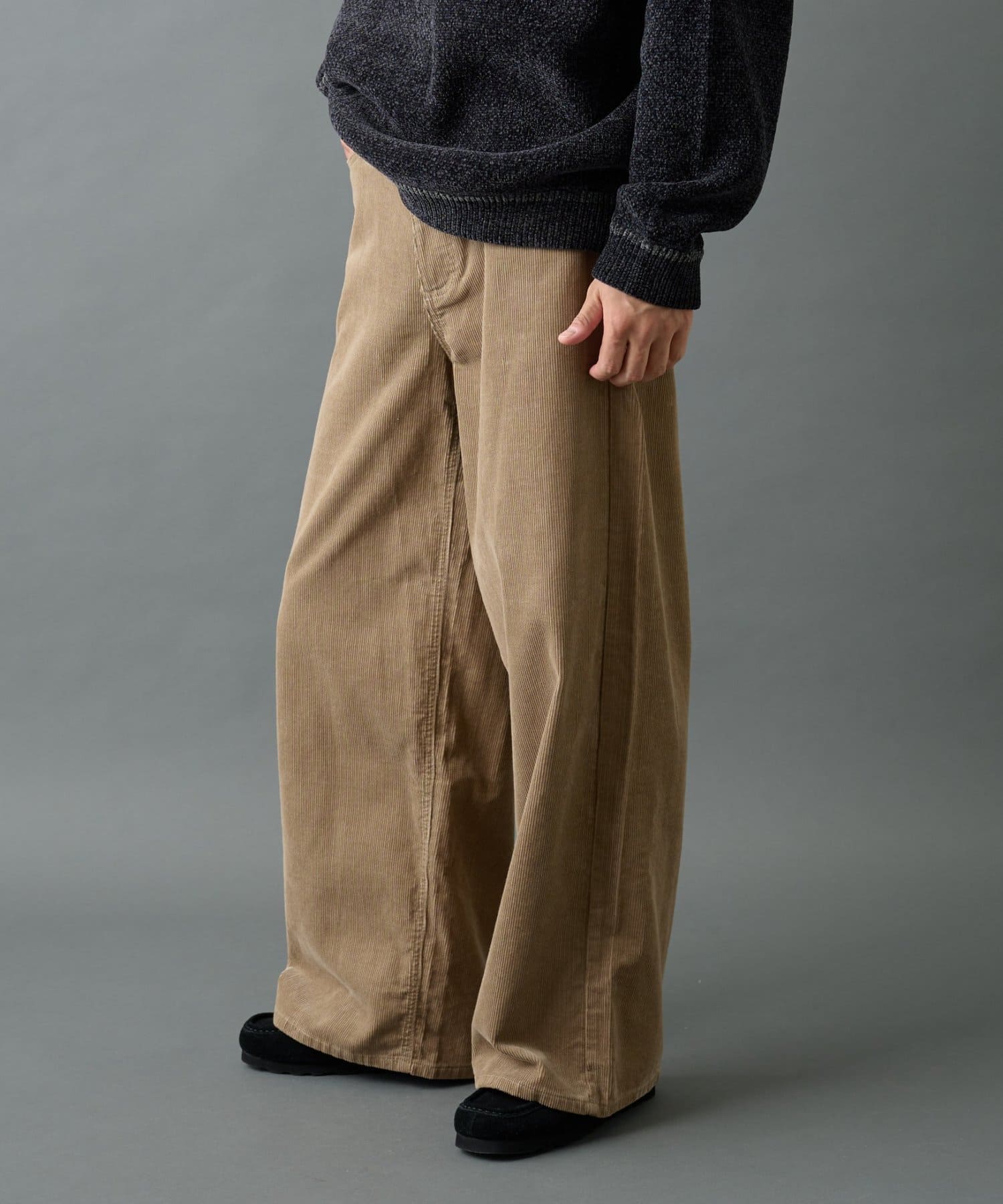 ほどよい厚みと立体感のあるコーデュロイが季節感を演出し、ゆったりとしたワイドストレートシルエットでリラックスした穿き心地を実現。