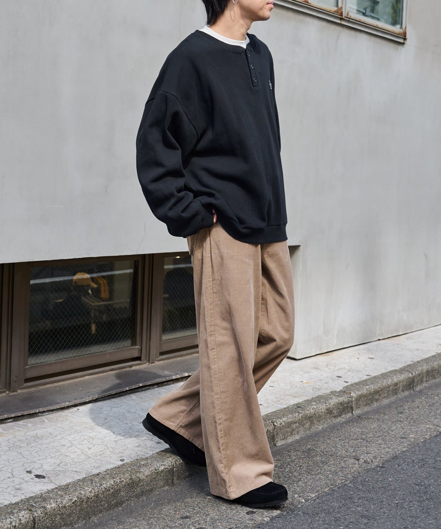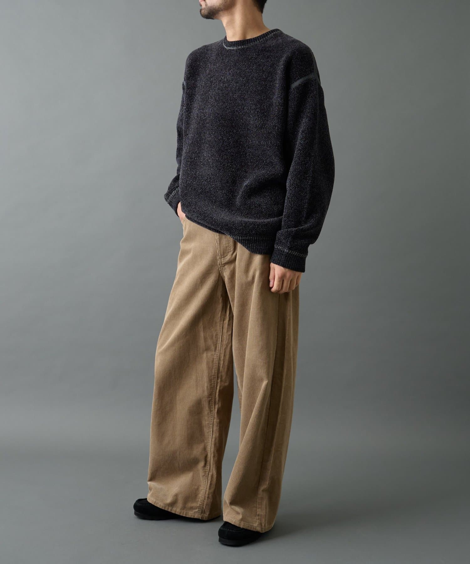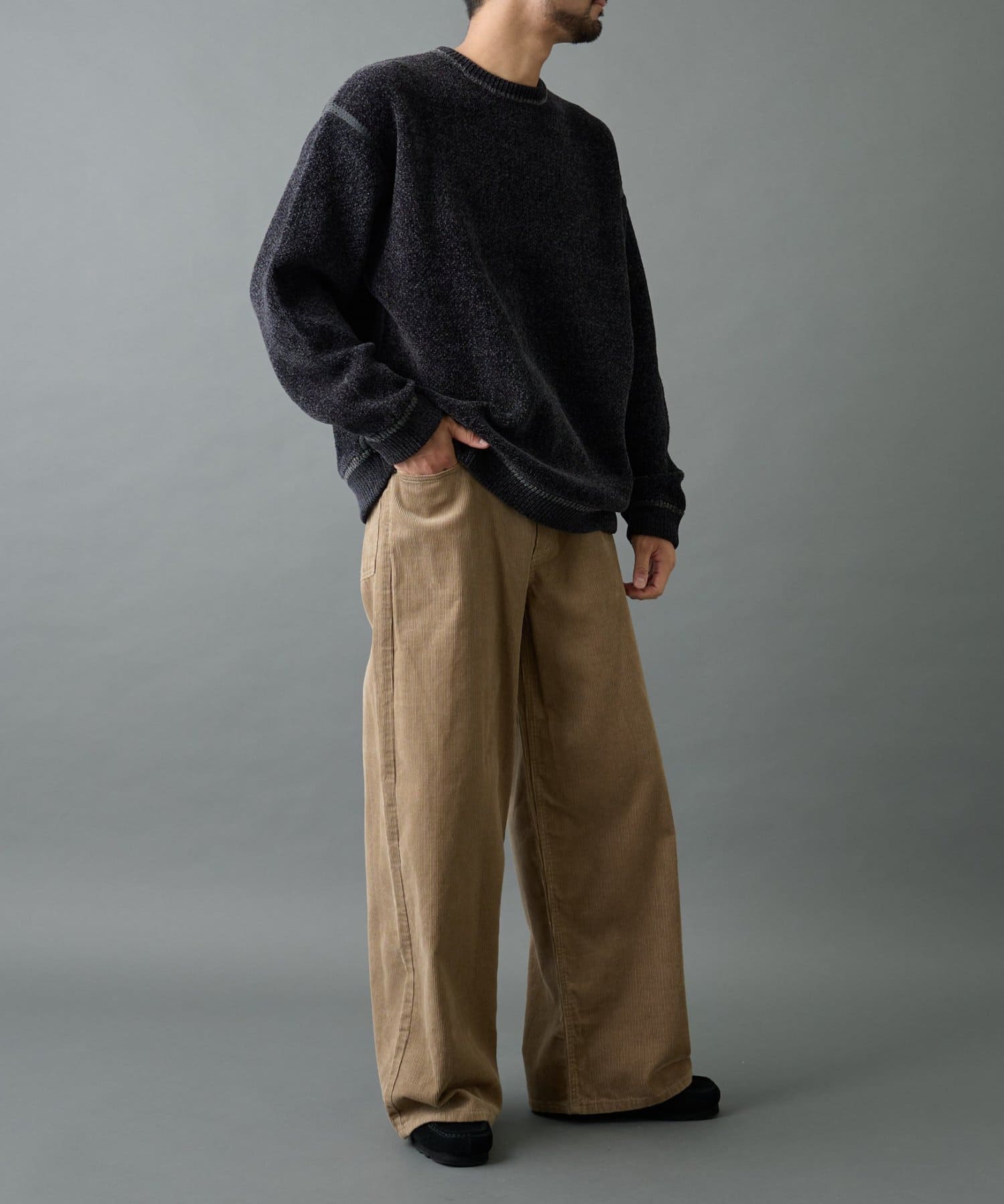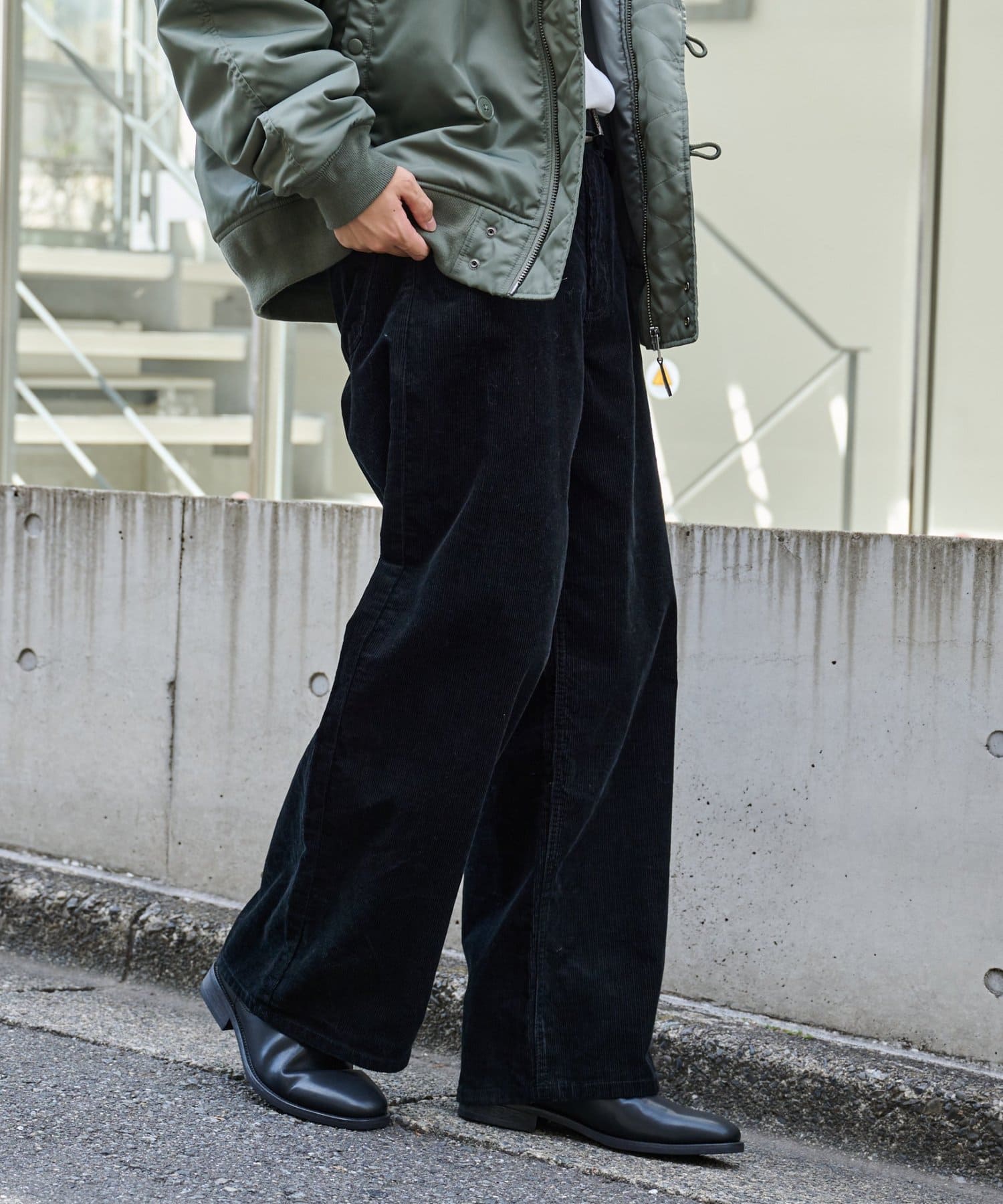 ほどよい厚みと立体感のあるコーデュロイが季節感を演出し、ゆったりとしたワイドストレートシルエットでリラックスした穿き心地を実現。