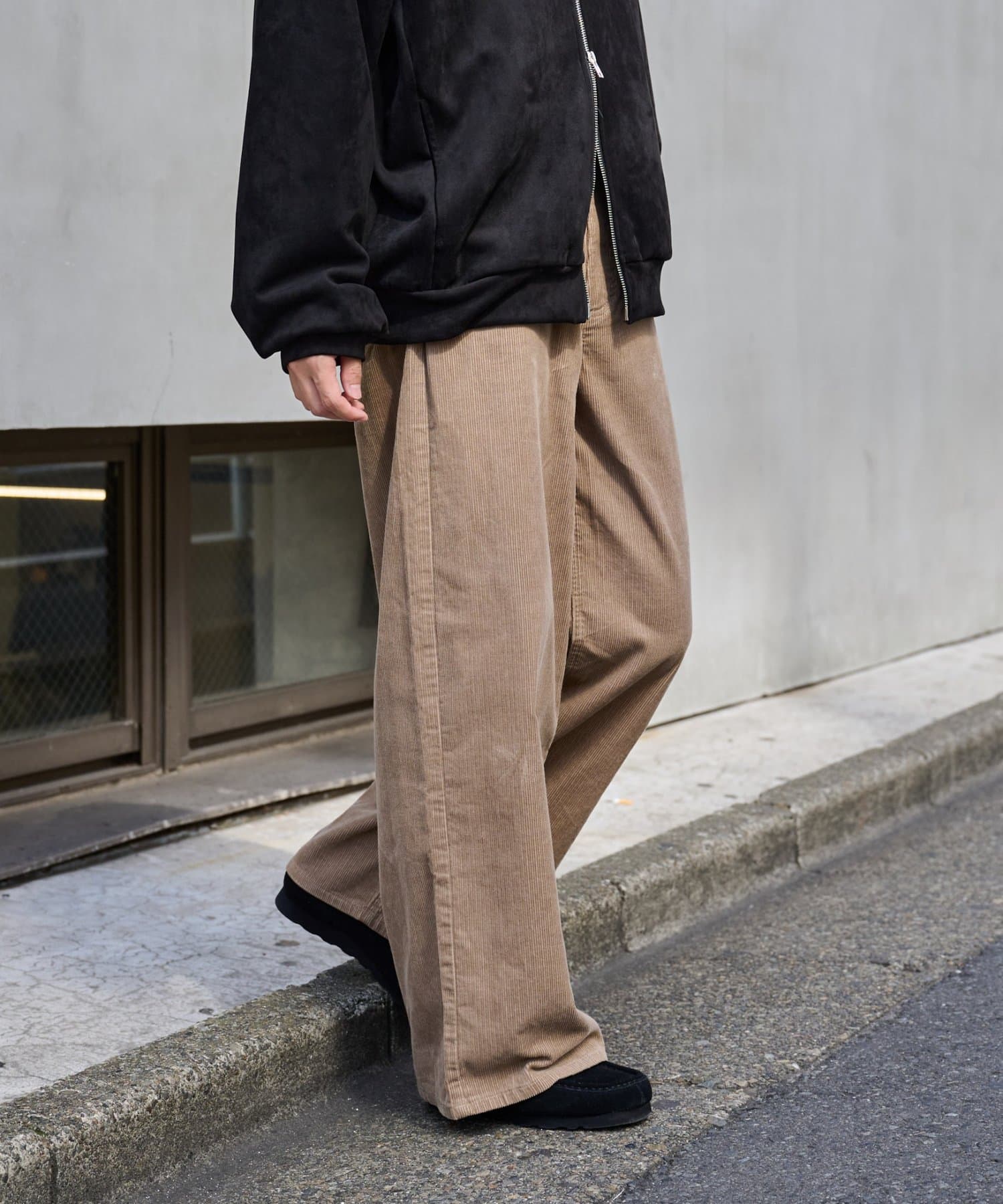 秋冬コーデに欠かせない、コーデュロイ素材のワイドストレートパンツです。