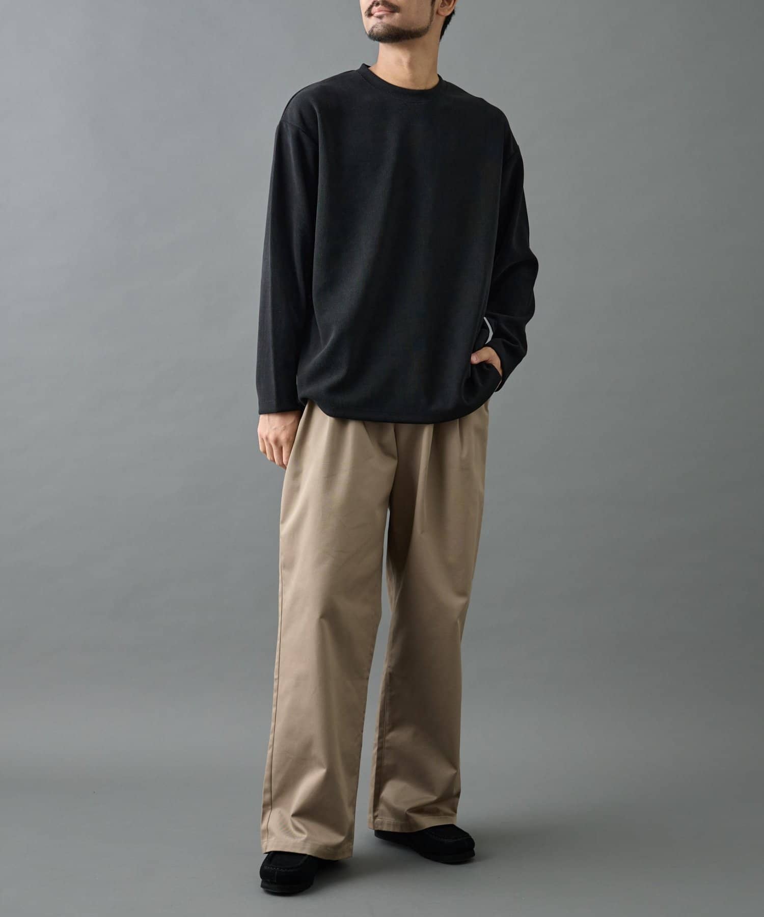 シンプルながらも素材感にこだわっているので、カジュアルなシーンでもフォーマルな雰囲気にも対応可能。