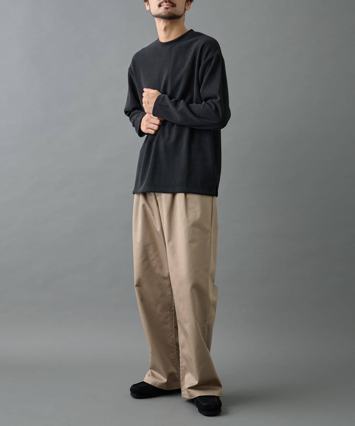 デニムやカーゴパンツ合わせてカジュアルにもスラックス窓と合わせてキレイめにもどんなスタイルとも相性抜群です。