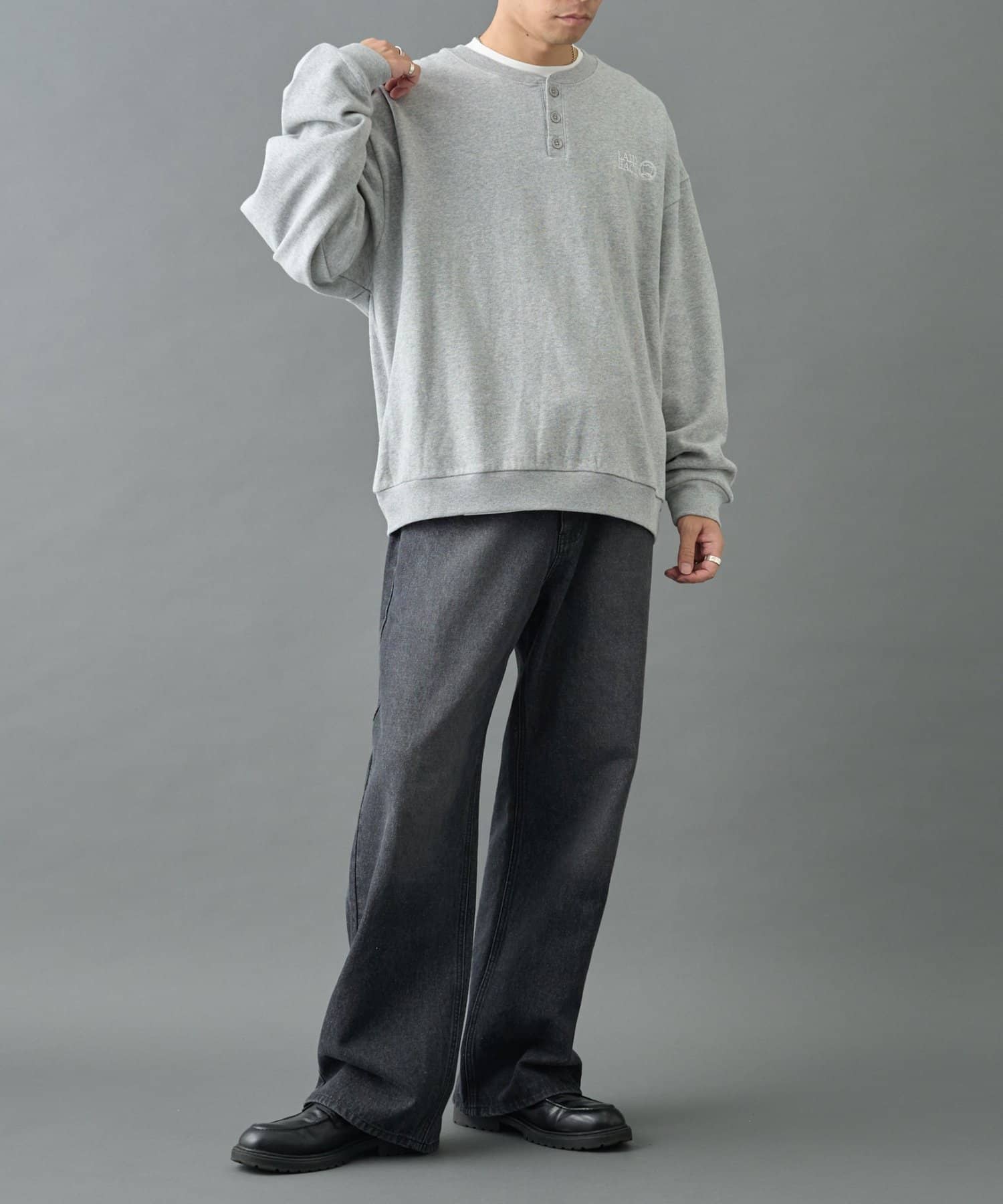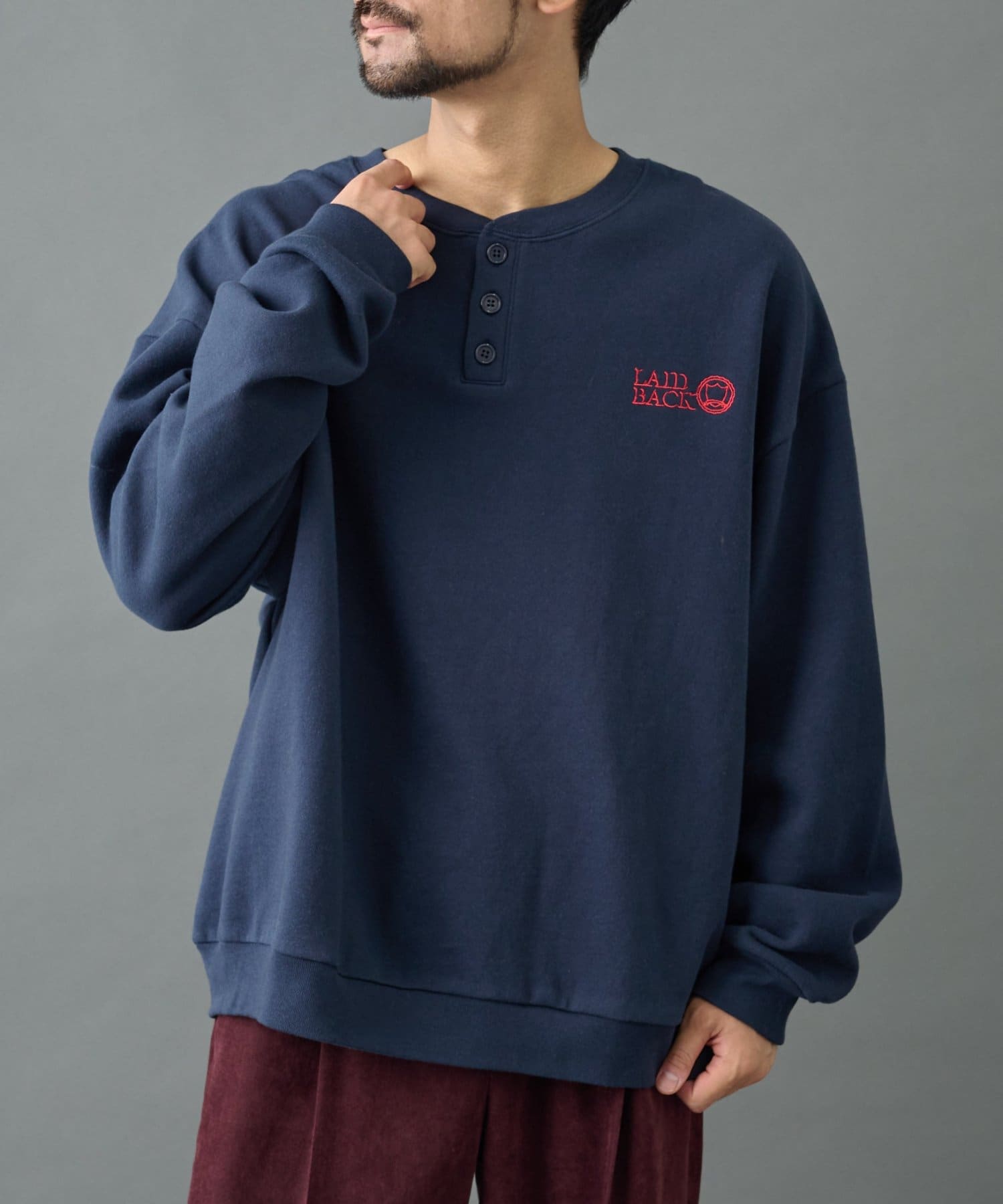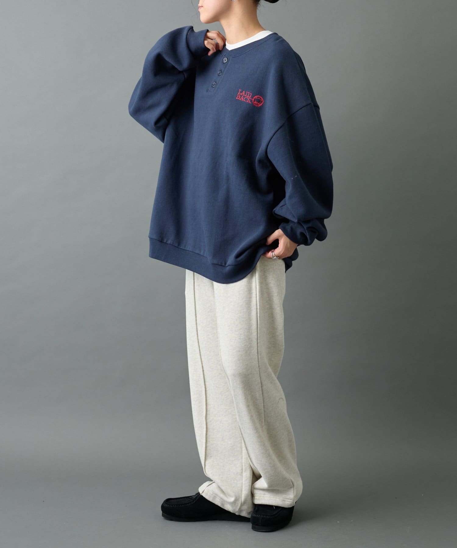 【控えめな刺繍が映える ヘンリーネックスウェット】