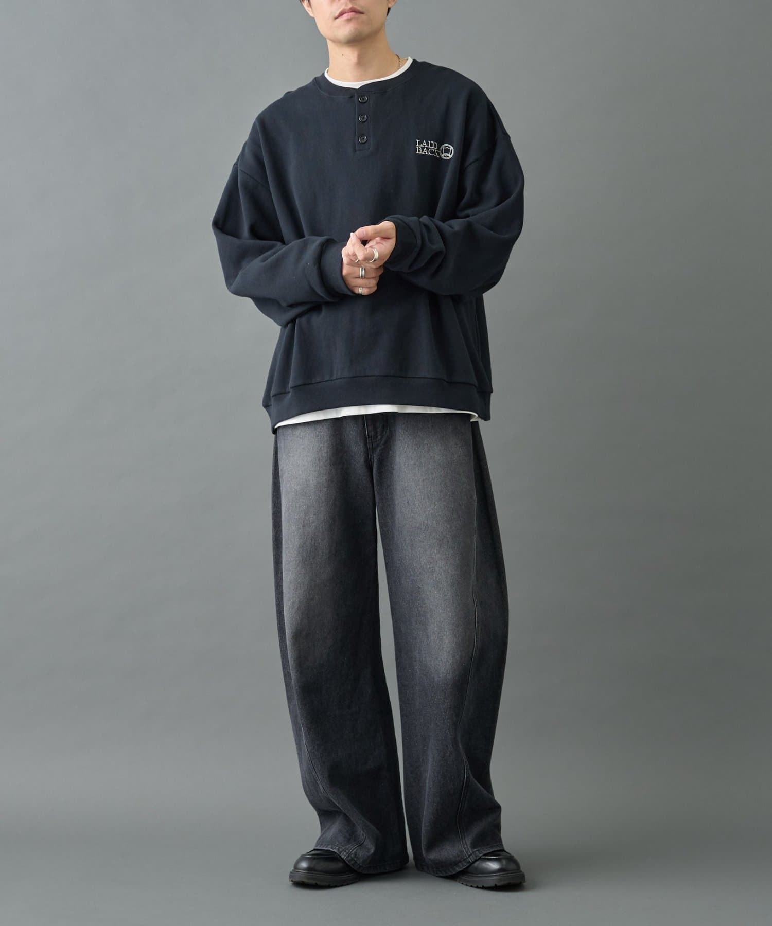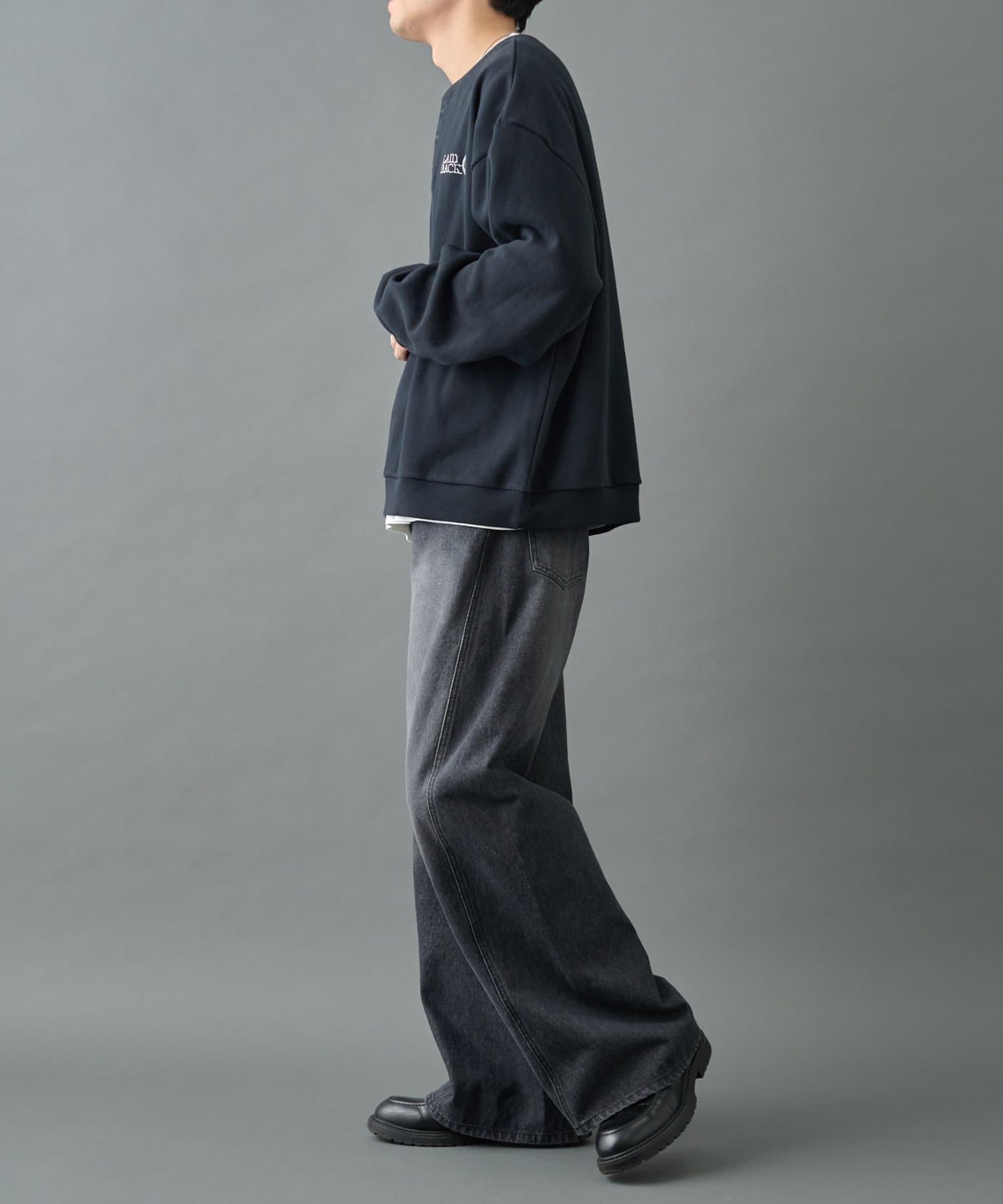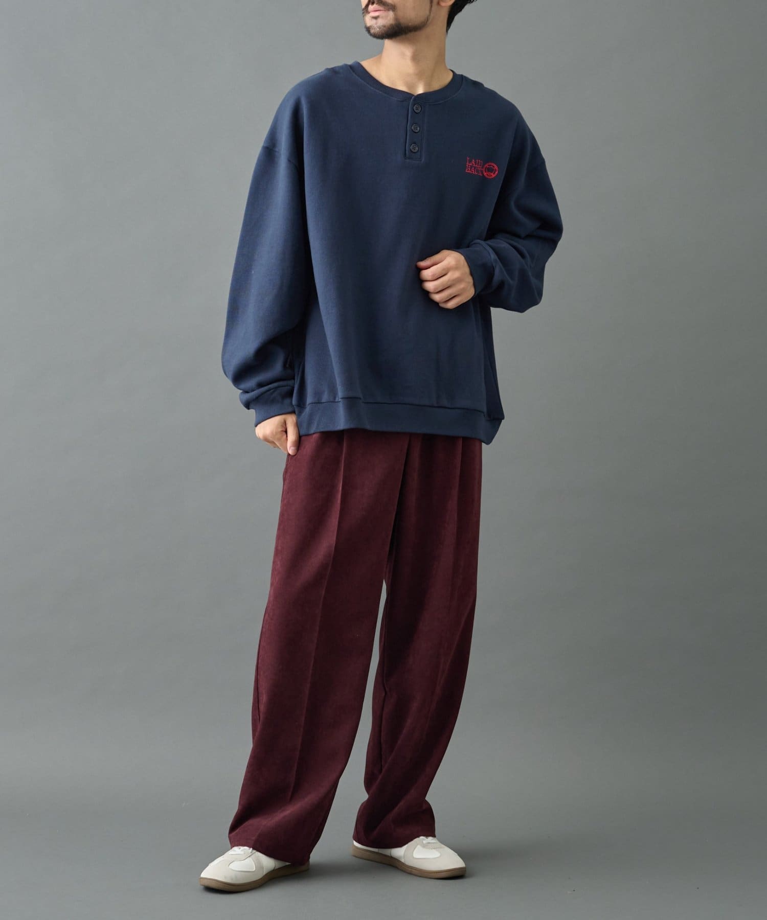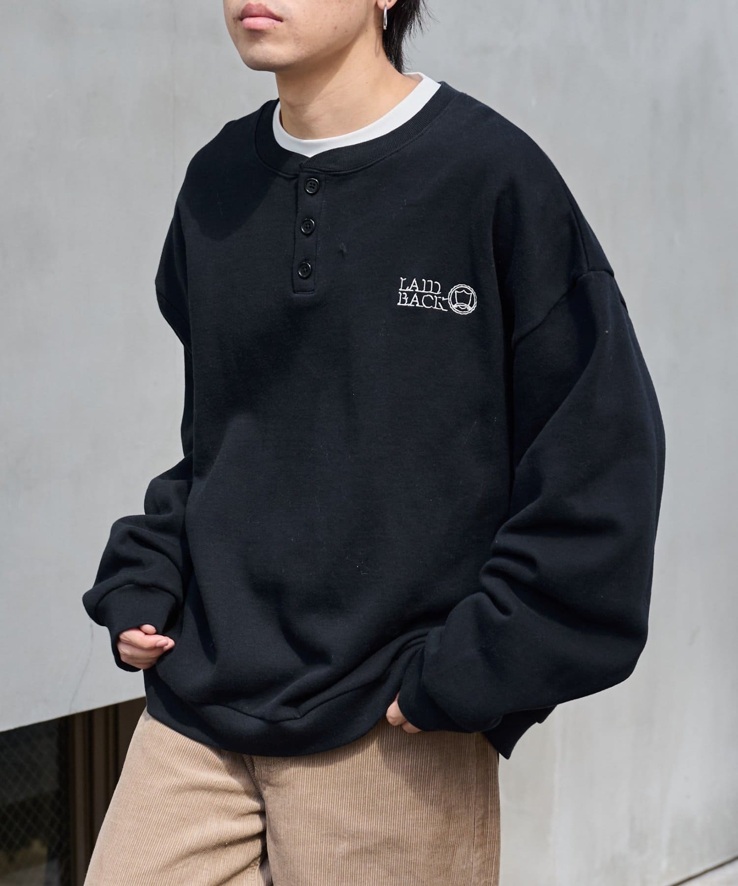 【控えめな刺繍が映える ヘンリーネックスウェット】