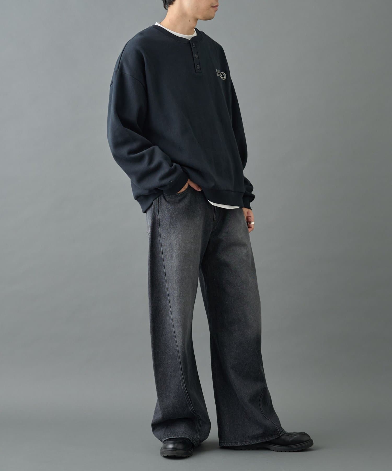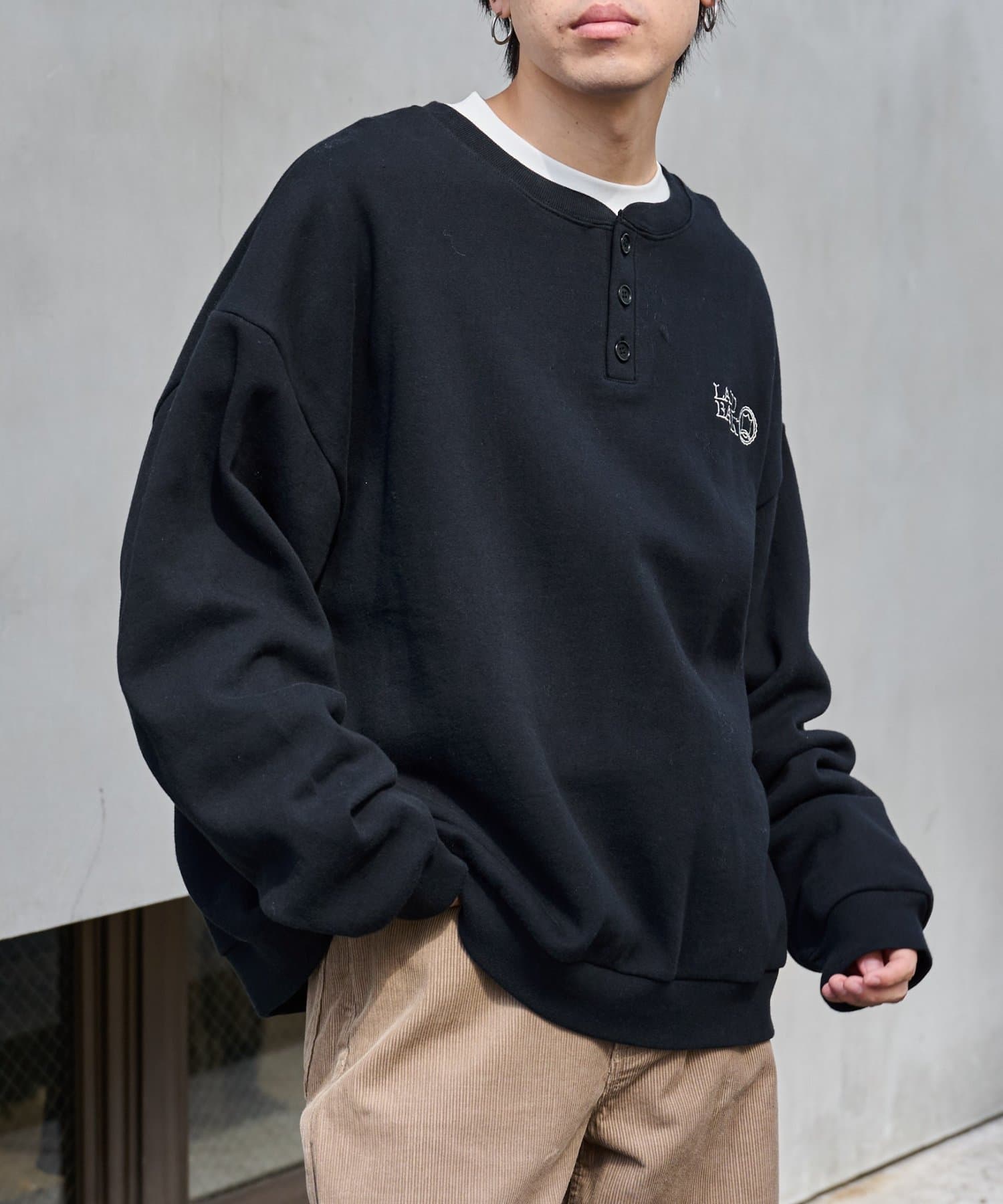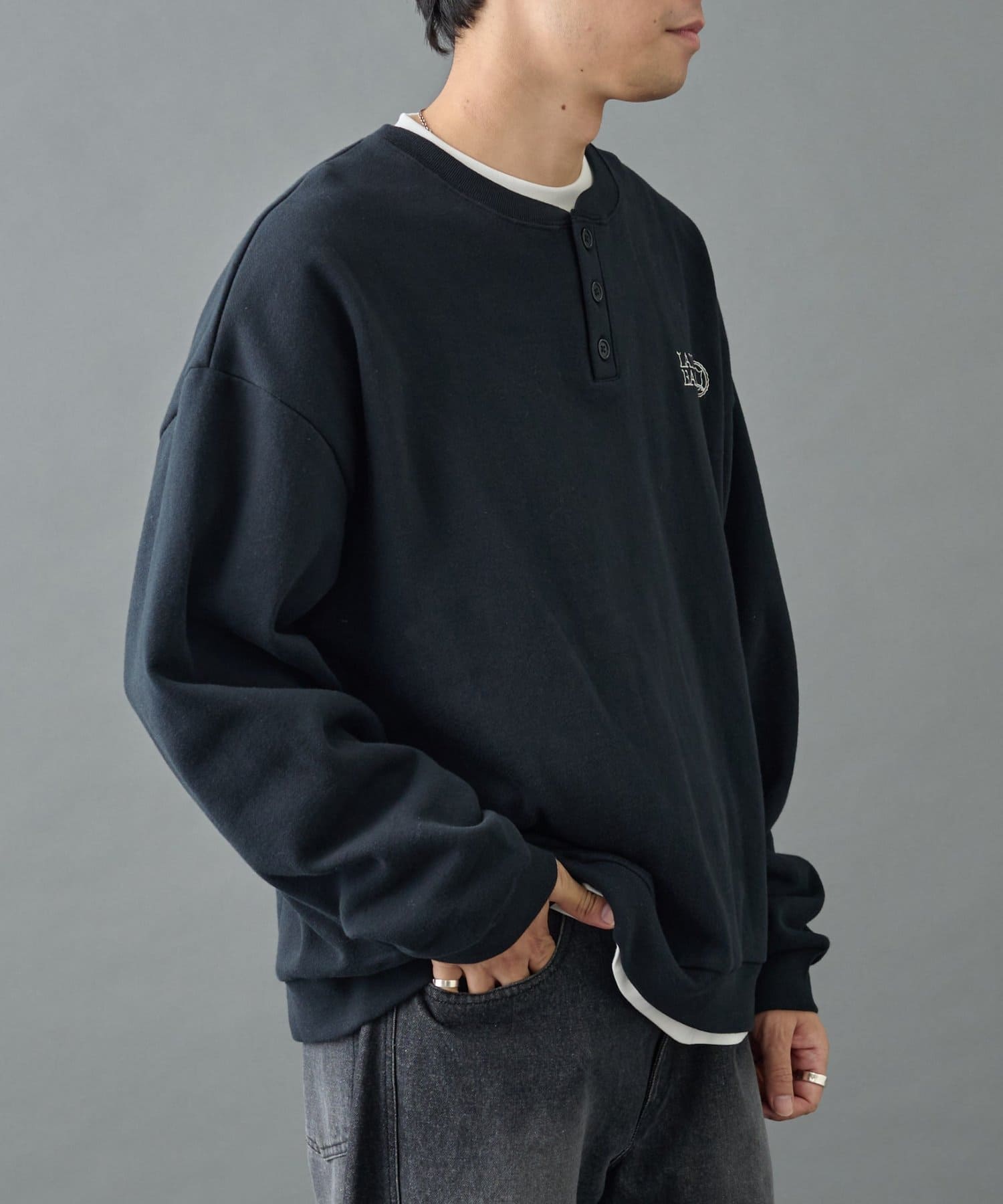 刺繍ヘンリーネックスウェット
