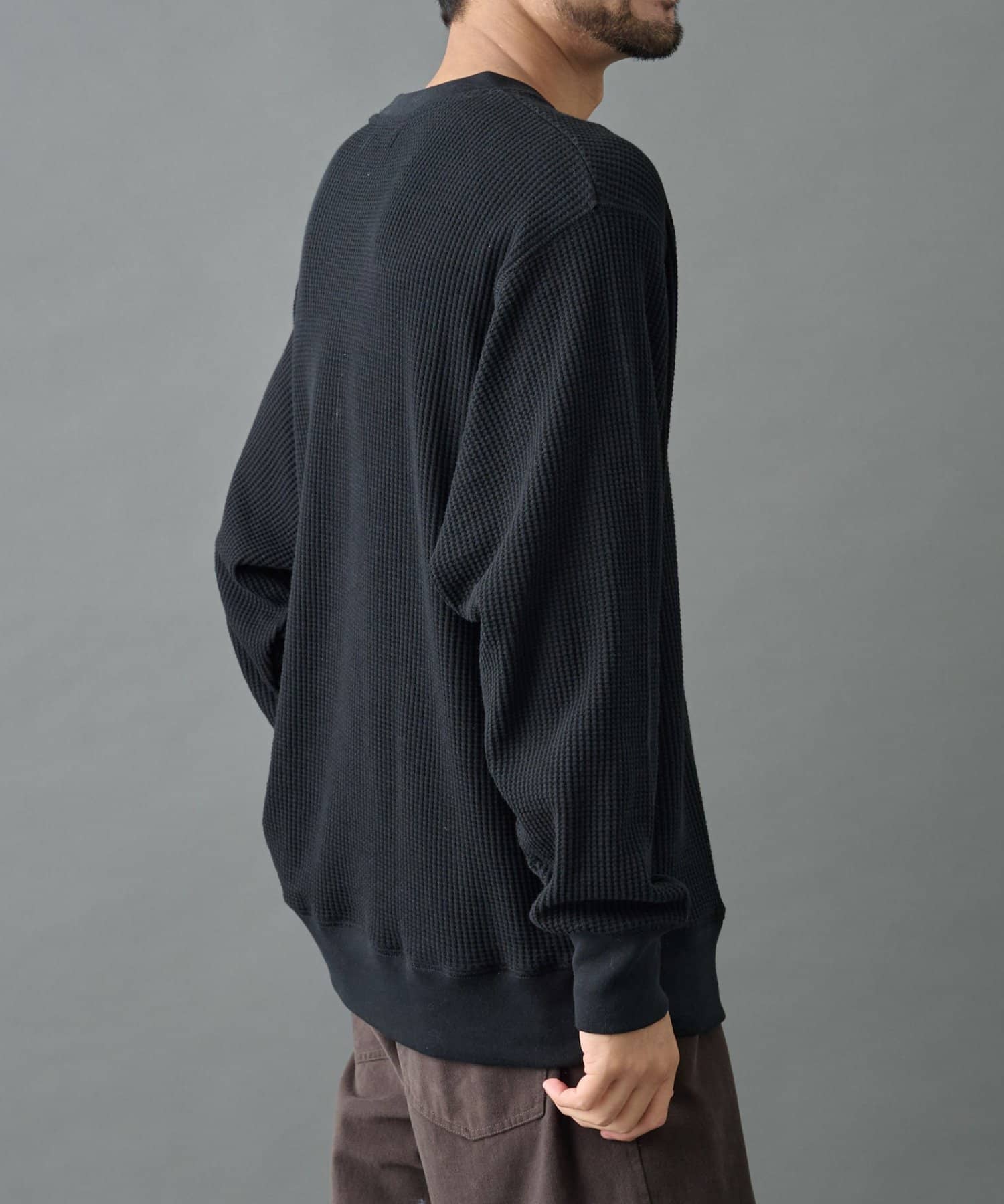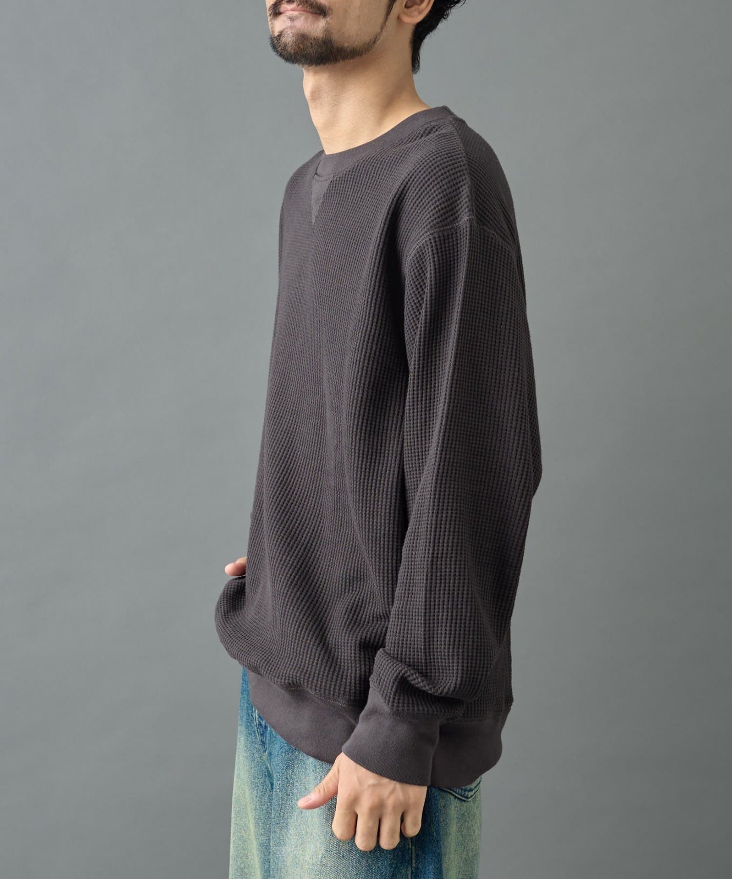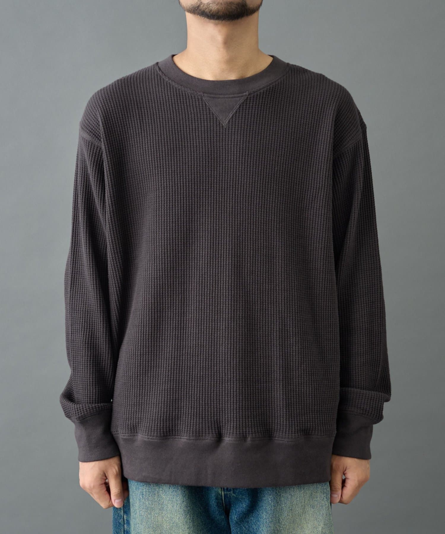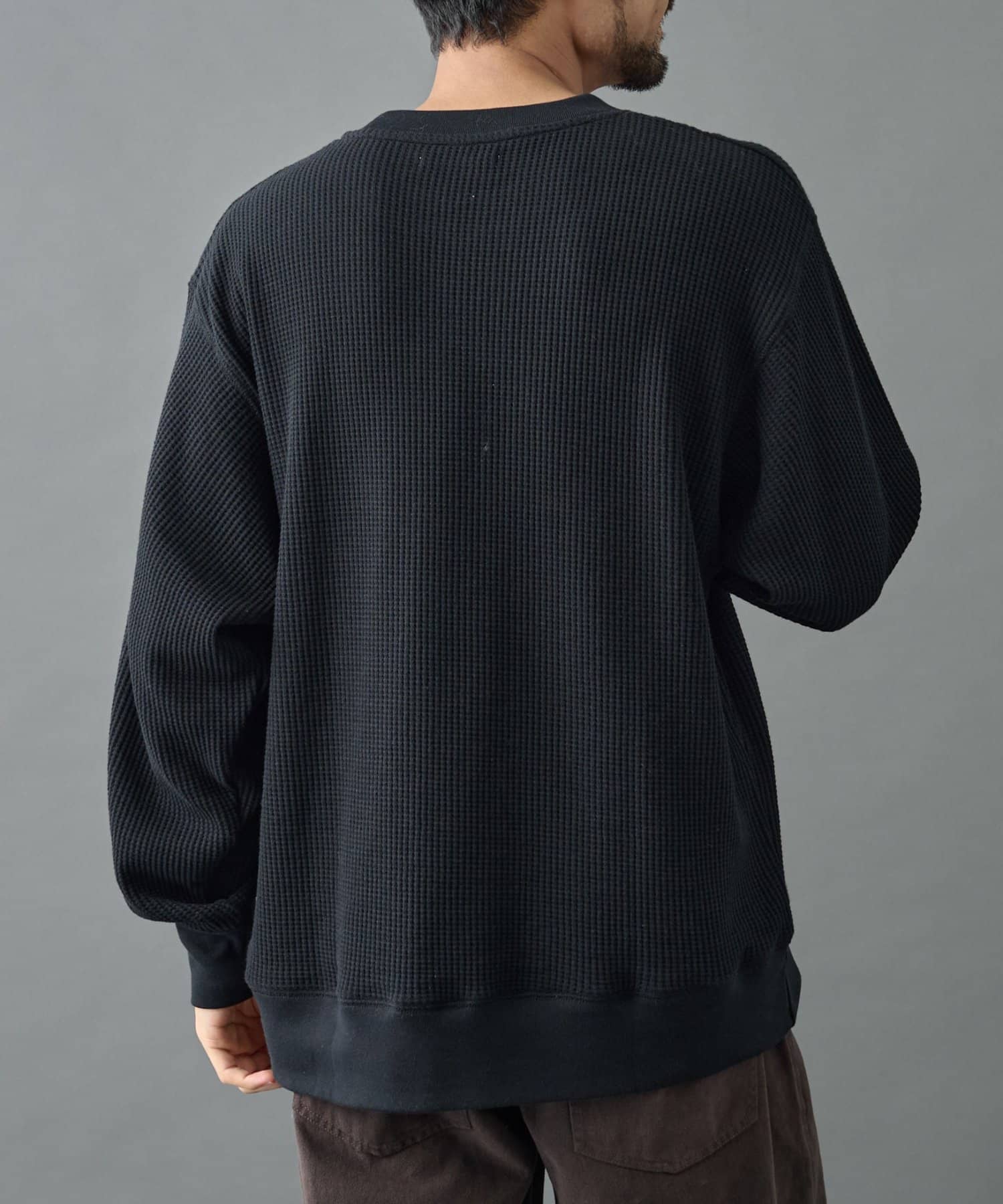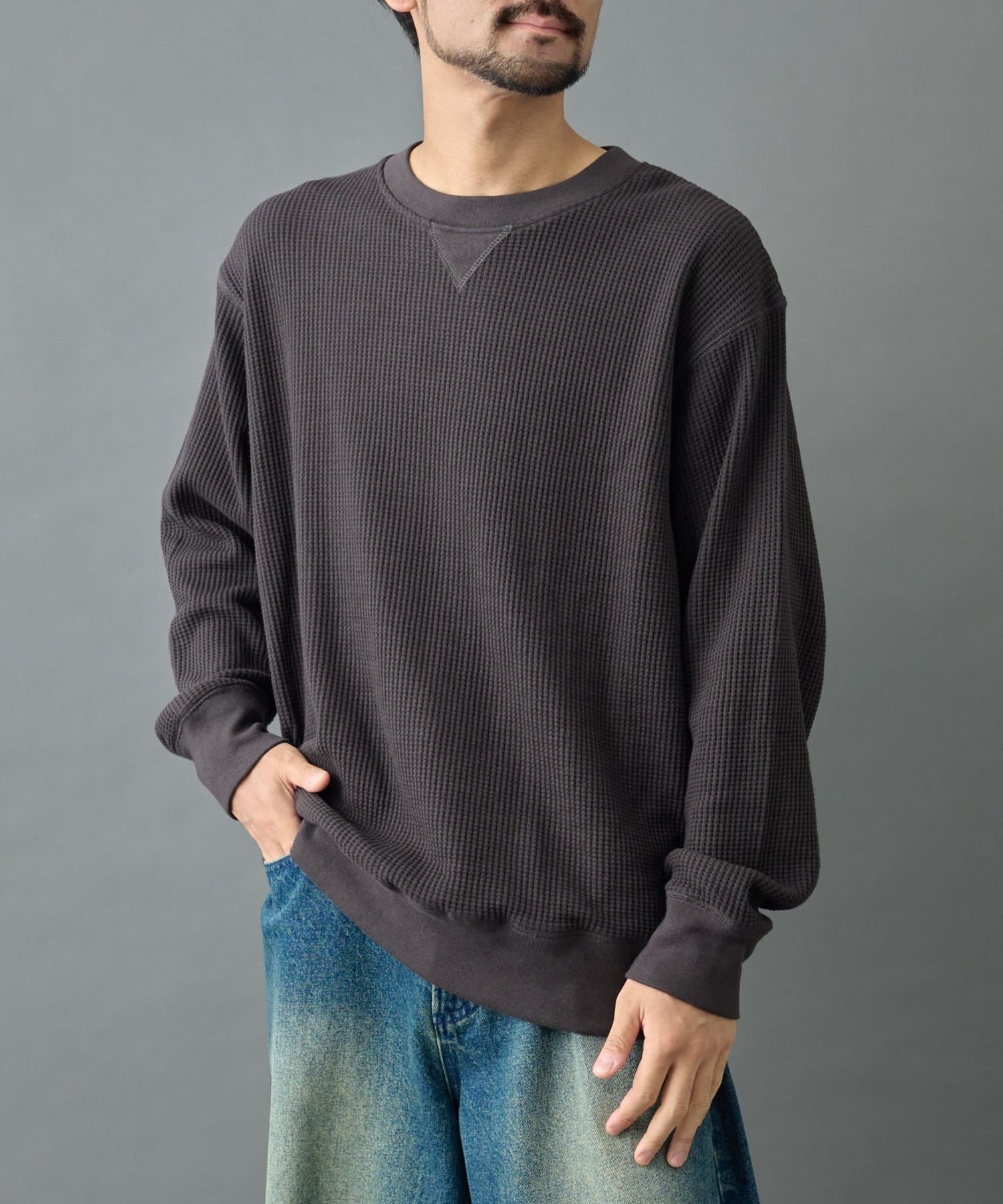 様々なアイテムと相性抜群のワッフルクルーネックです。