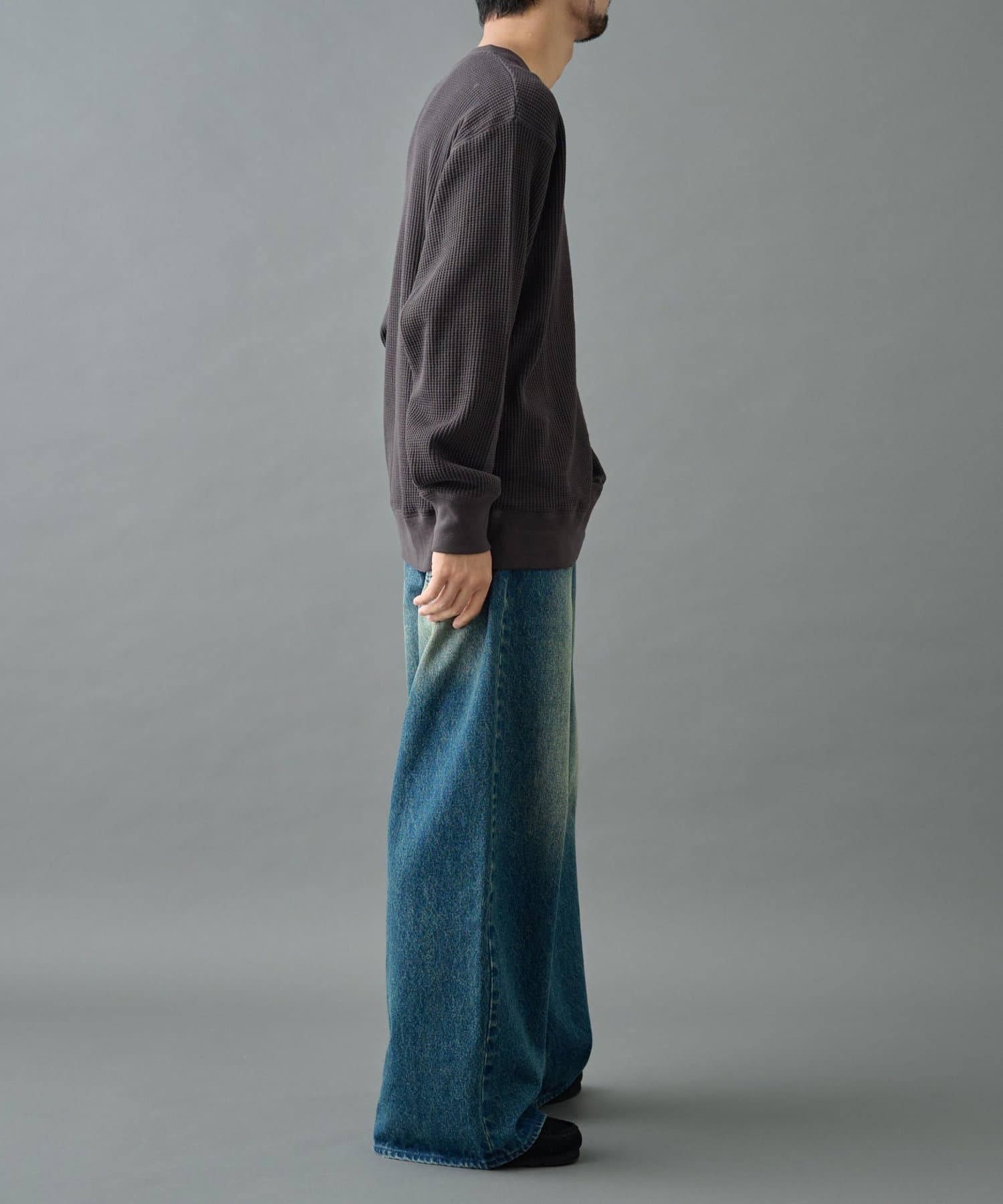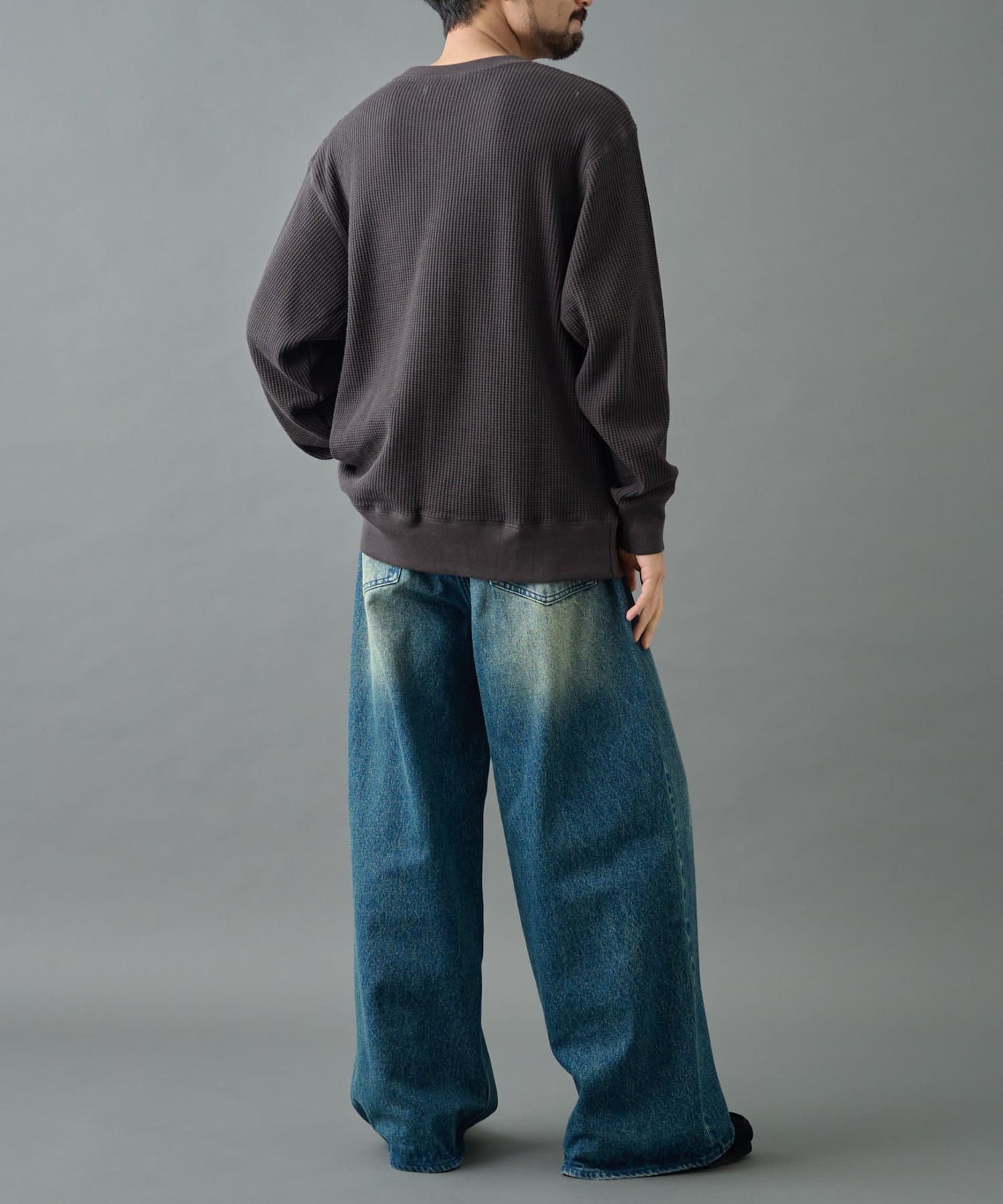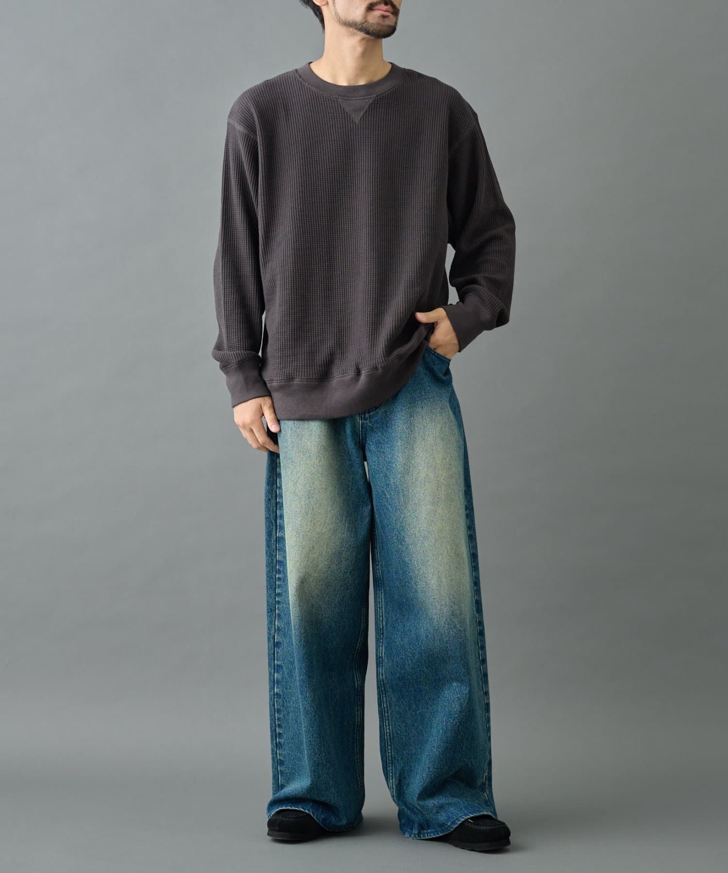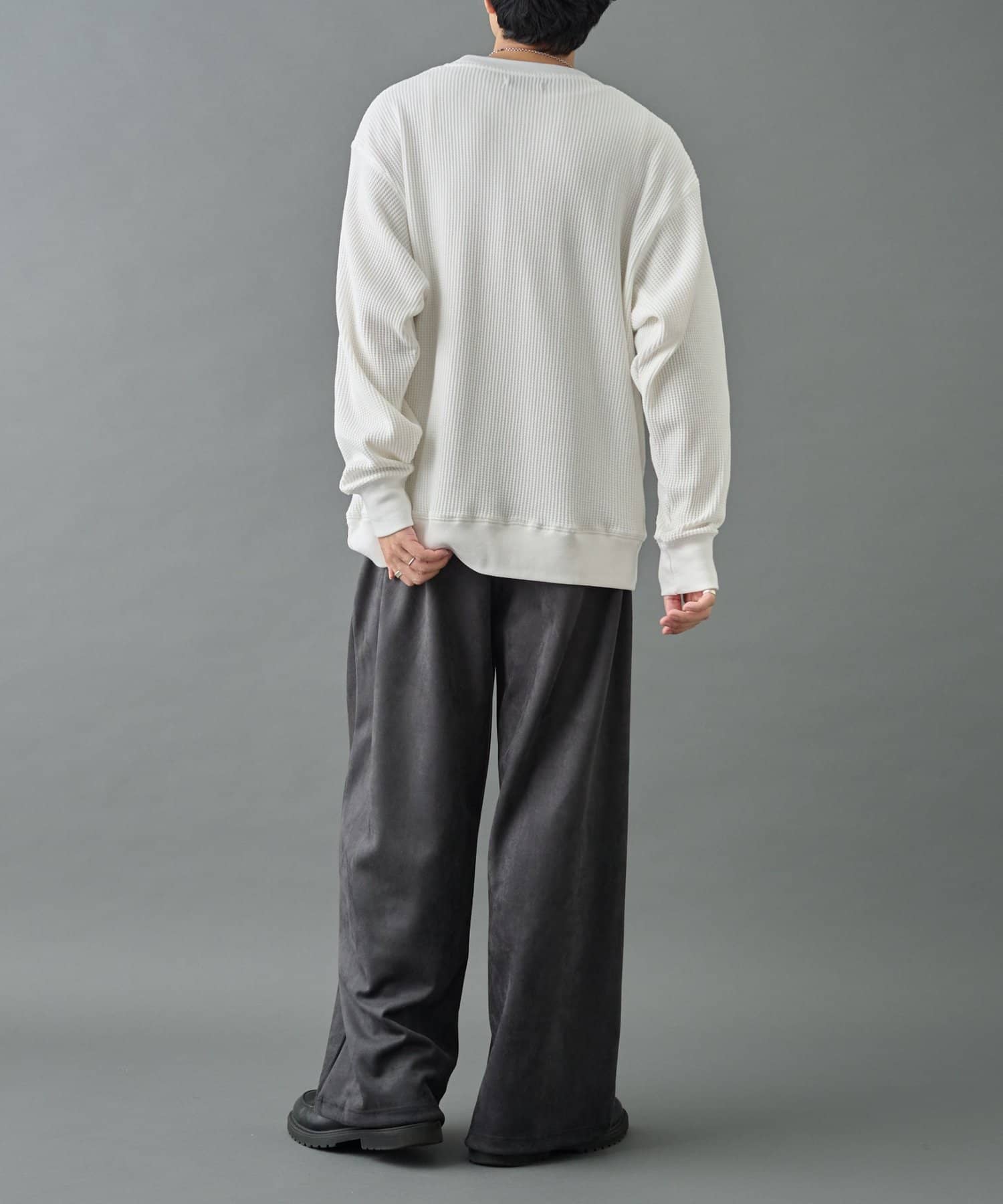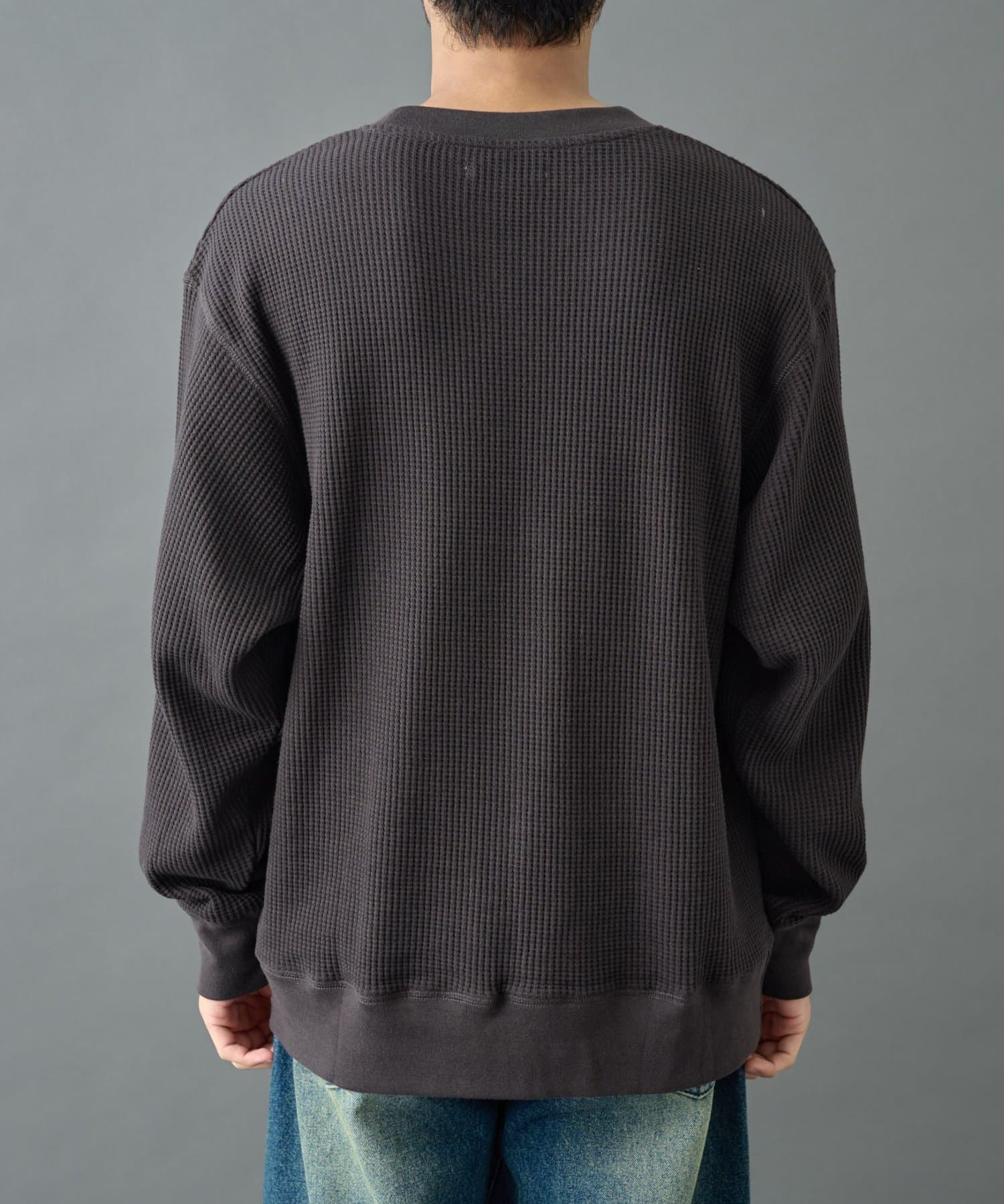 様々なアイテムと相性抜群のワッフルクルーネックです。