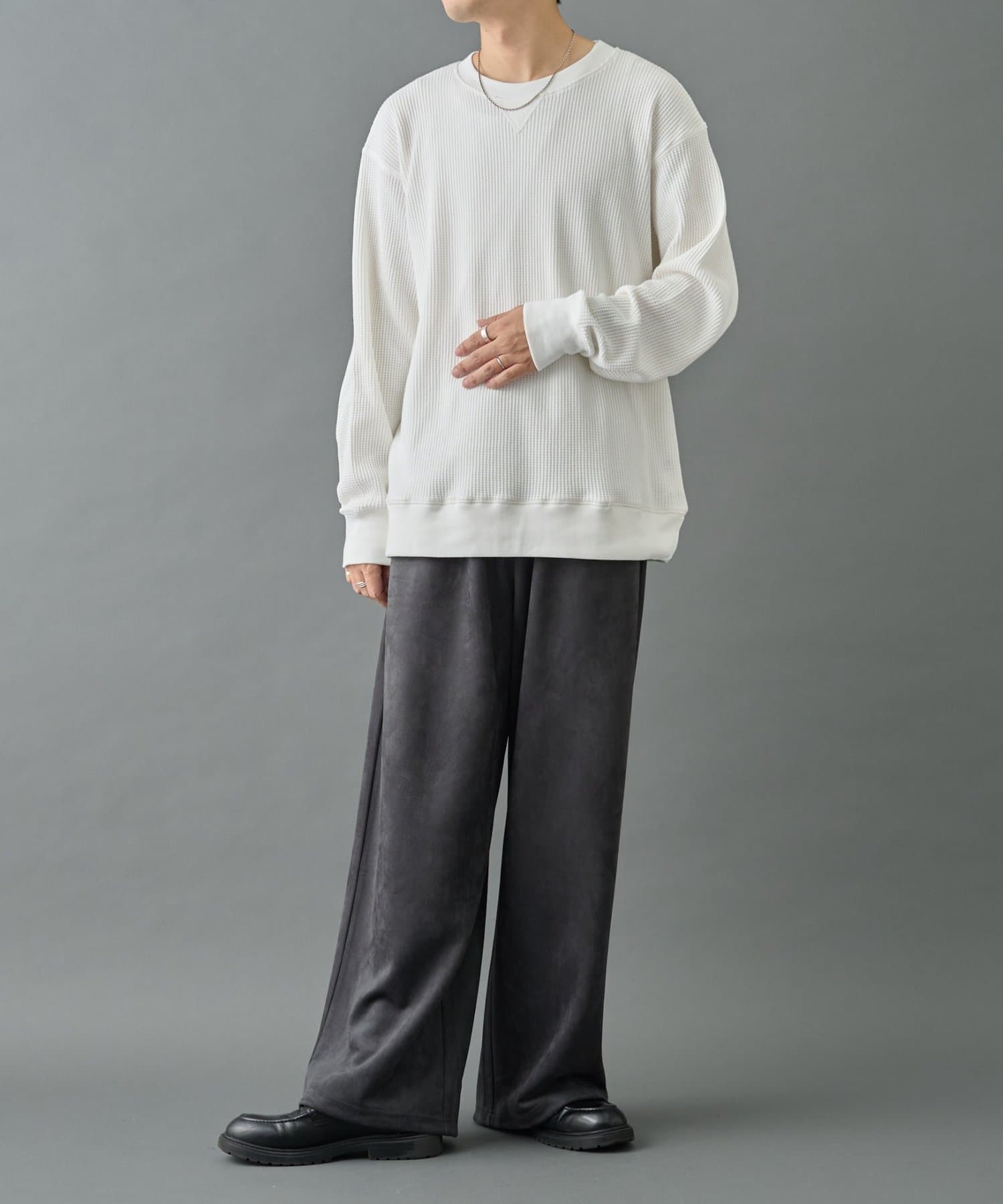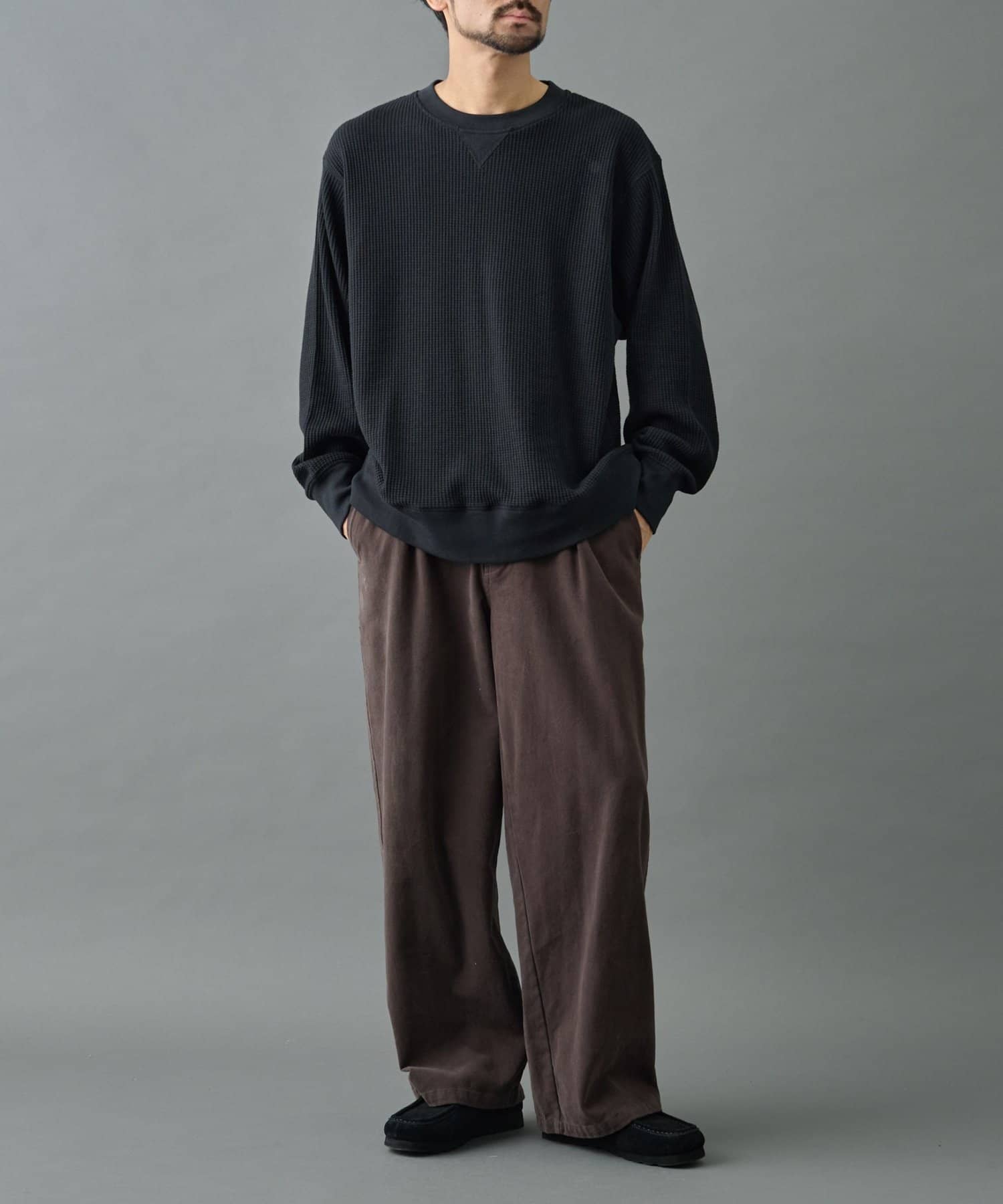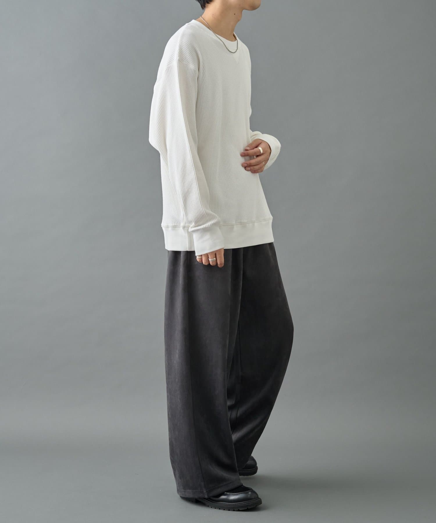 【立体感あるワッフル素材が大人のカジュアルスタイルに程よい抜け感をプラス】