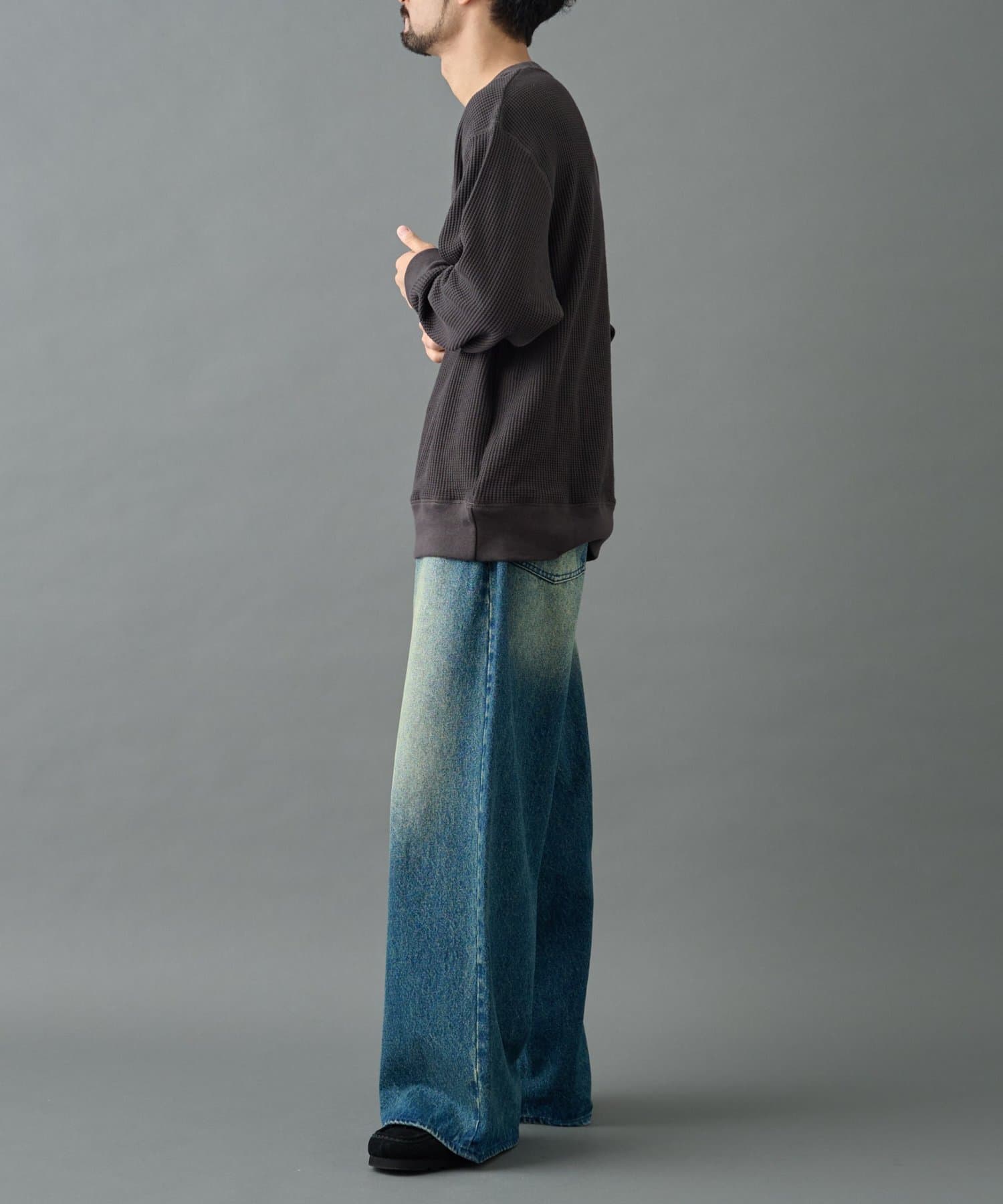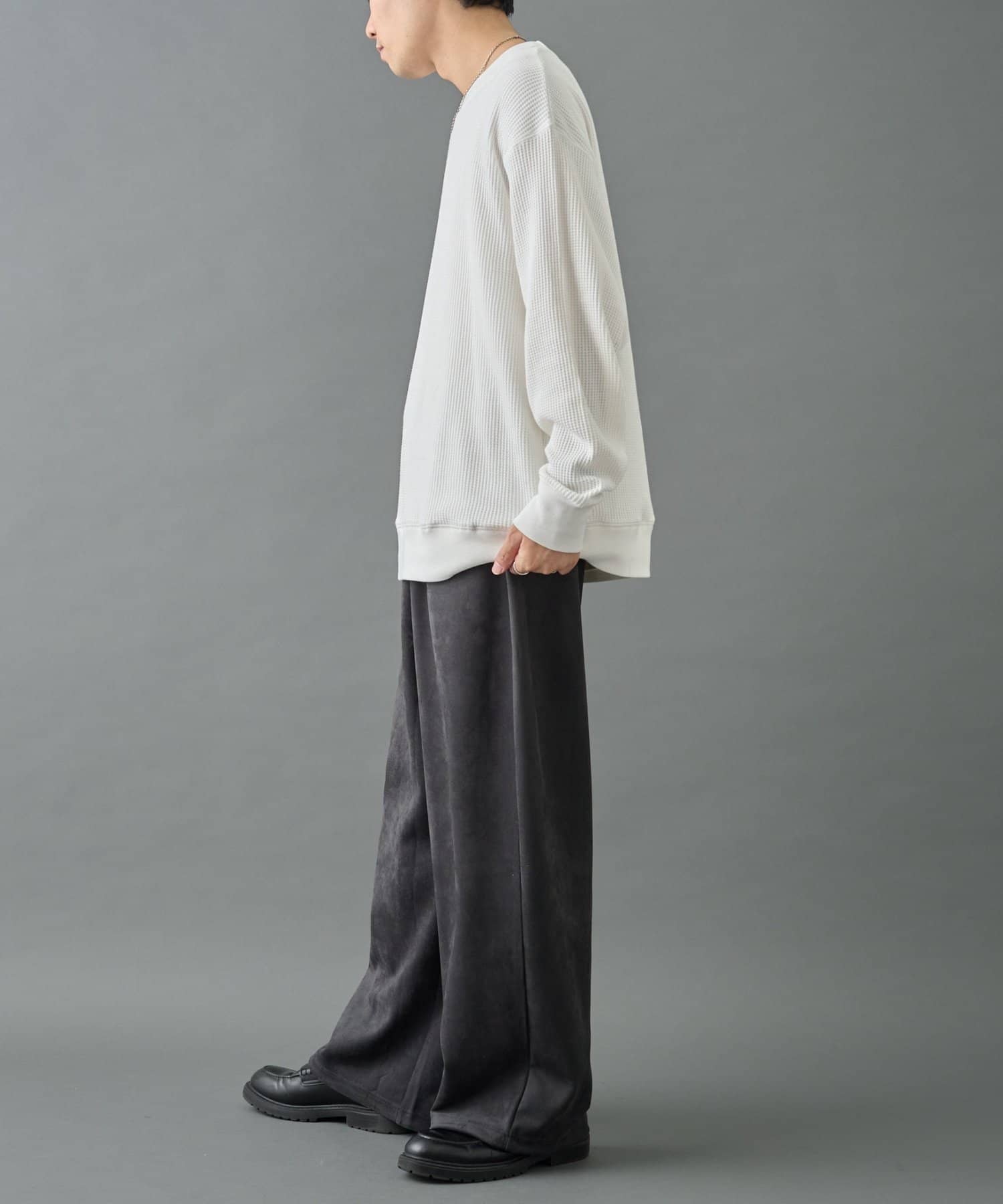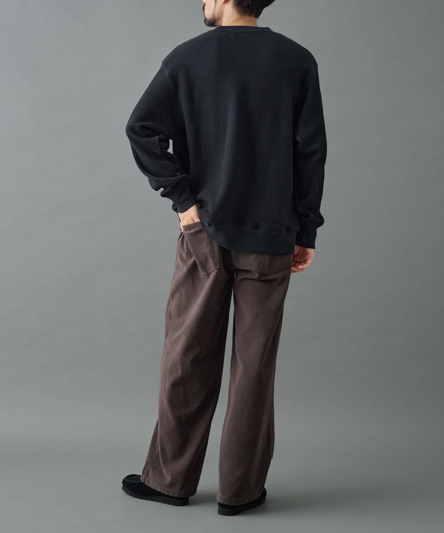 【立体感あるワッフル素材が大人のカジュアルスタイルに程よい抜け感をプラス】