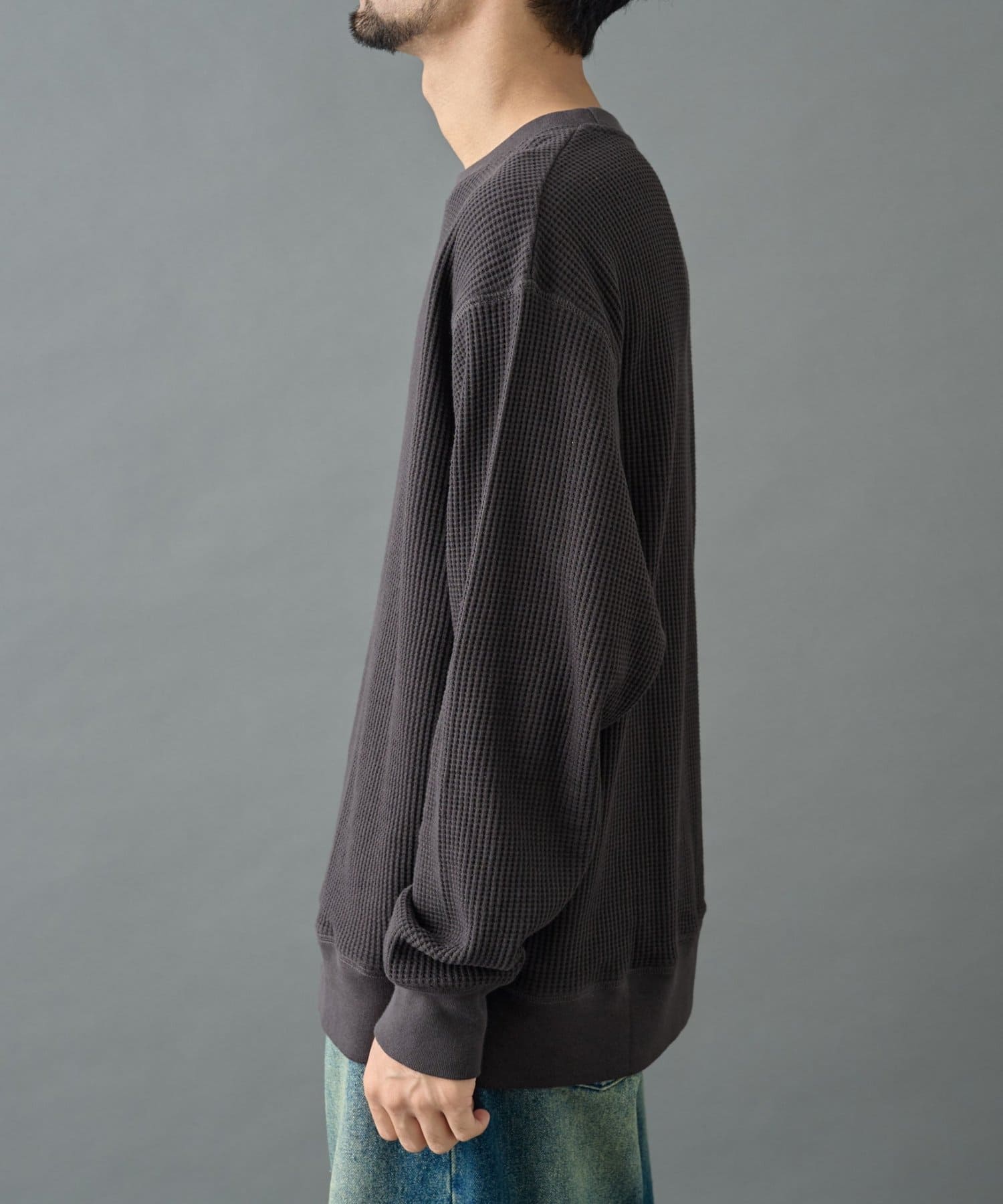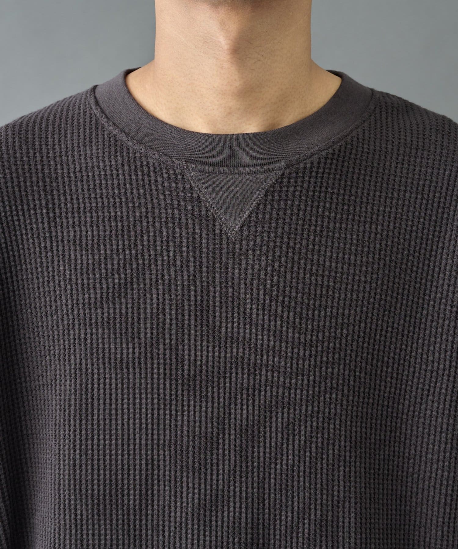 凹凸のある立体的な編み目が特徴なワッフル生地を使用したクルーネックです。