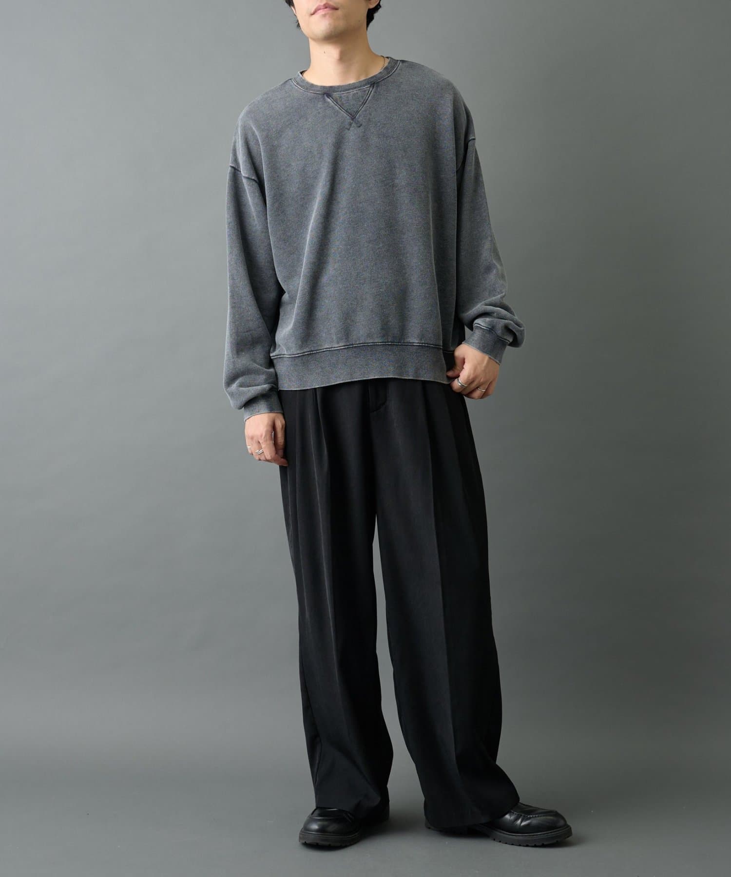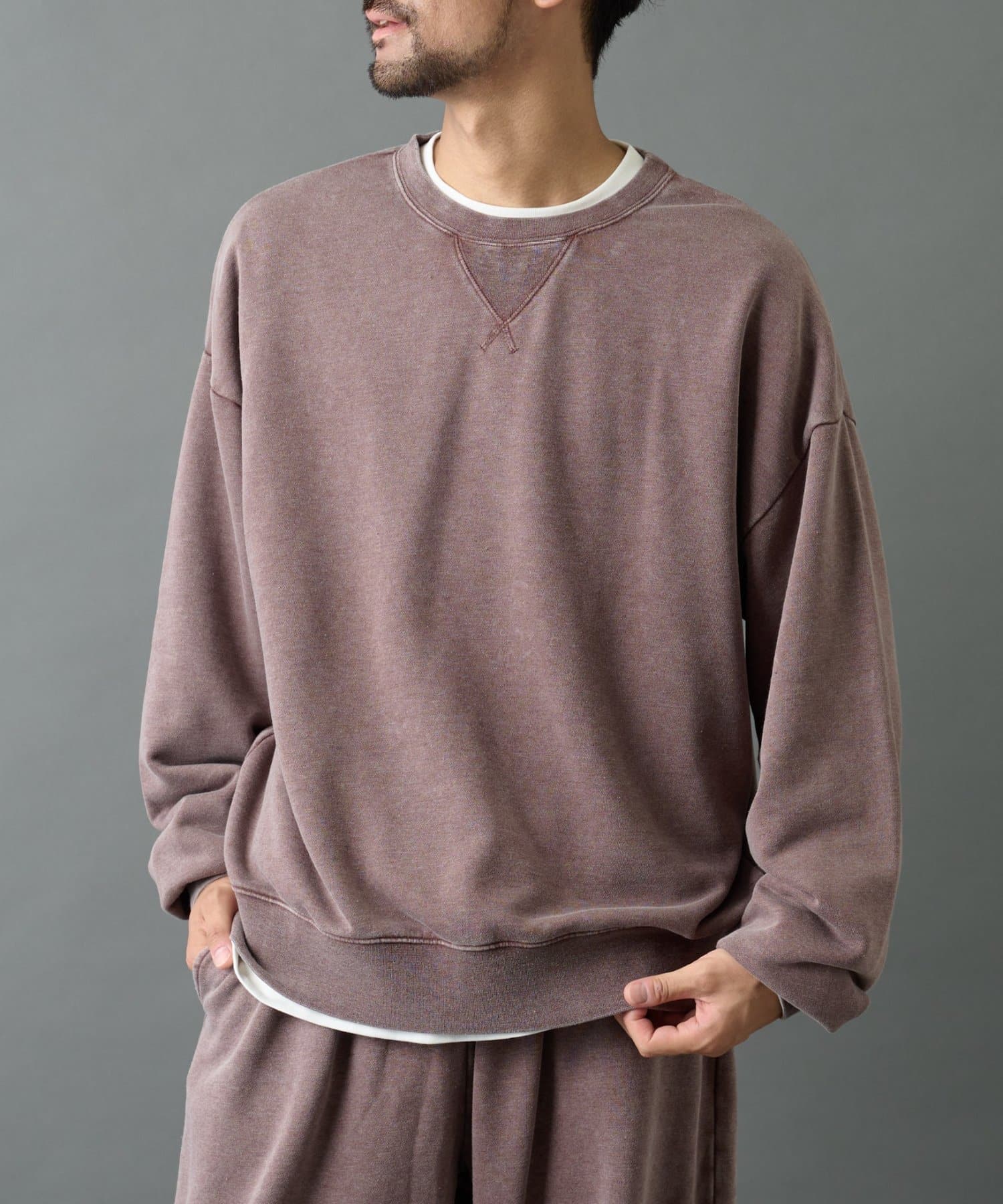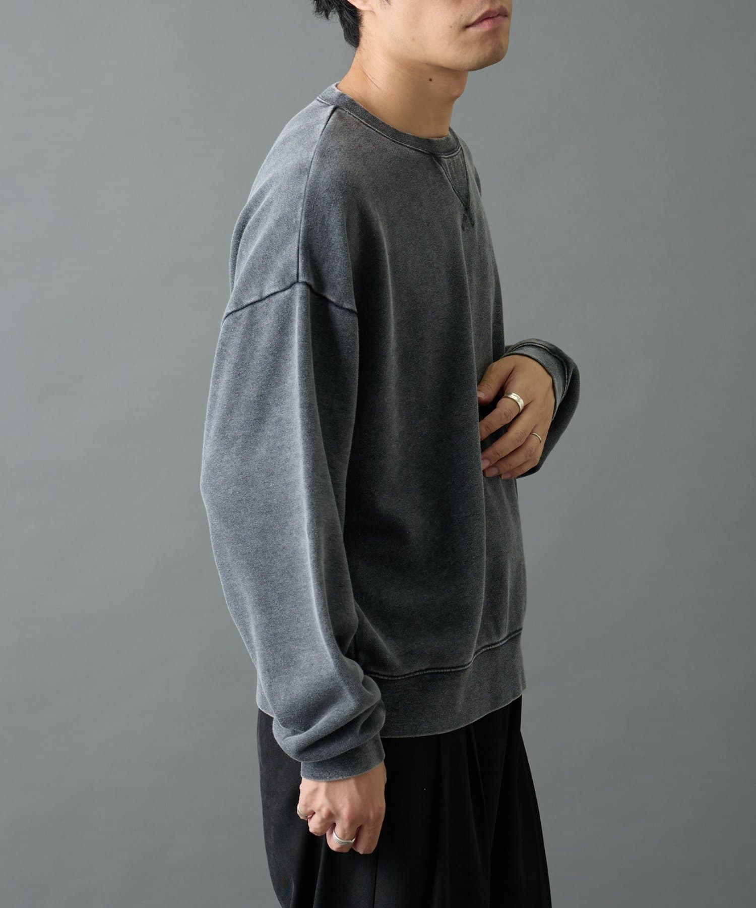 やさしく包み込むような着心地と、洗練された表情が魅力のパウダー加工スウェットクルーネック。