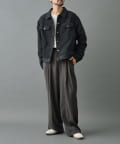同素材のボトムスとセットアップとして合わせるのもおすすめです。