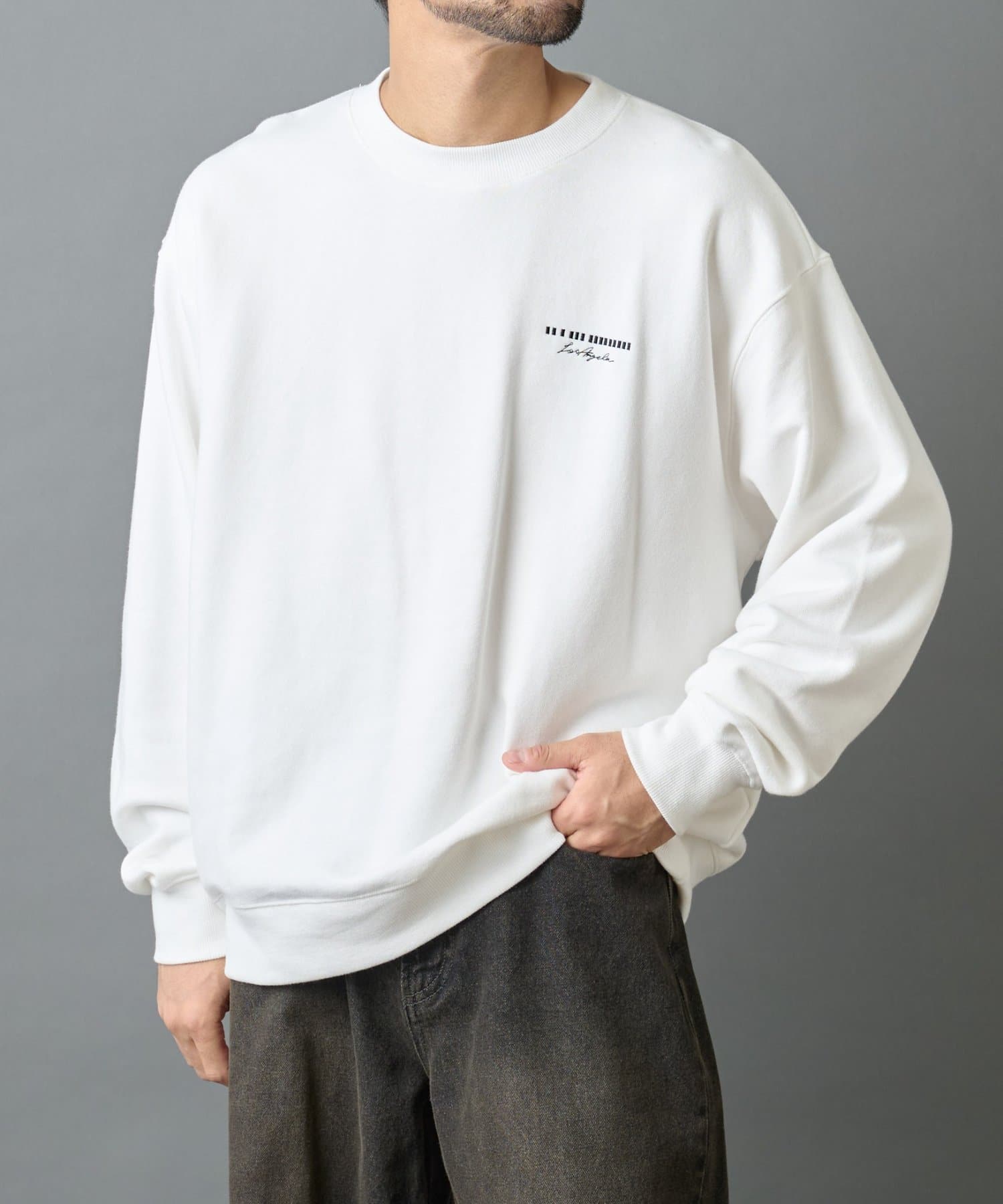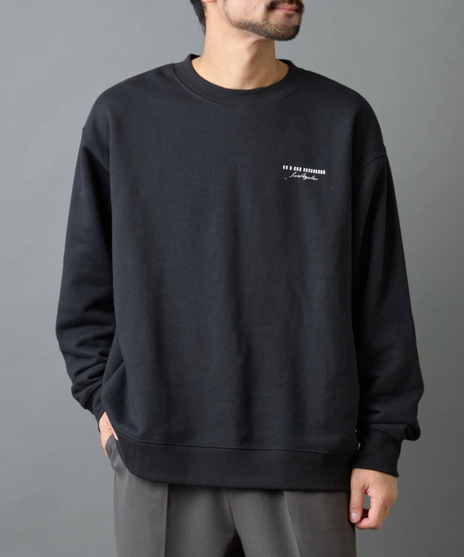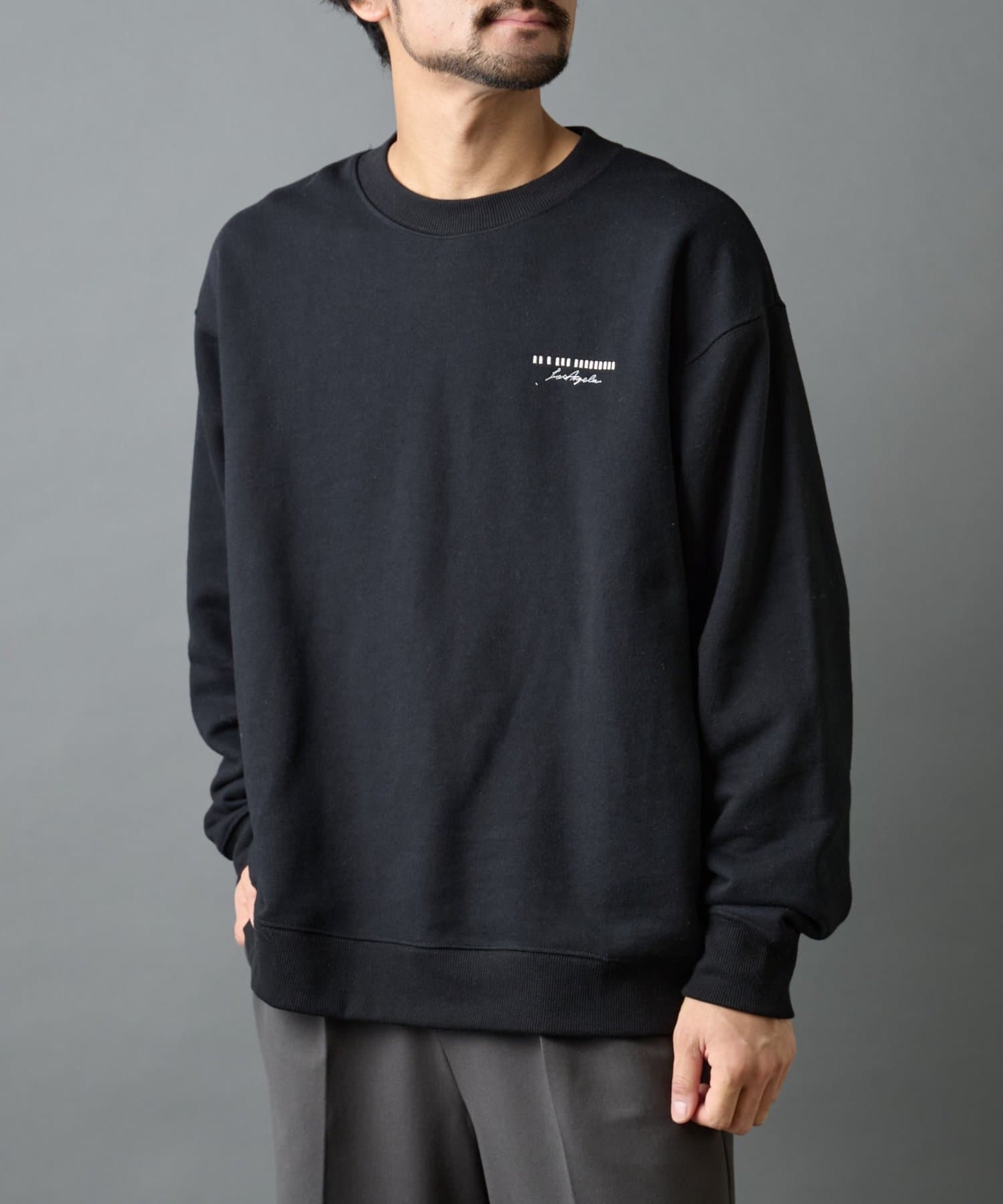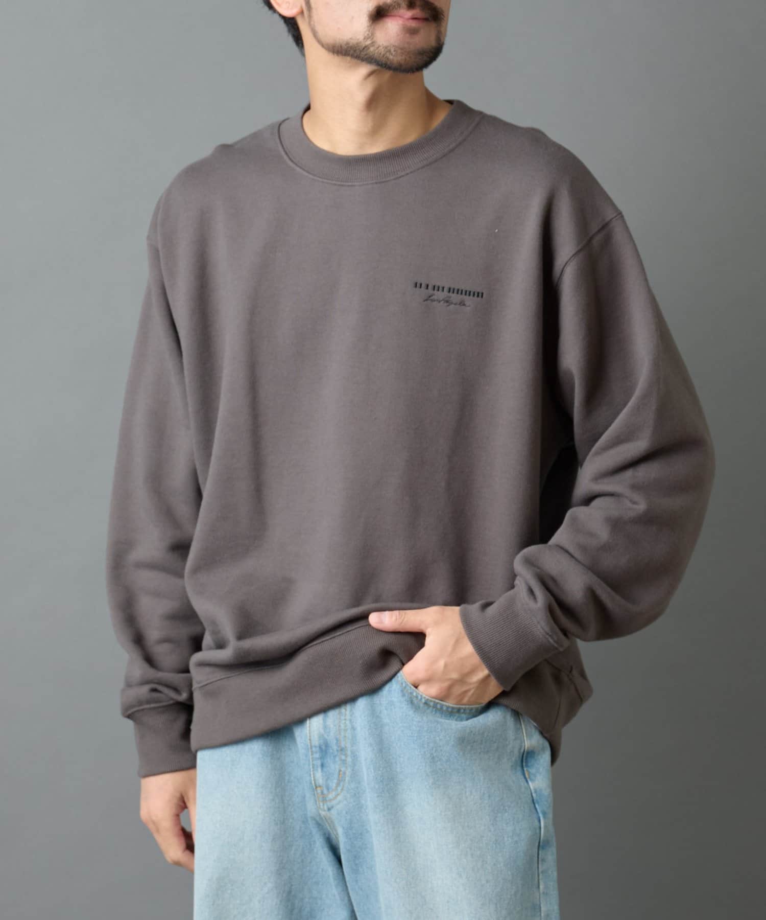 【胸元の刺繍がアクセントのクルーネックスウェット】