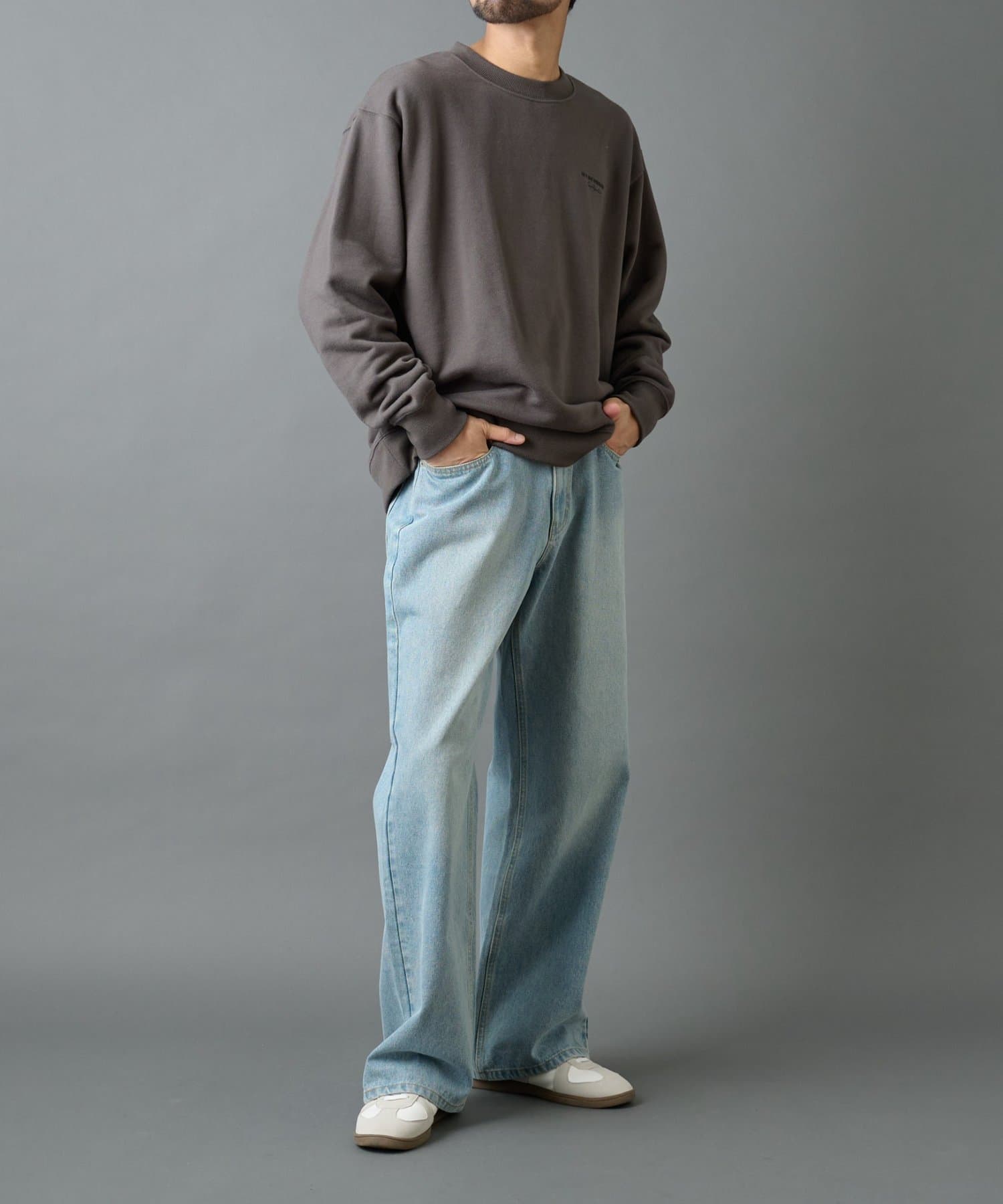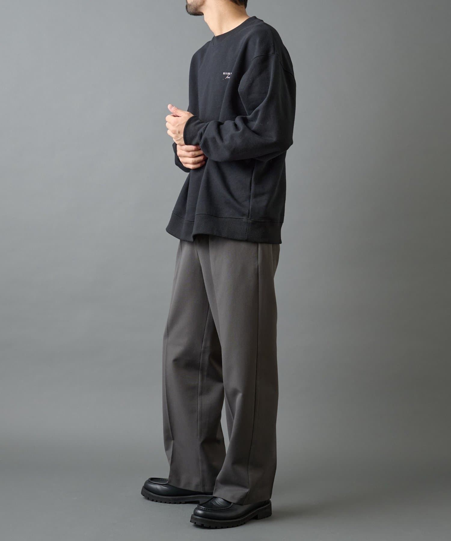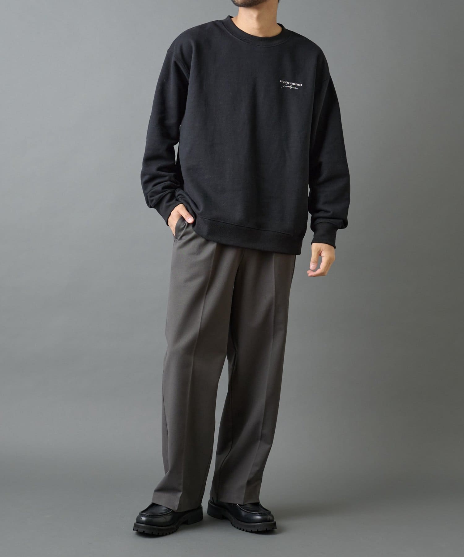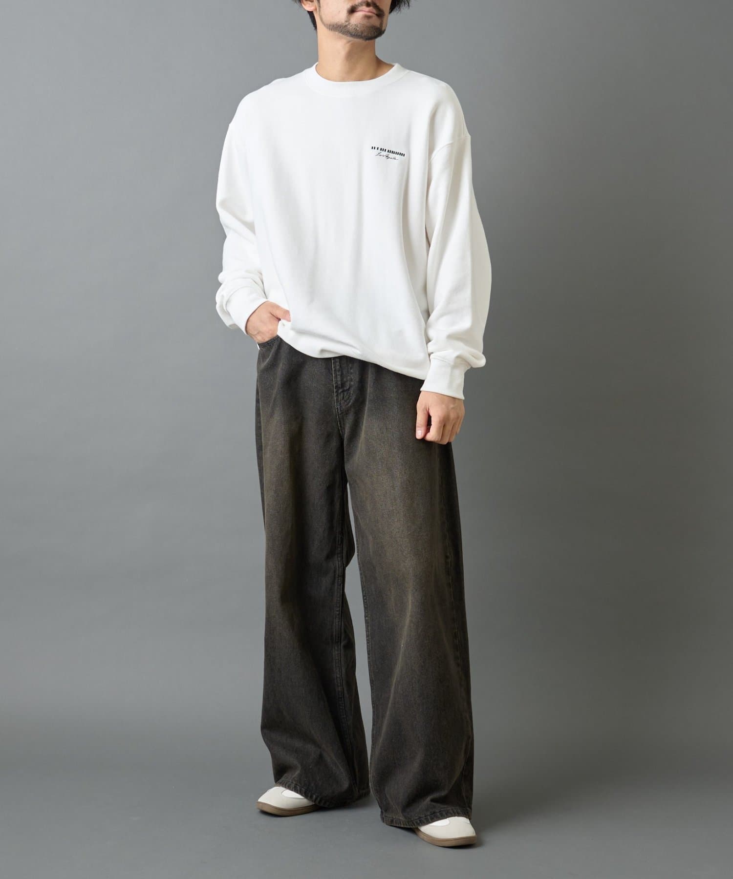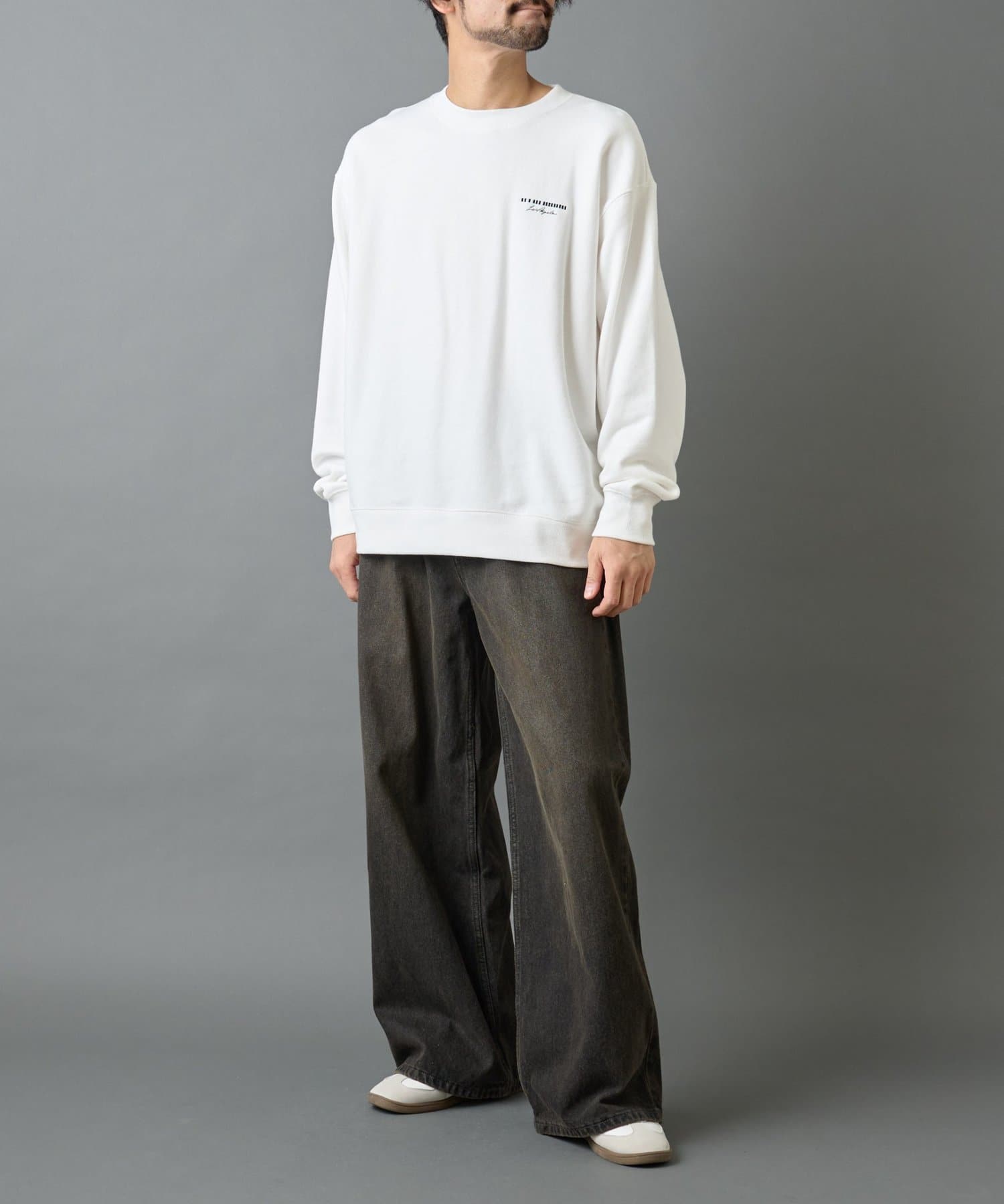 【胸元の刺繍がアクセントのクルーネックスウェット】