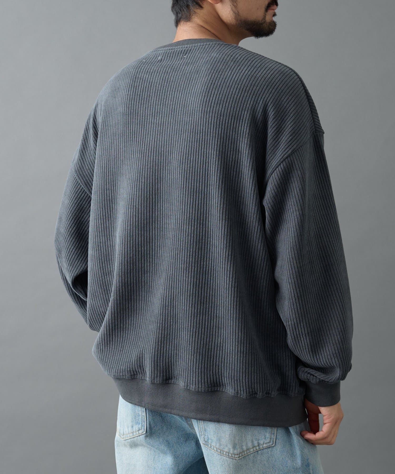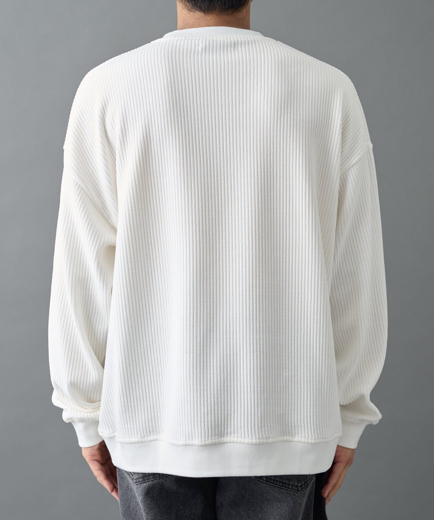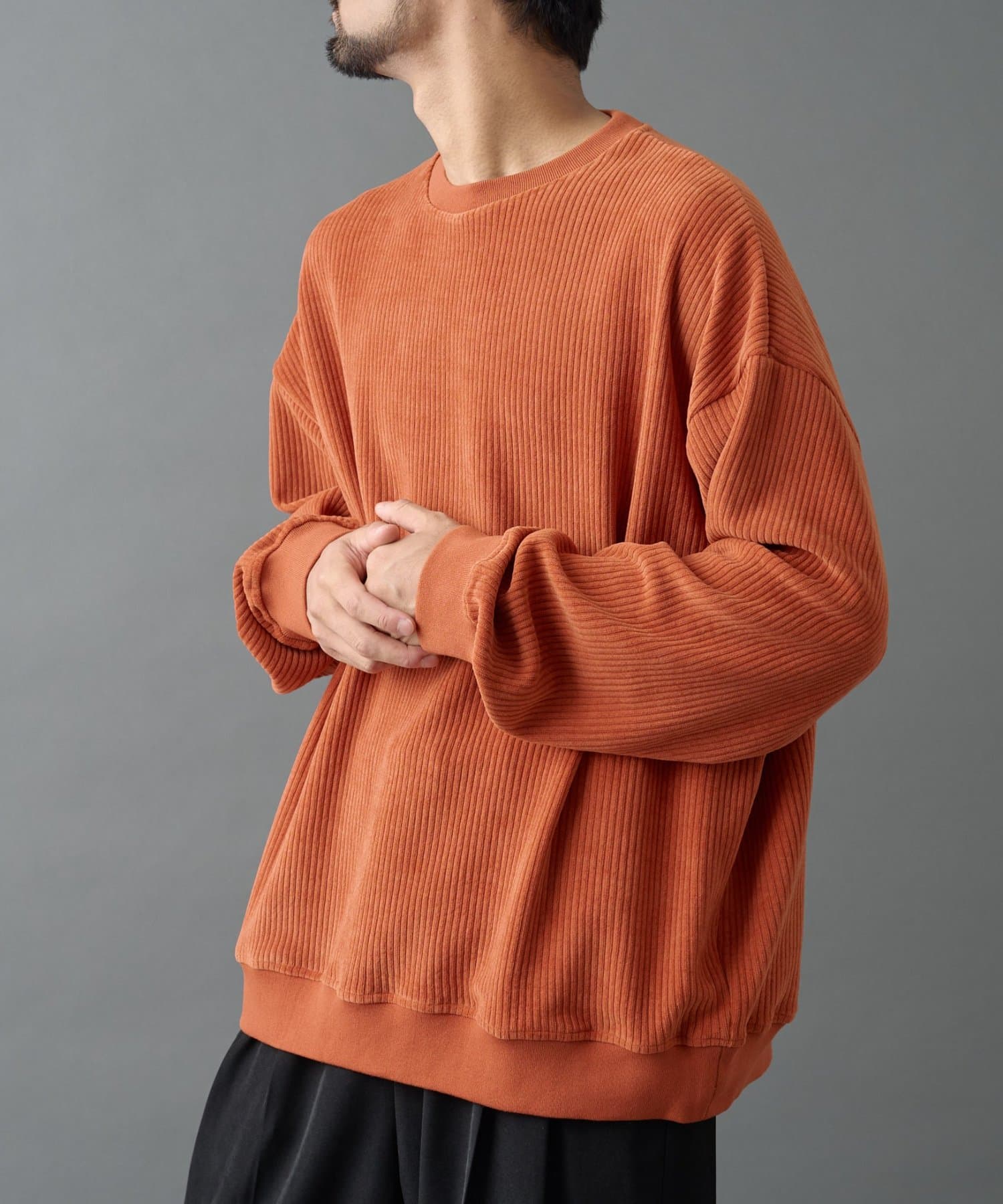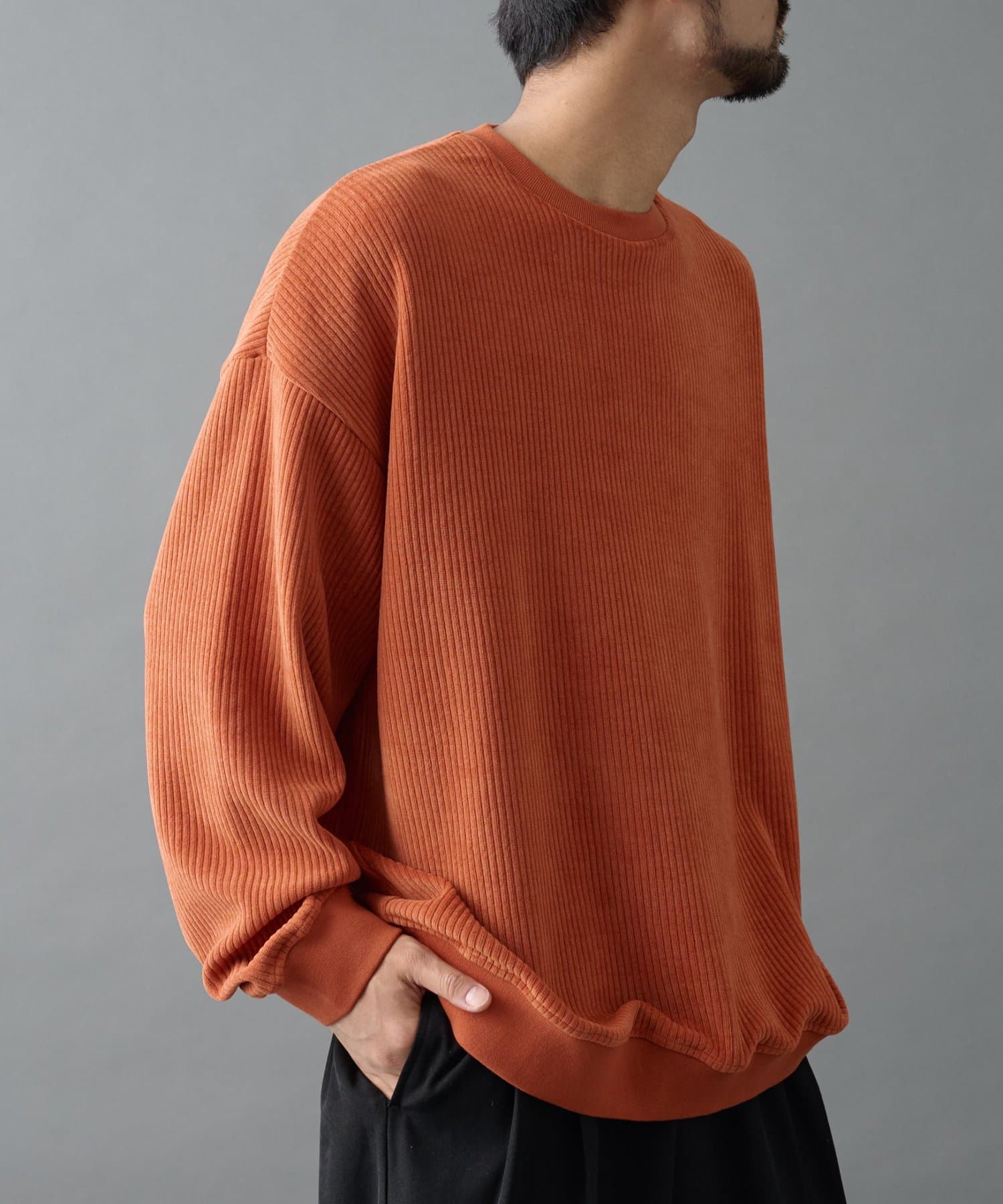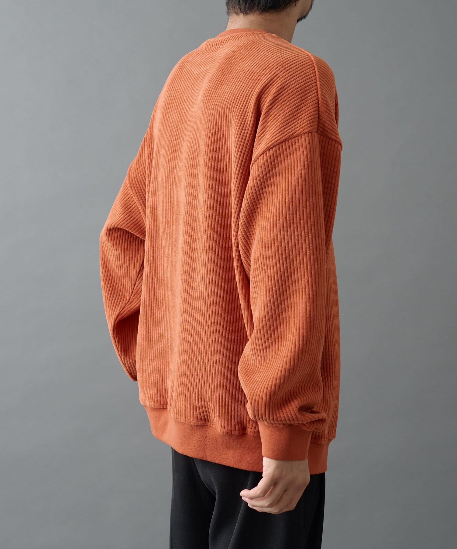 縦に並んだ畝が特徴的なコーデュロイ素材を使用したクルーネックです。