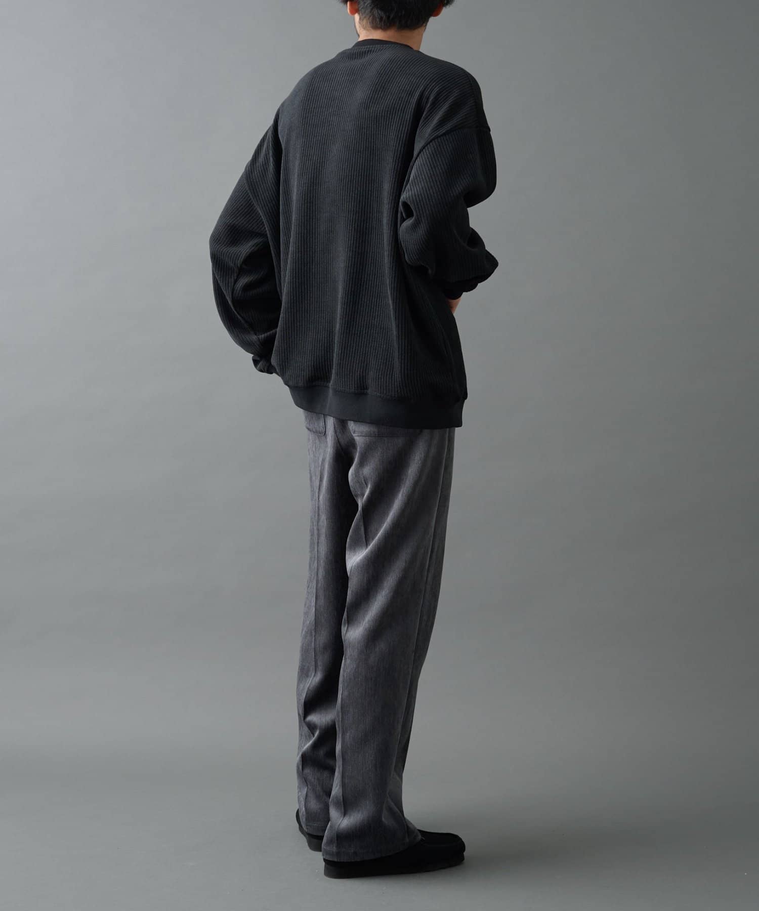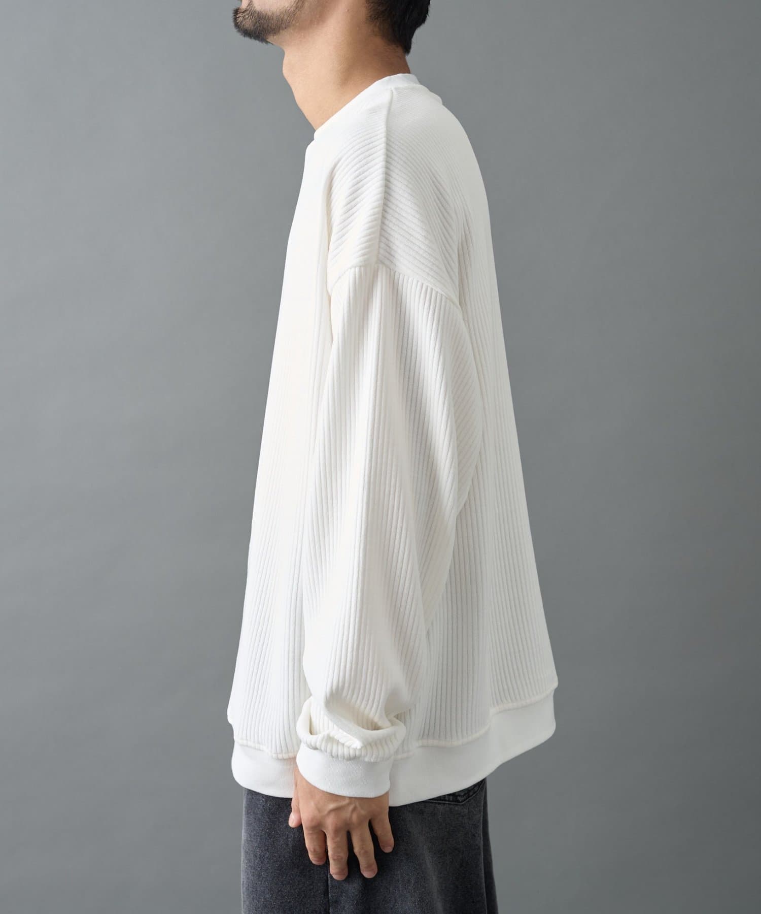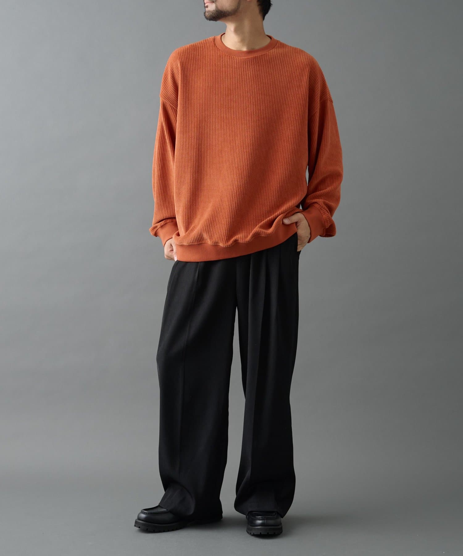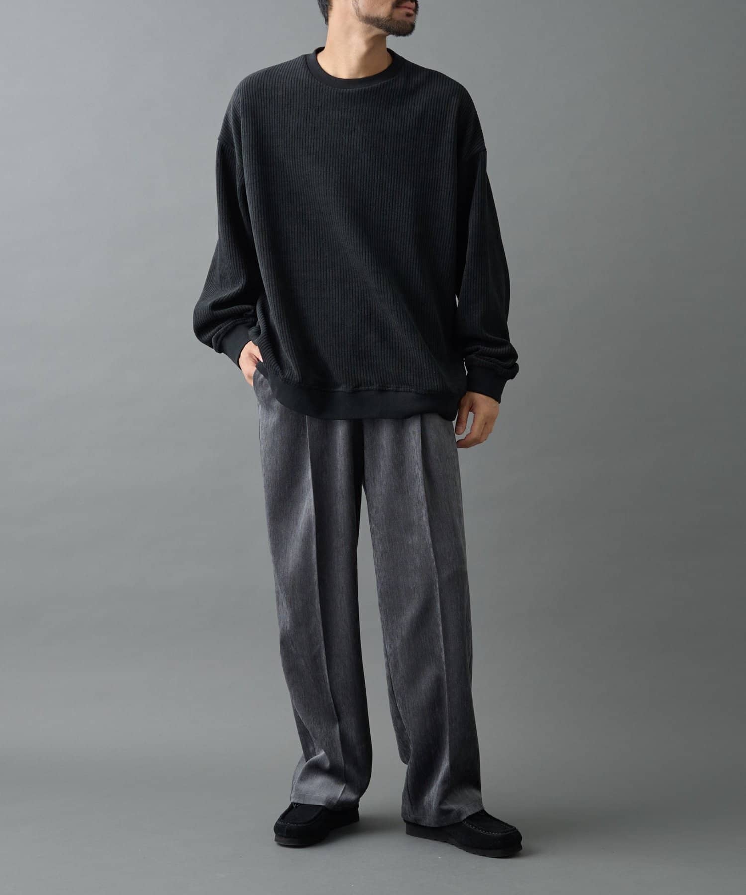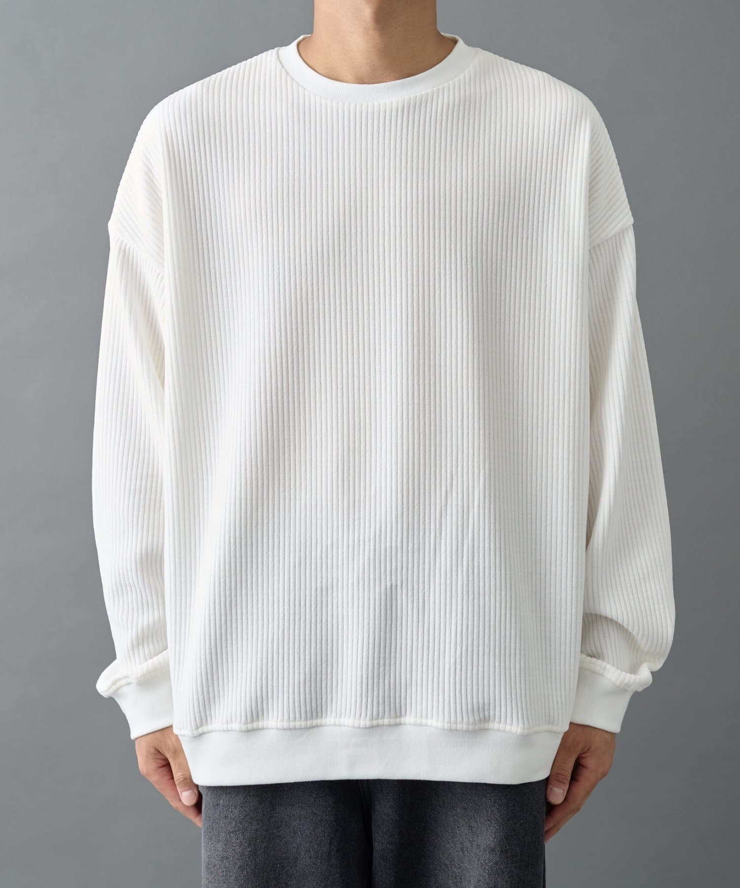縦に並んだ畝が特徴的なコーデュロイ素材を使用したクルーネックです。