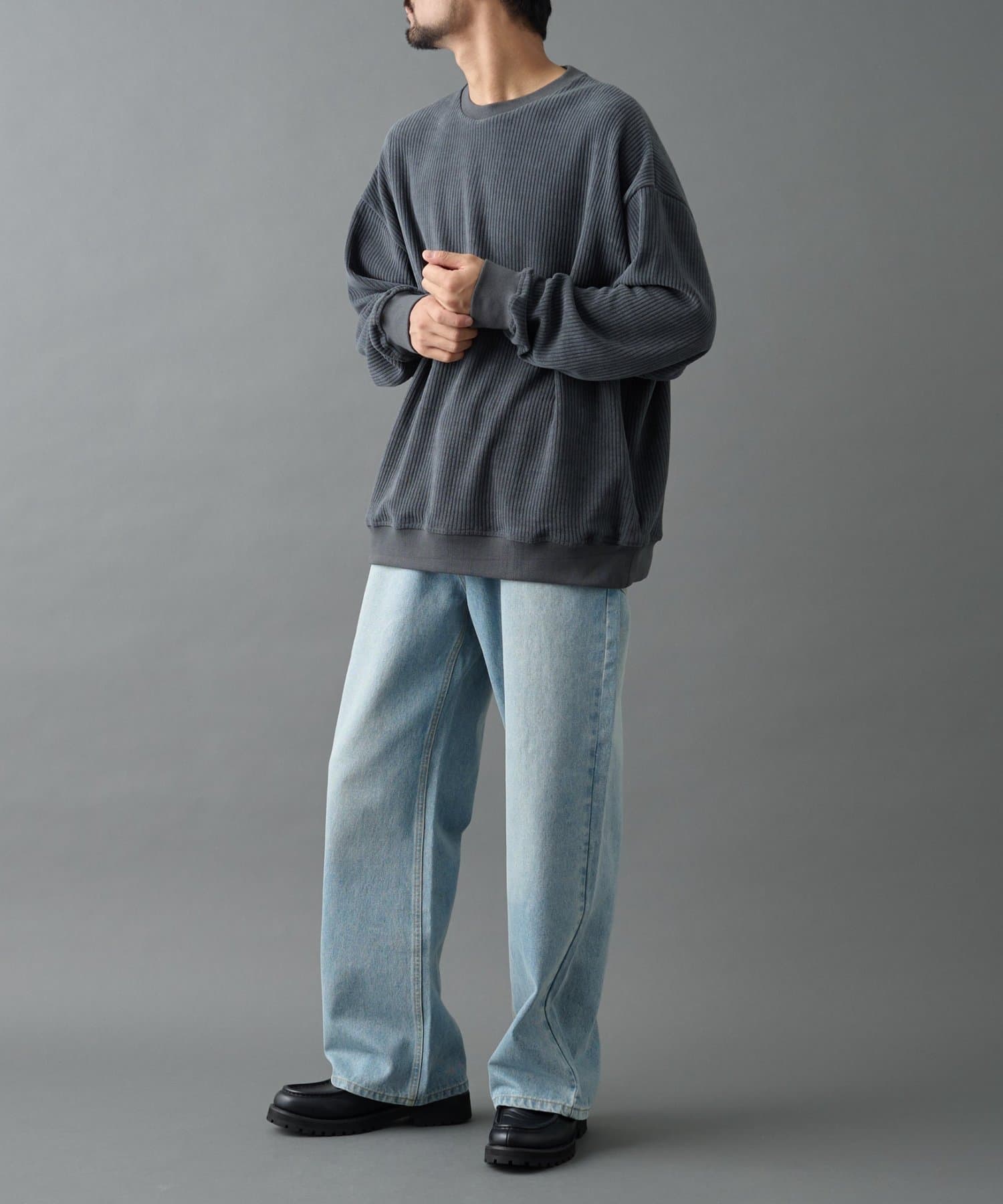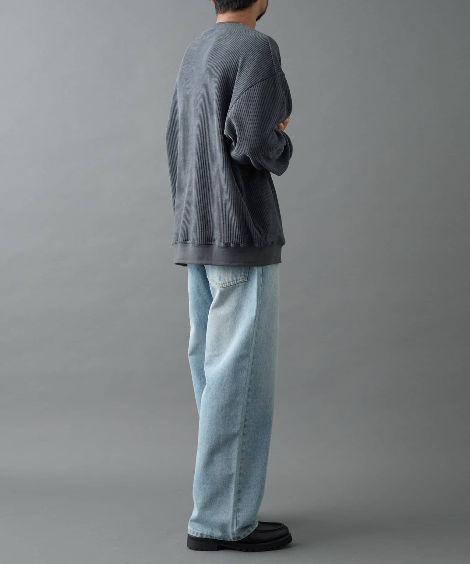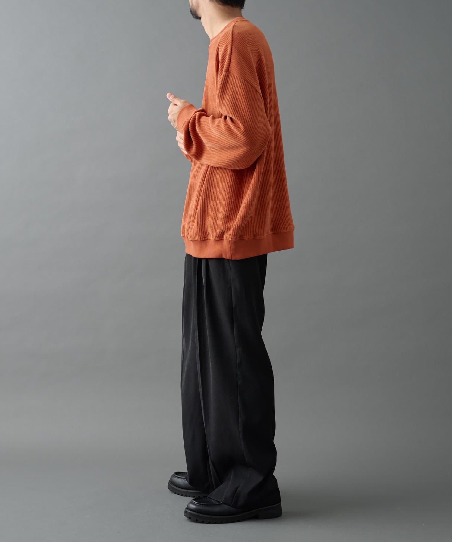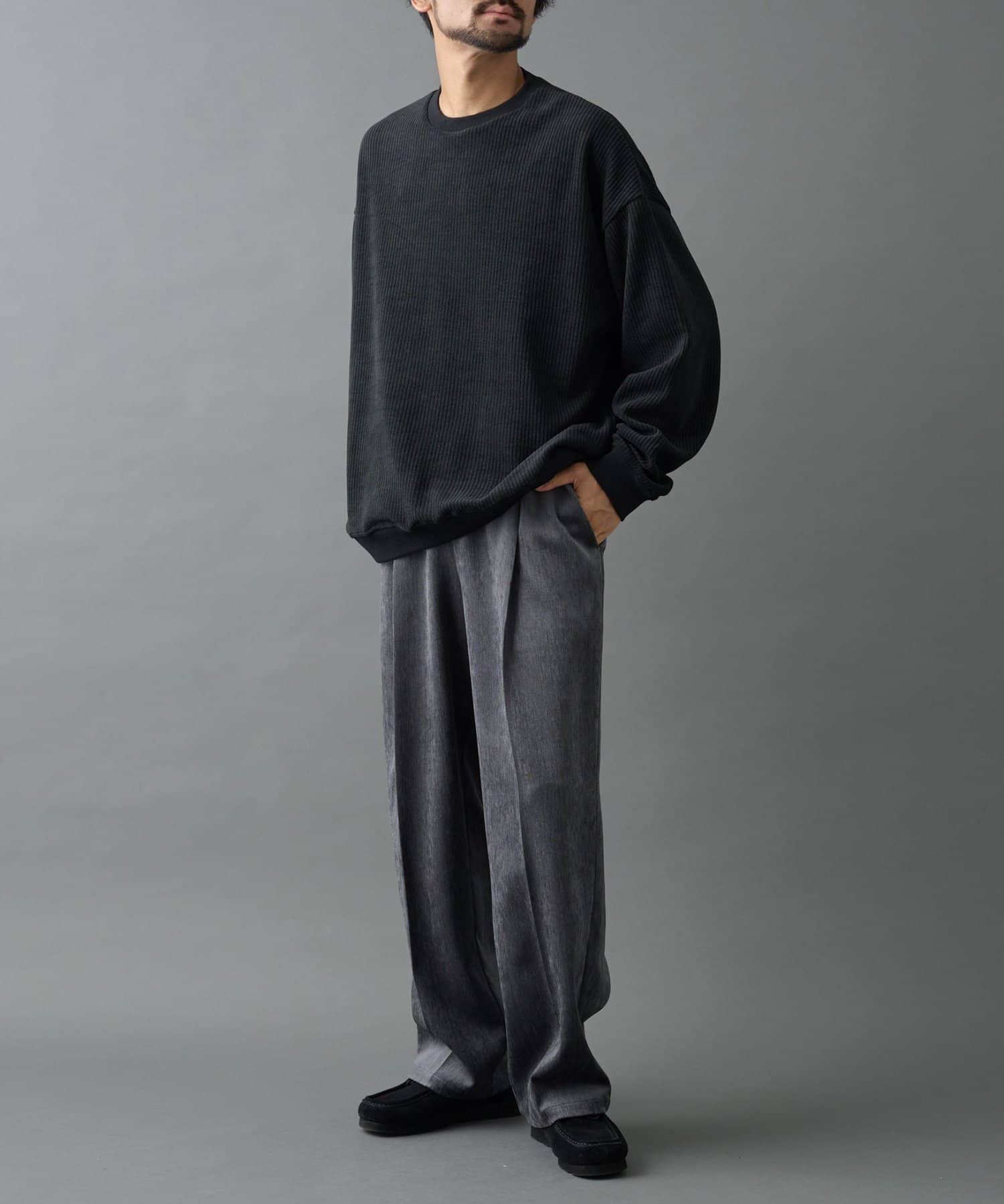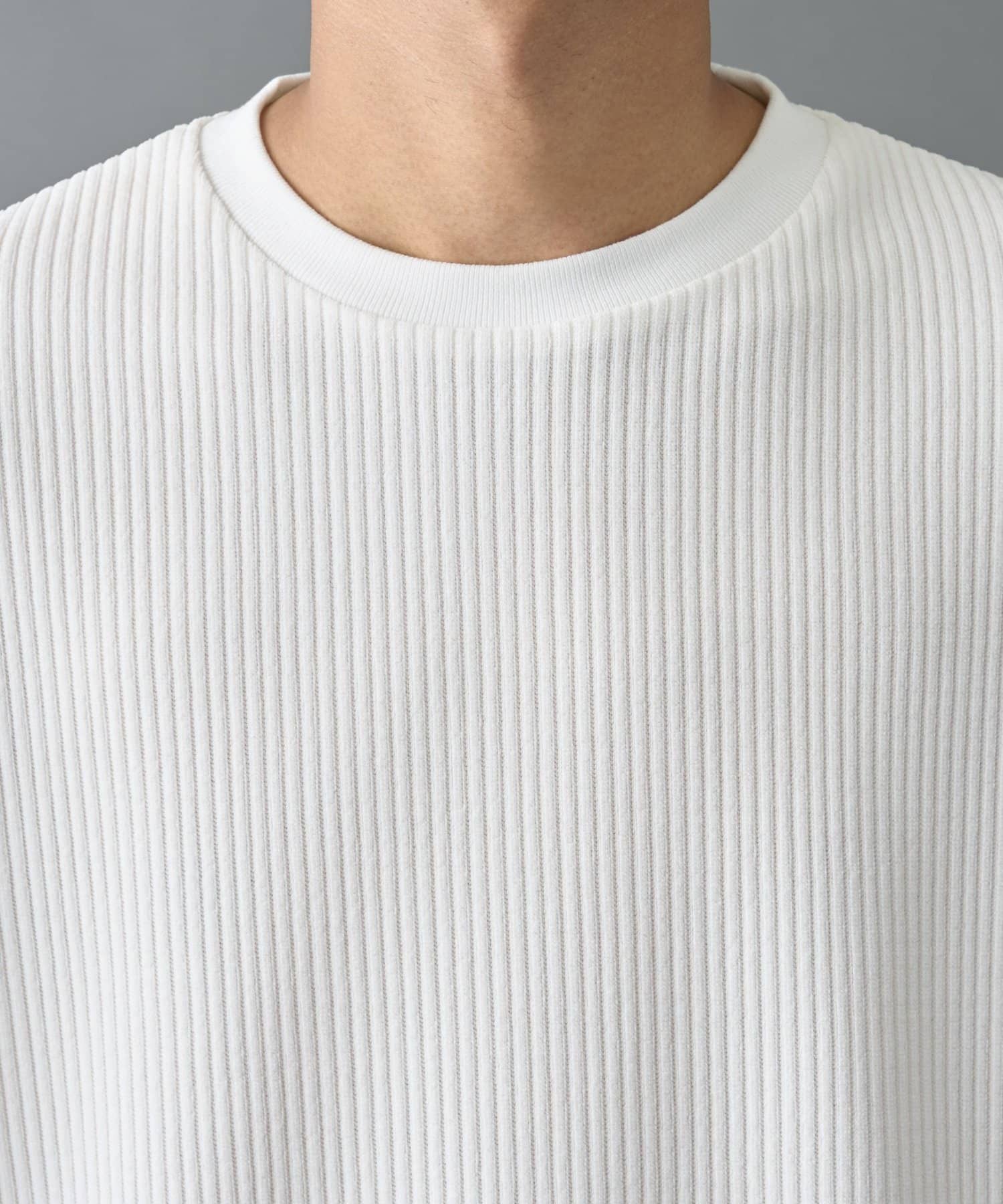 縦に並んだ畝が特徴的なコーデュロイ素材を使用したクルーネックです。