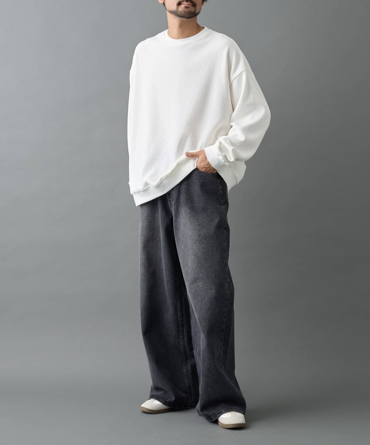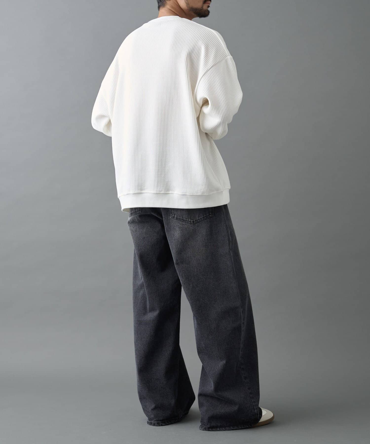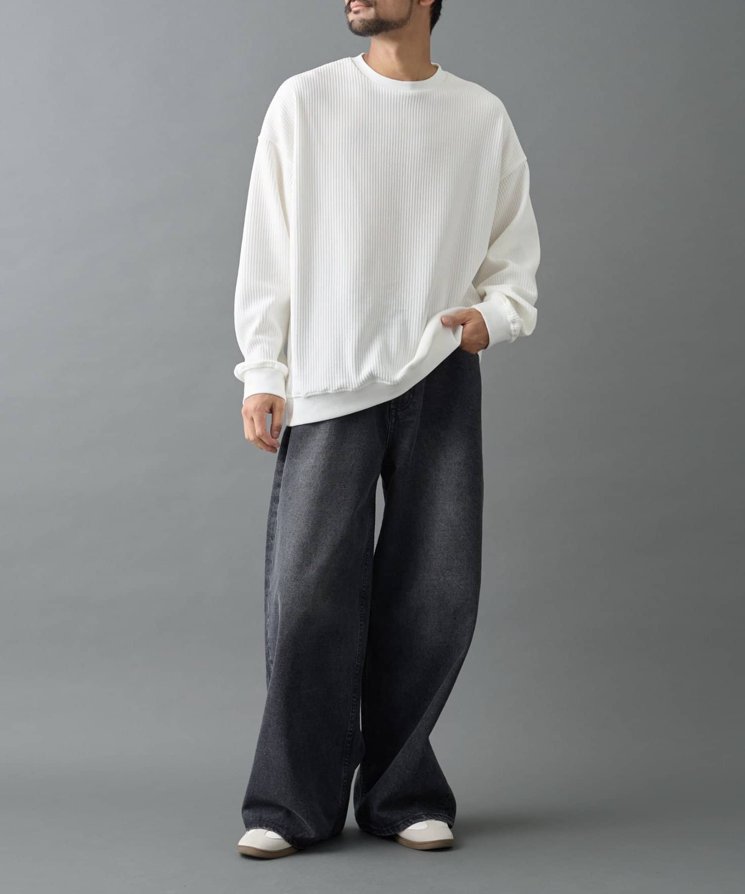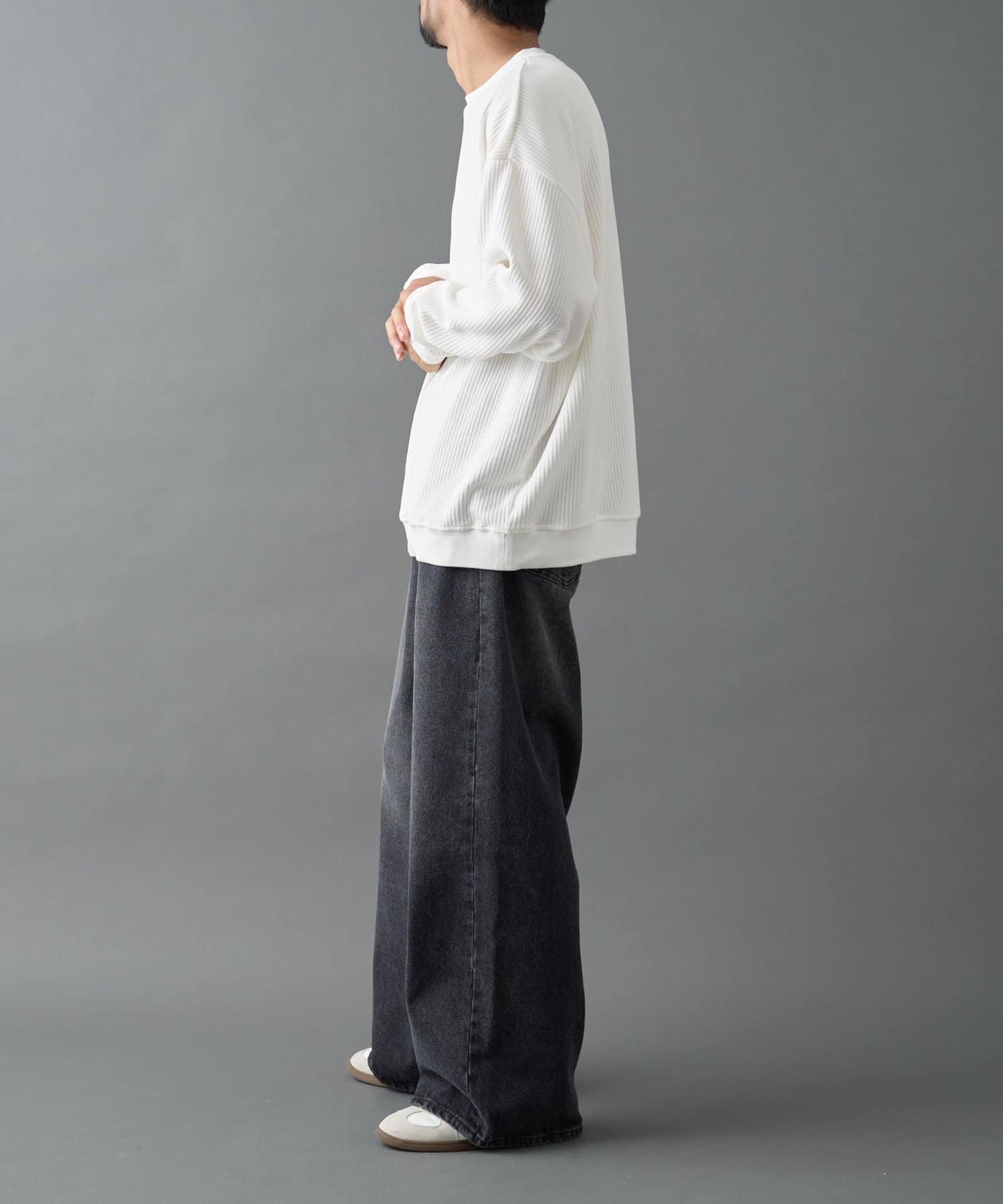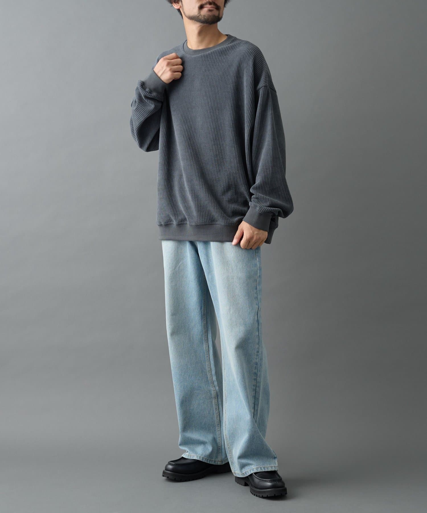 縦に並んだ畝が特徴的なコーデュロイ素材を使用したクルーネックです。