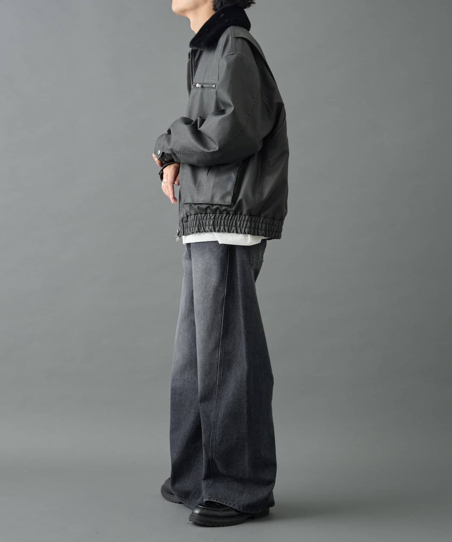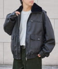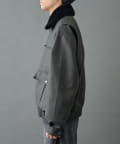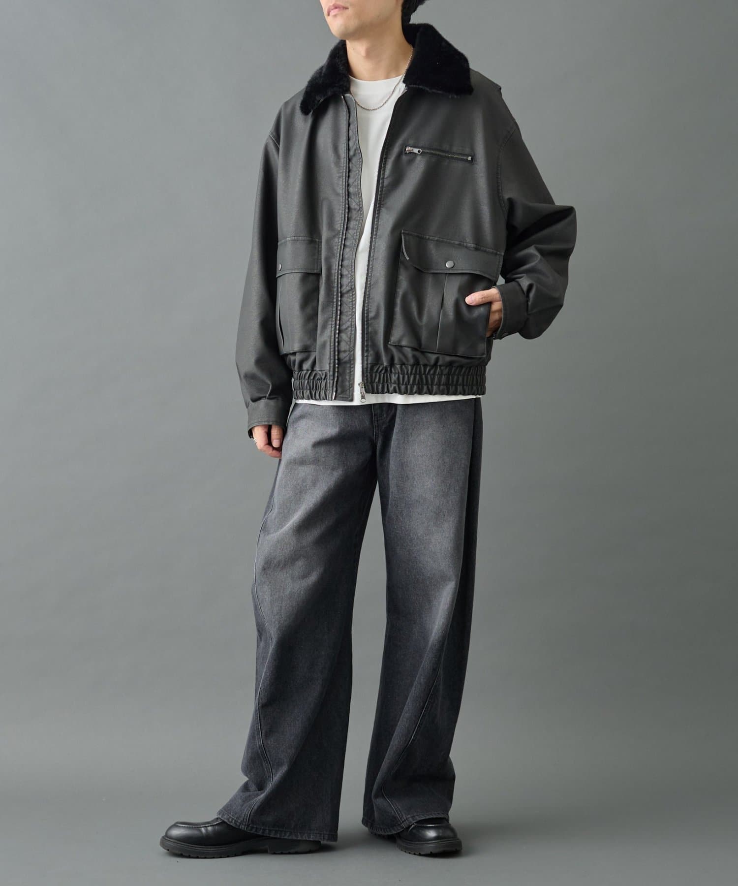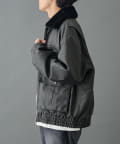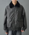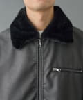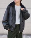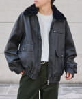 G-1ジャケットならではのフライト仕様と立体的なシルエットをベースに、レザーライクなフェイク素材で仕上げたアイテムです。