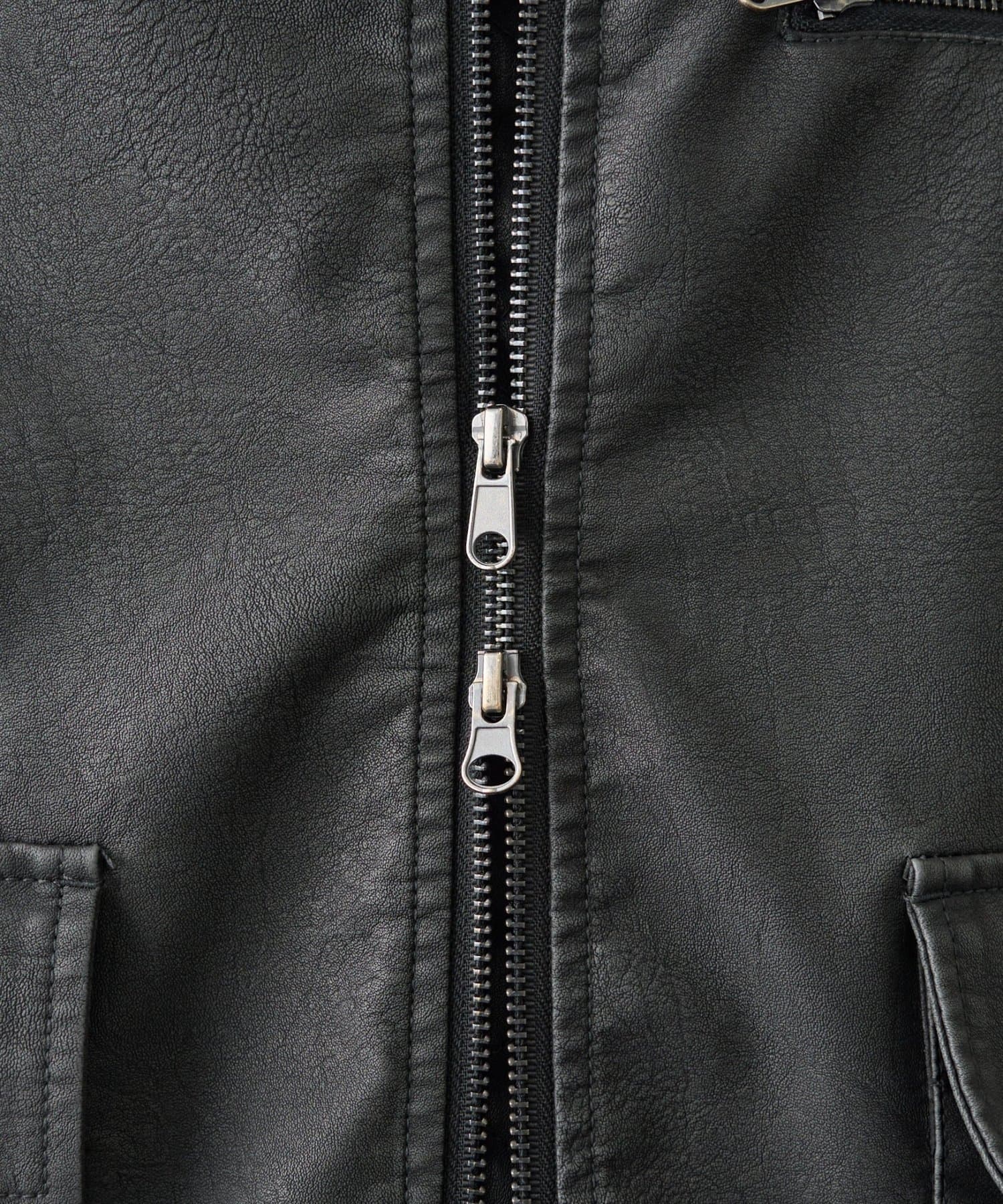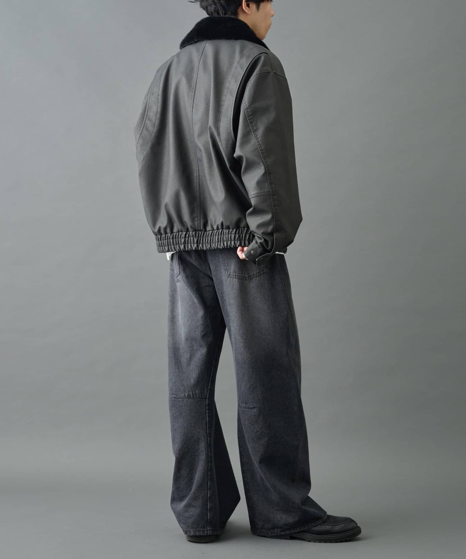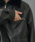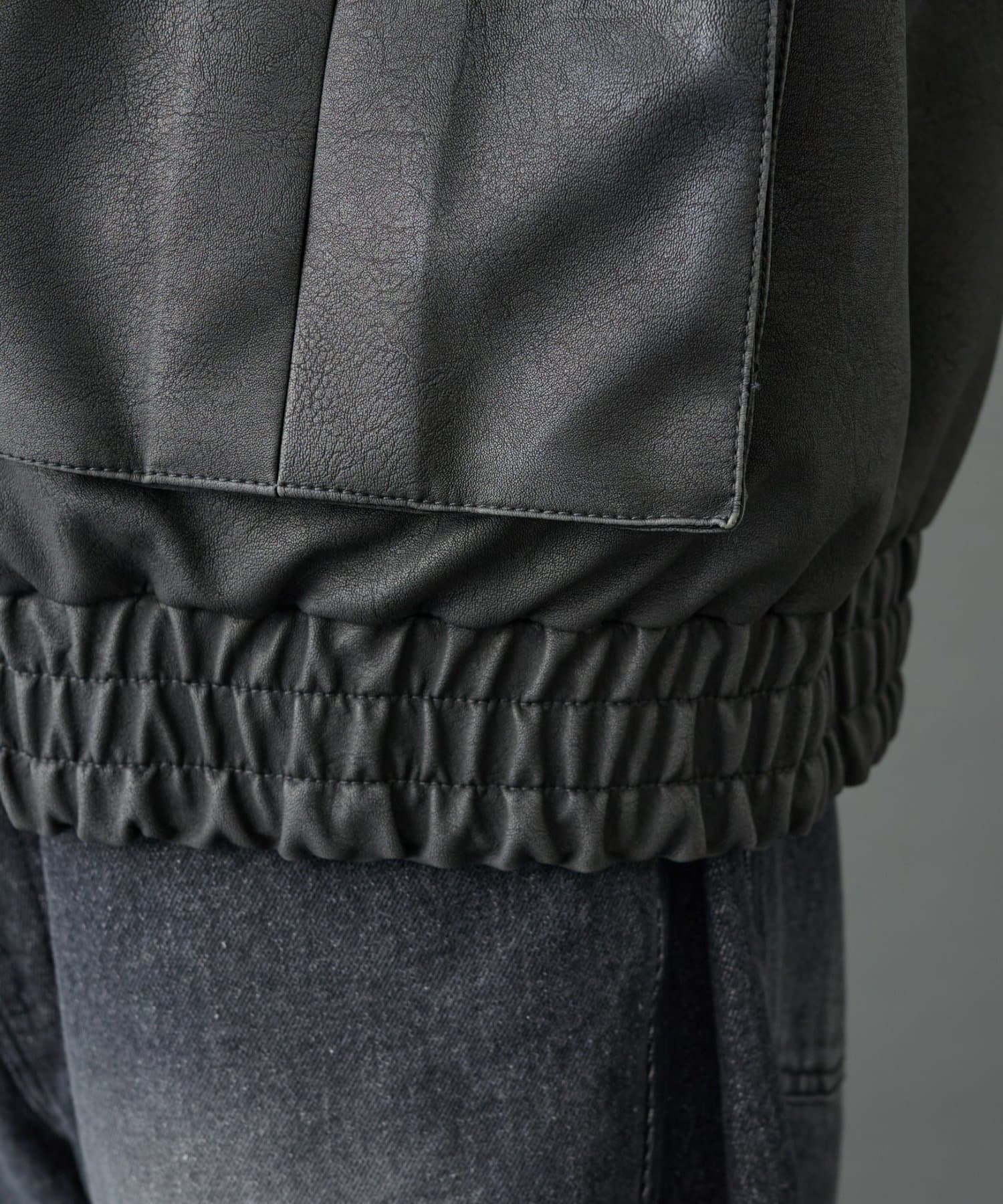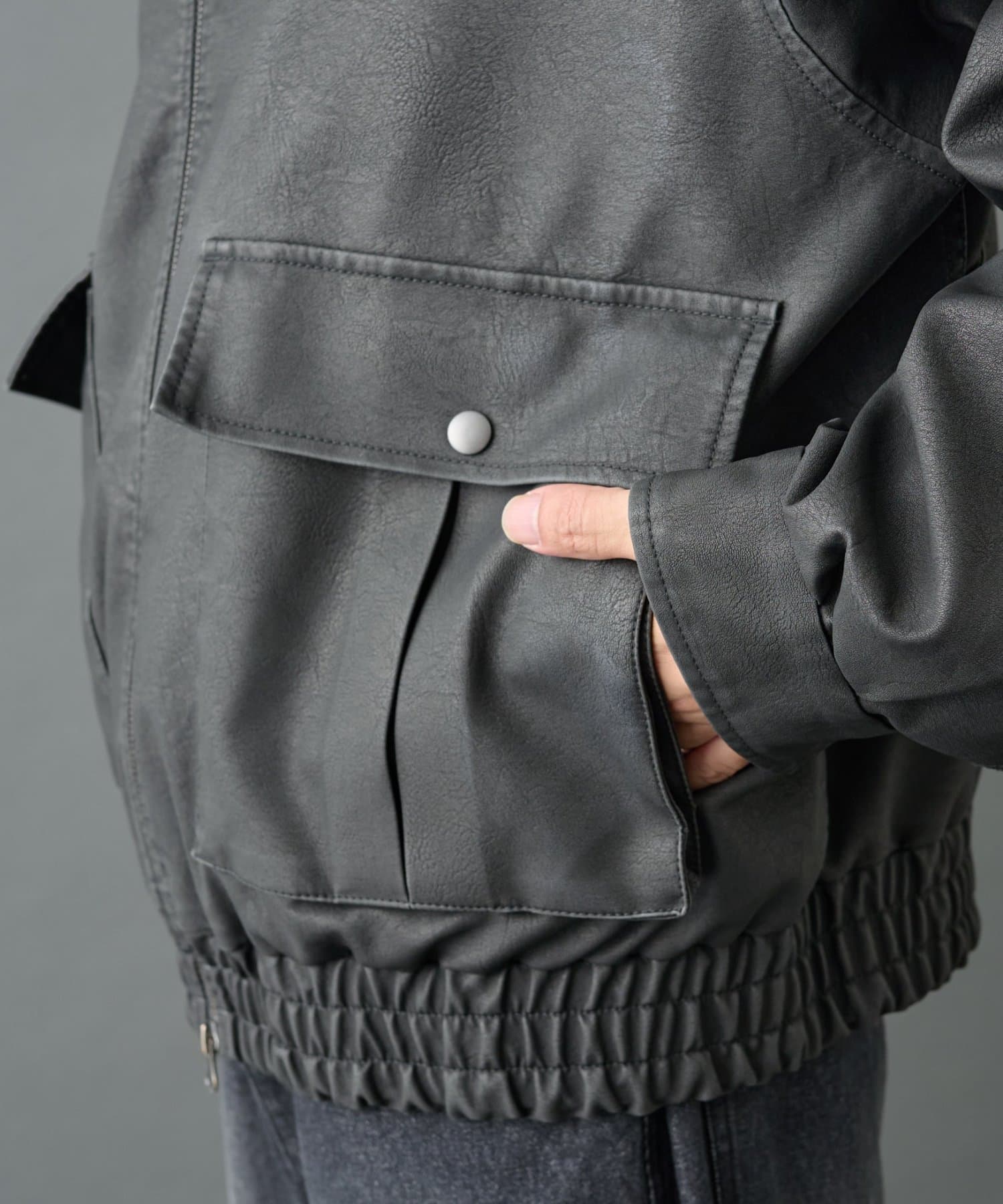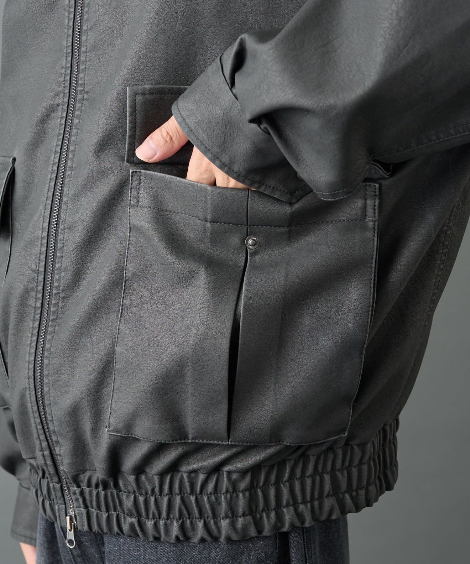 【レザーのような艶と、使い込んだようなフェード感が特徴。フェイクレザーG-1ジャケット】
