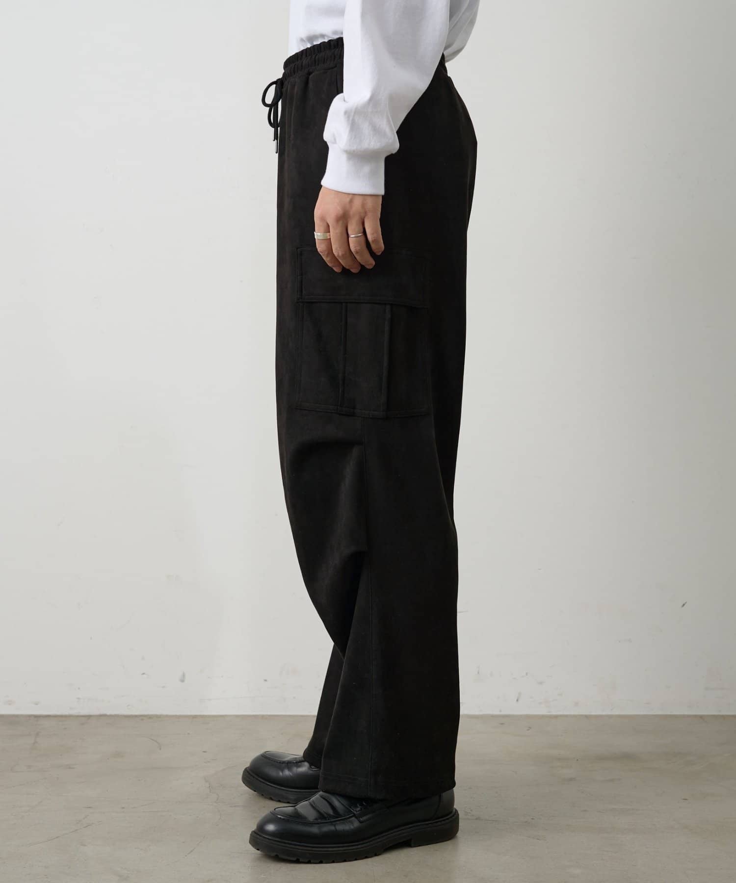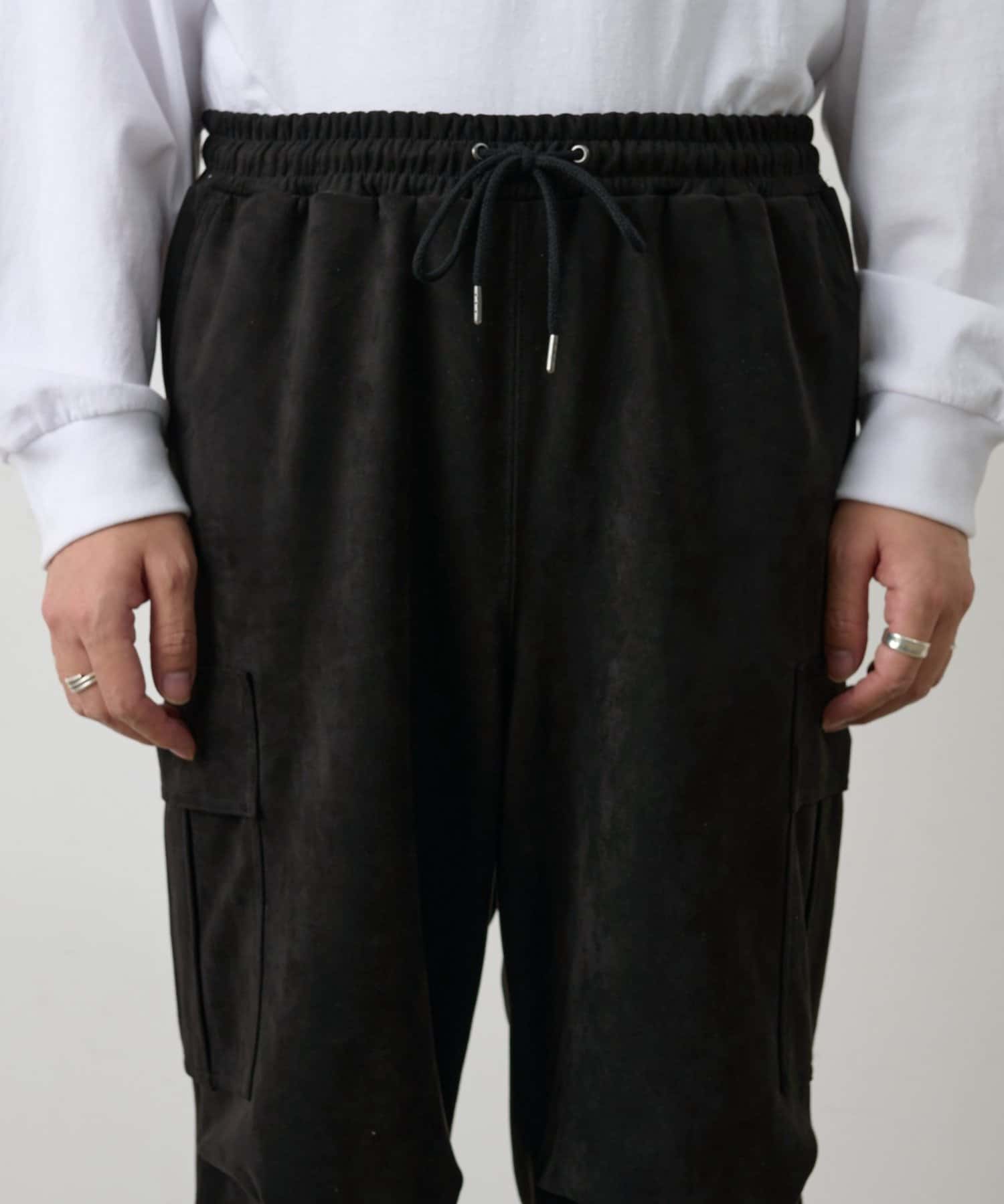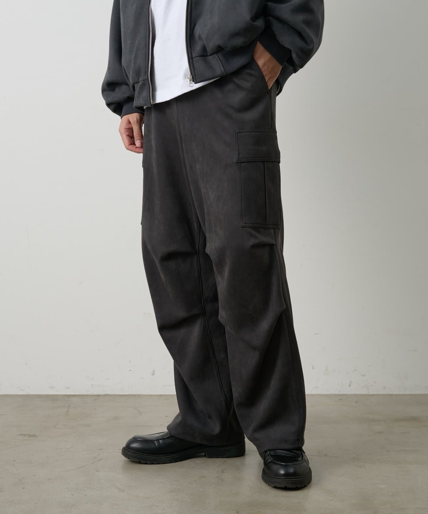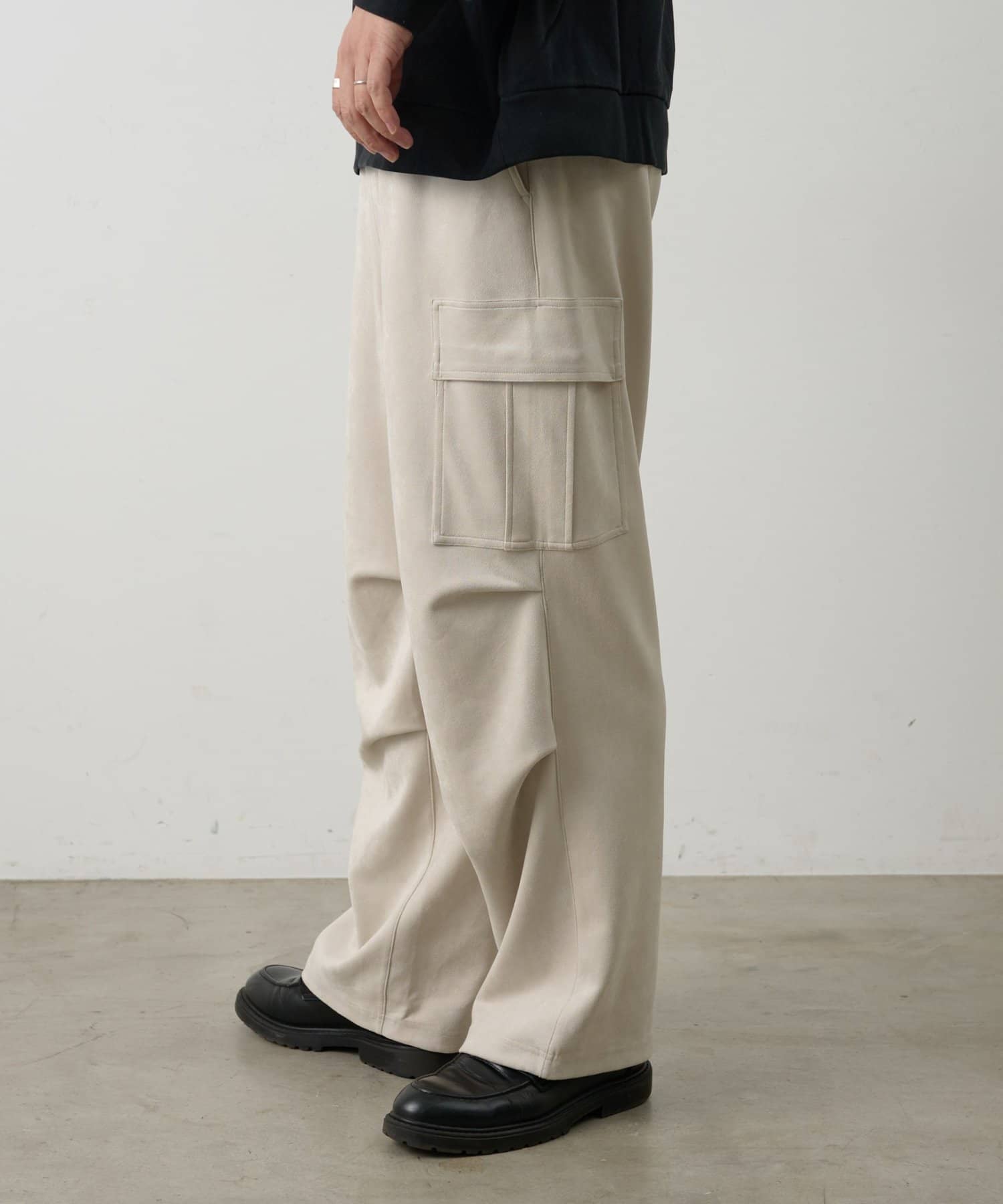 なめらかな起毛感が特徴のシンセティックスエード素材を使用した上品に穿けるカーゴパンツです。