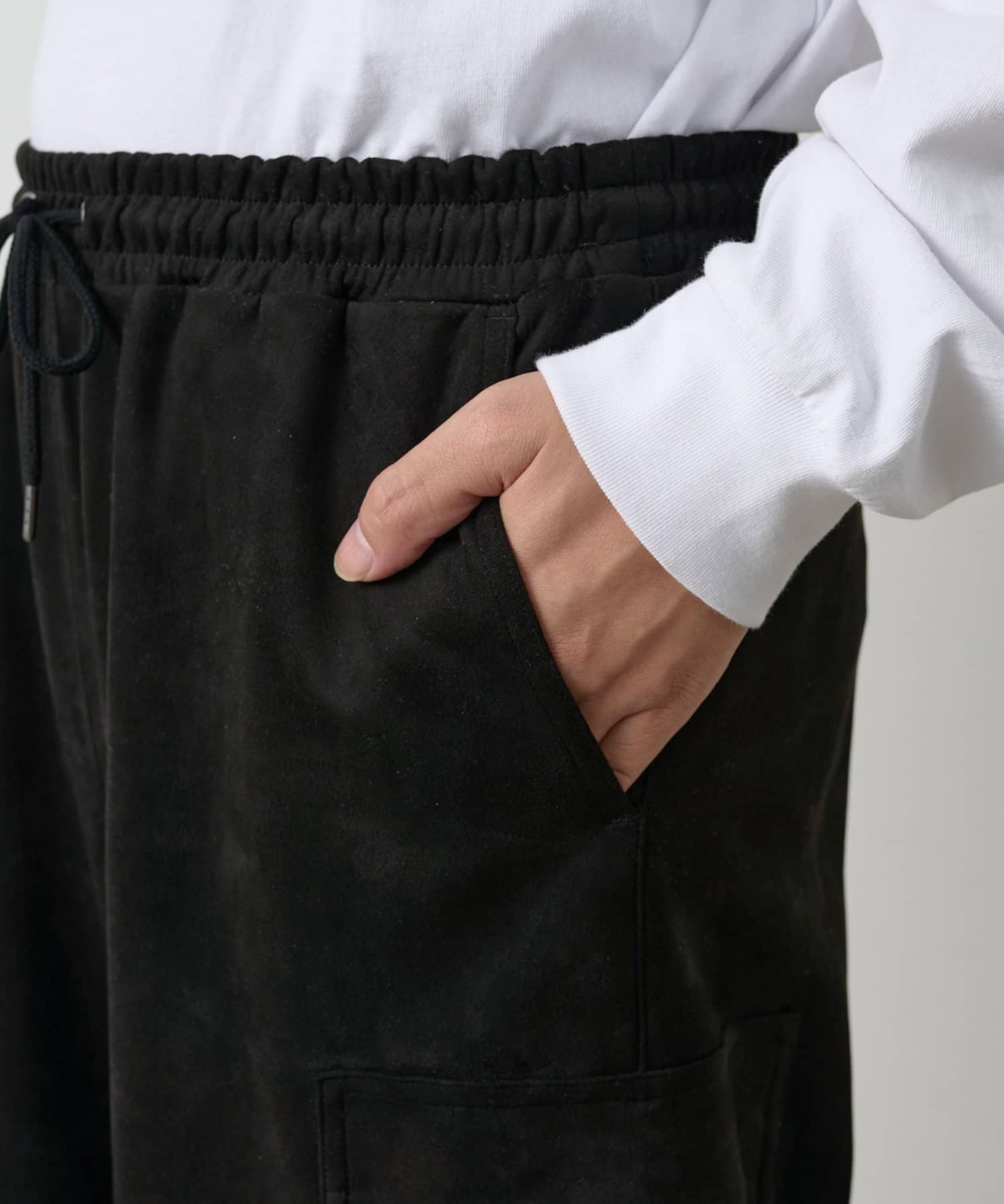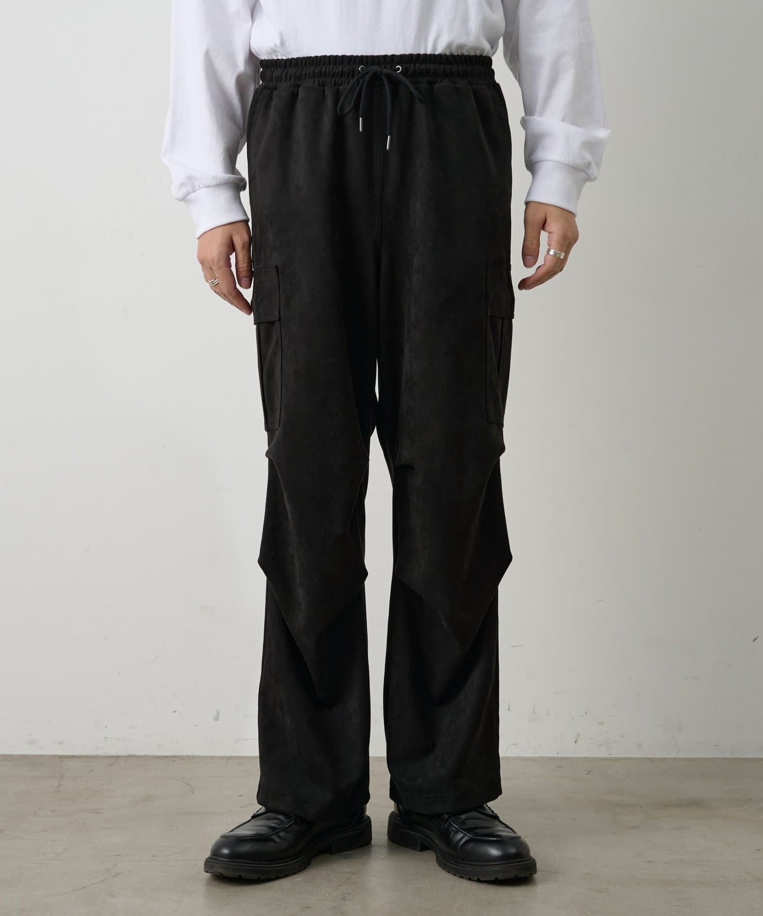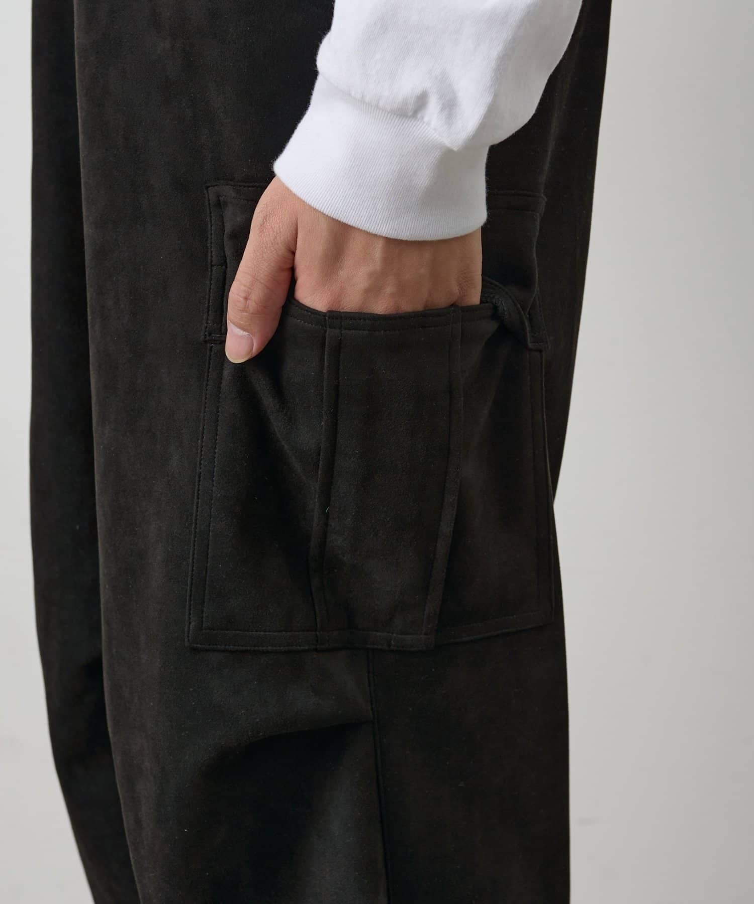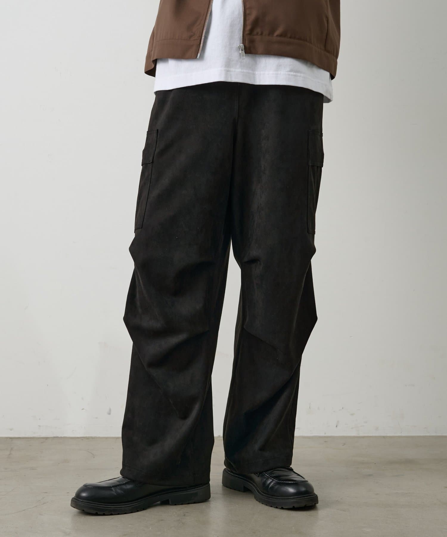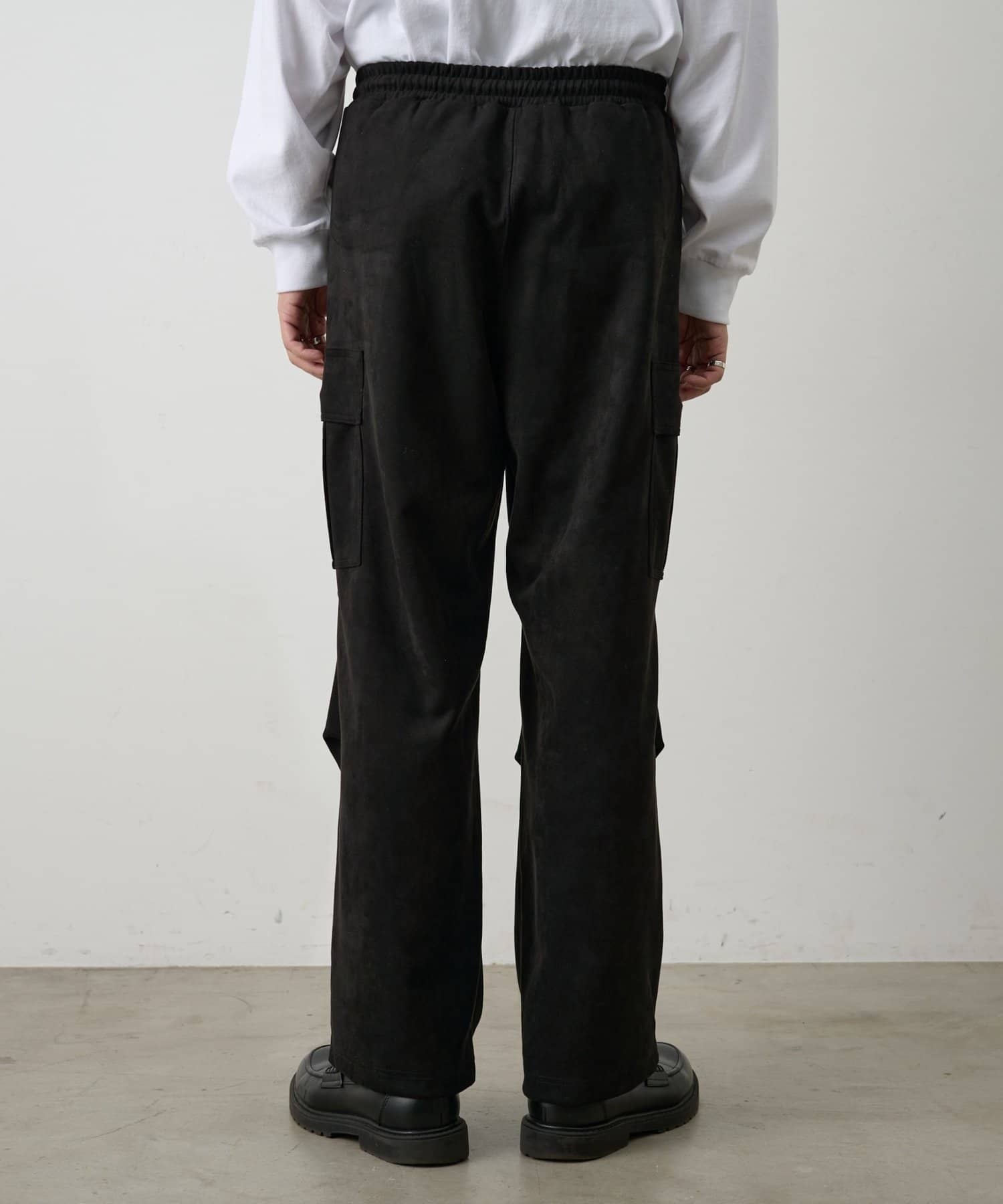 なめらかな起毛感が特徴のシンセティックスエード素材を使用した上品に穿けるカーゴパンツです。