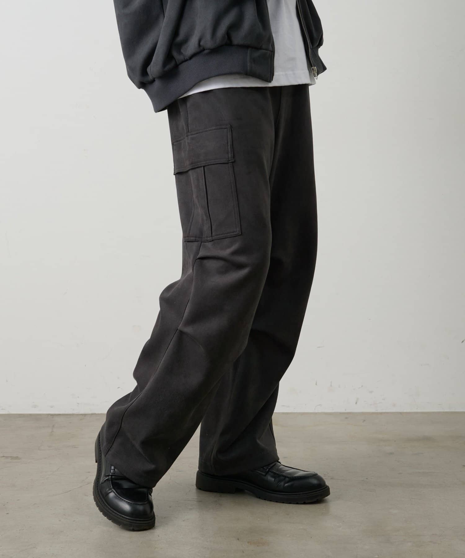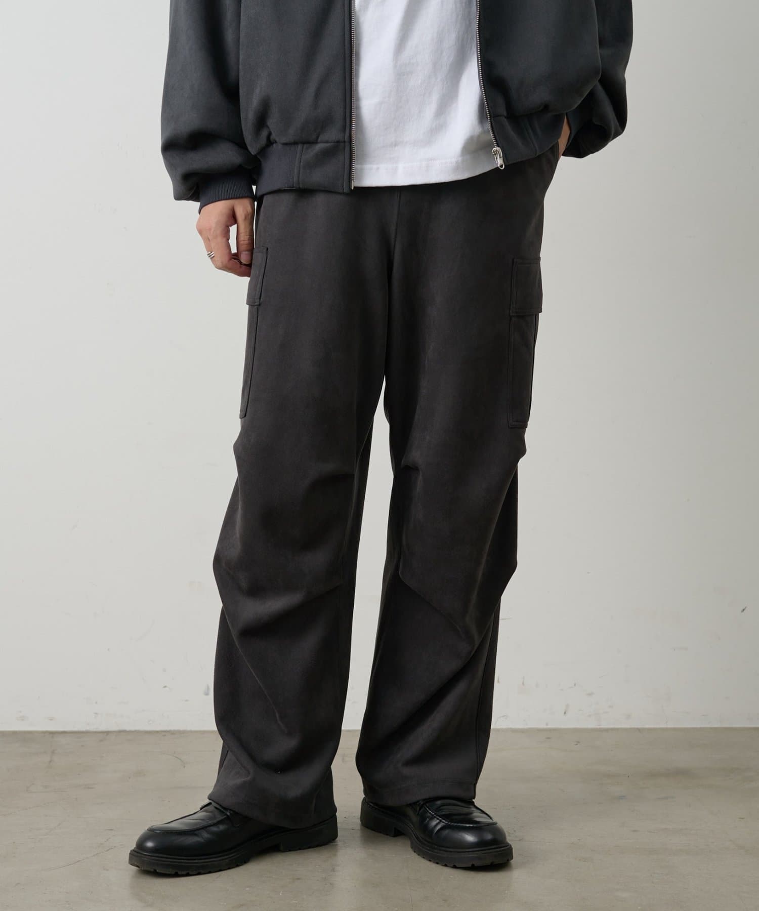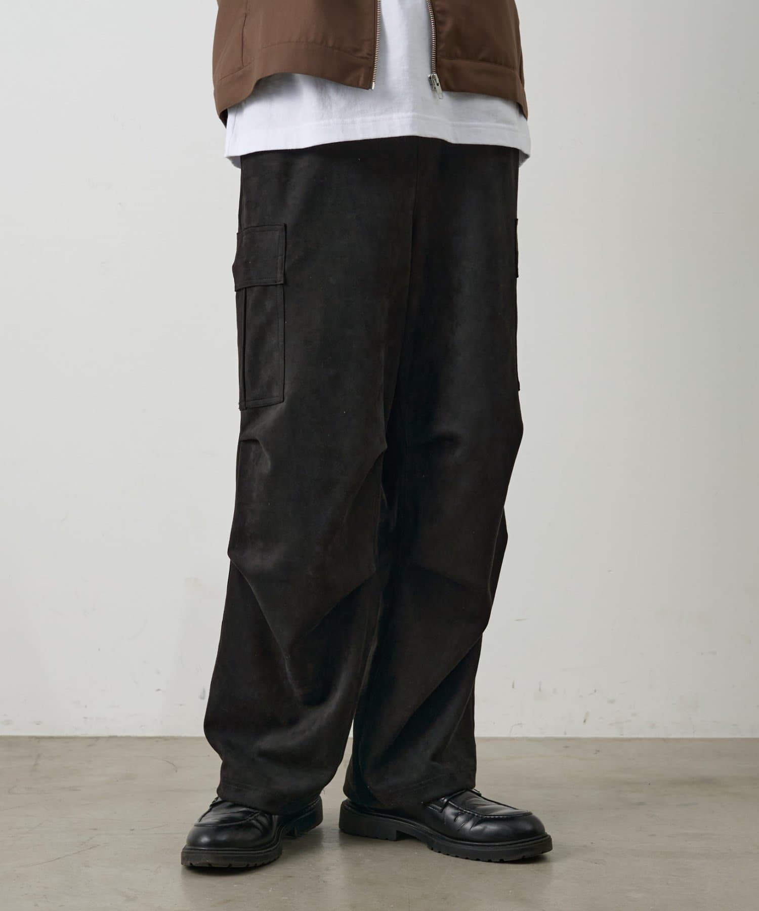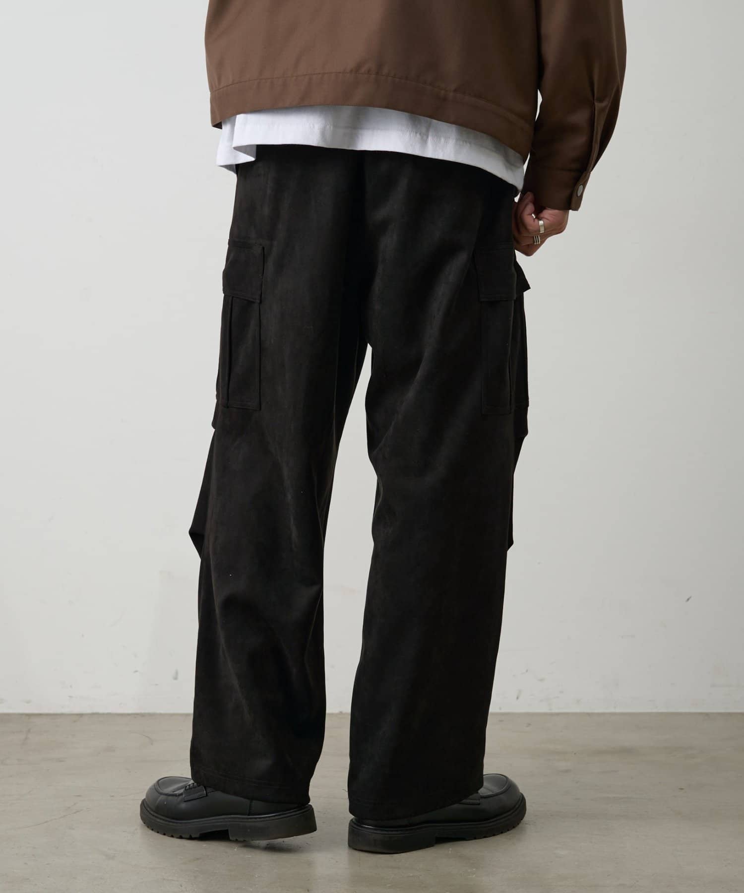 ミリタリー由来のカーゴデザインを柔らかなスエード調素材で仕上げることで、カジュアルさと上品さを取り入れられるアイテムになっています。