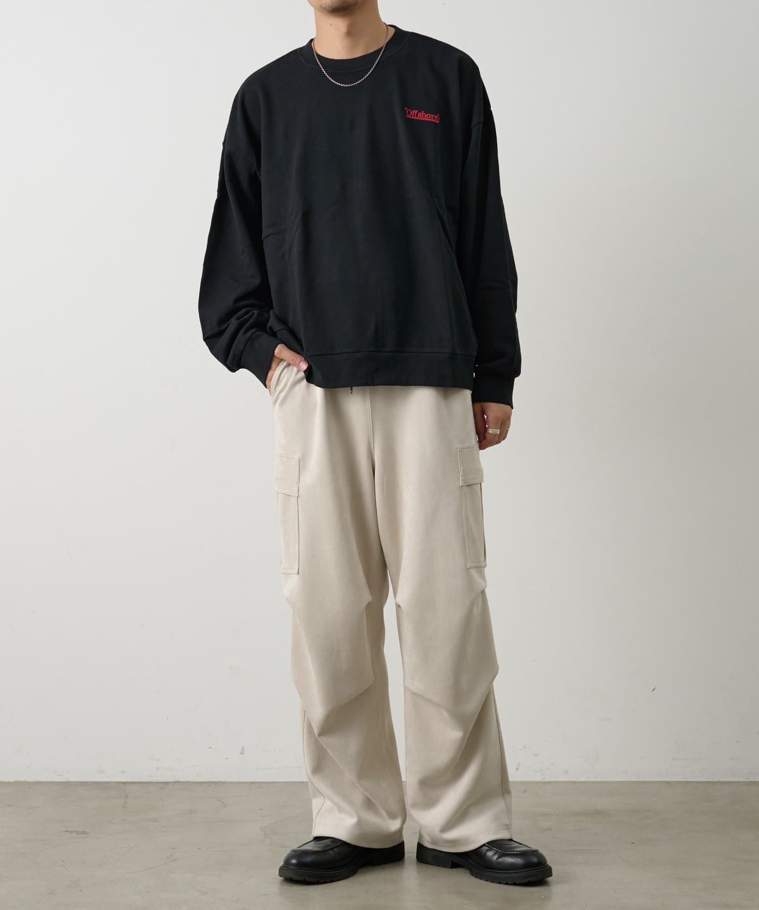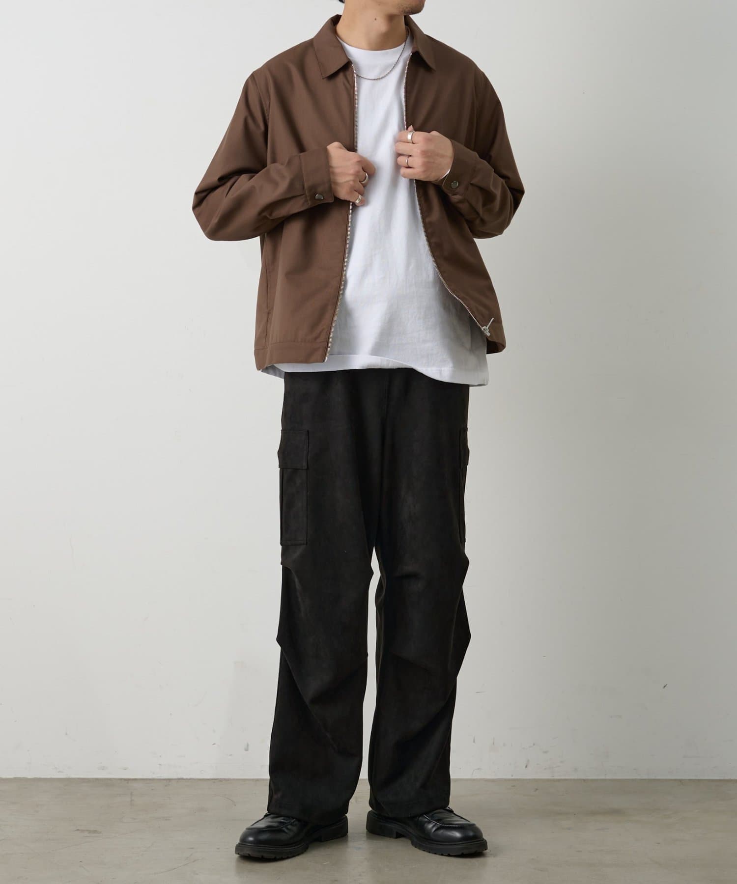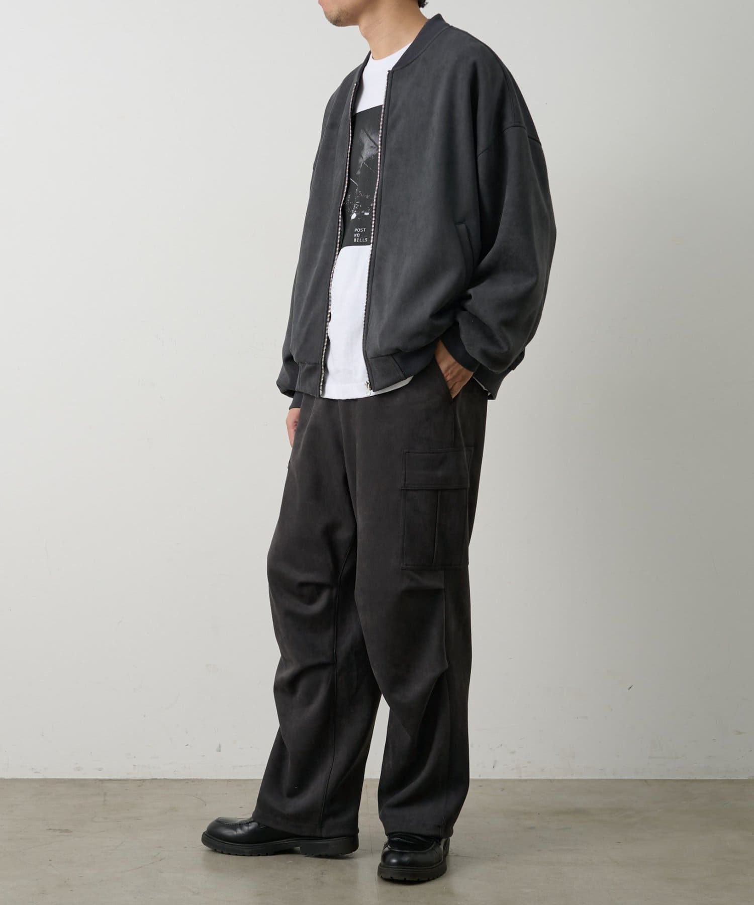 ミリタリー由来のカーゴデザインを柔らかなスエード調素材で仕上げることで、カジュアルさと上品さを取り入れられるアイテムになっています。