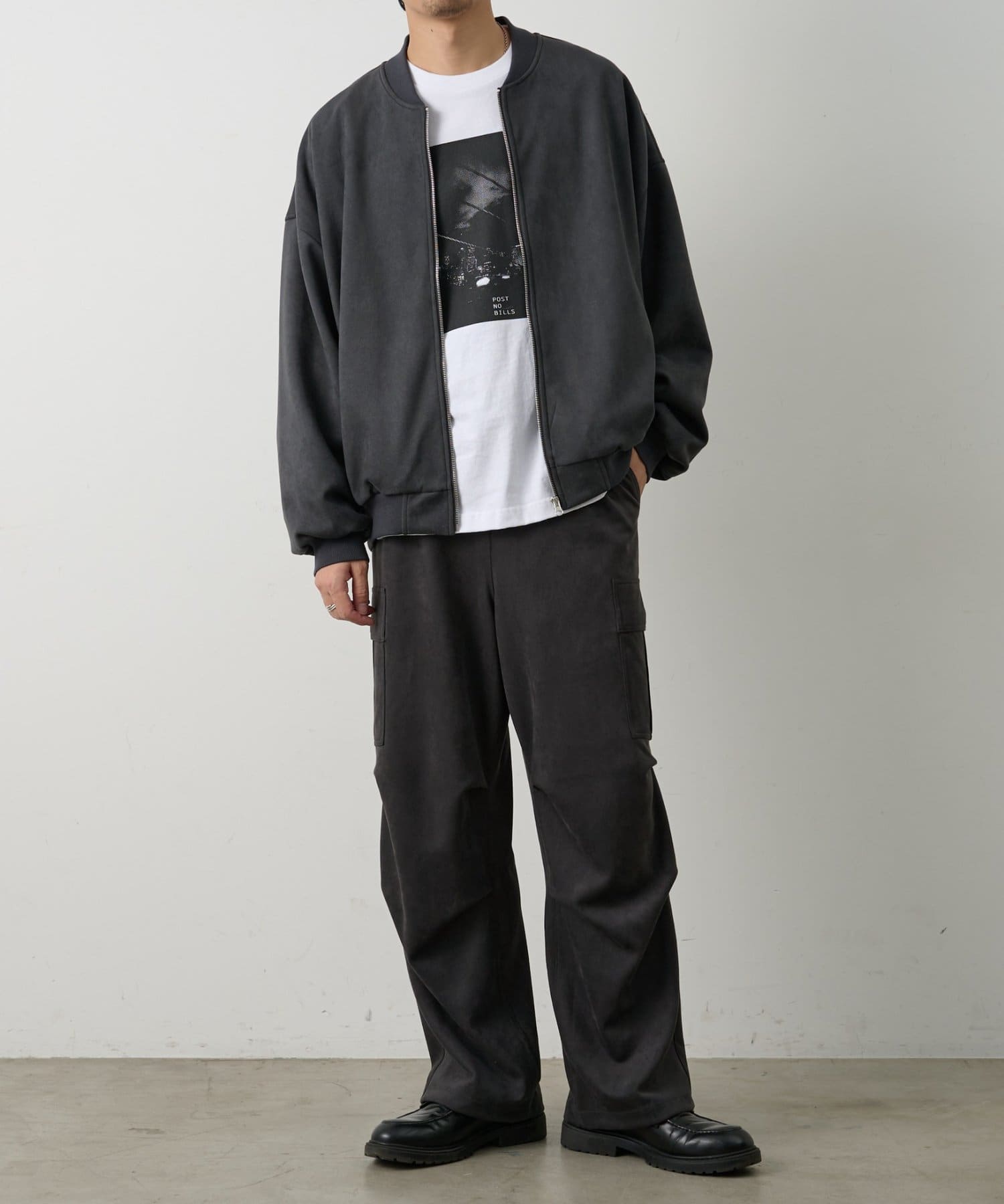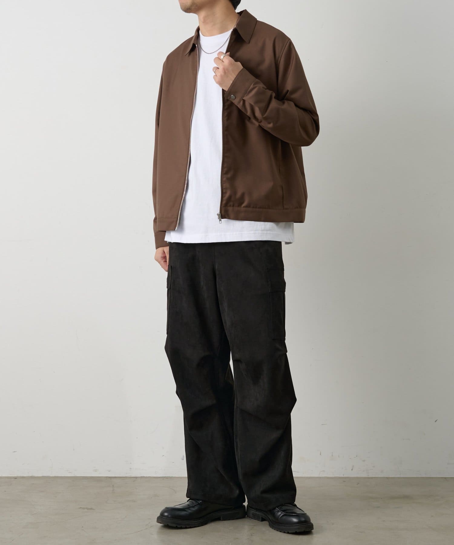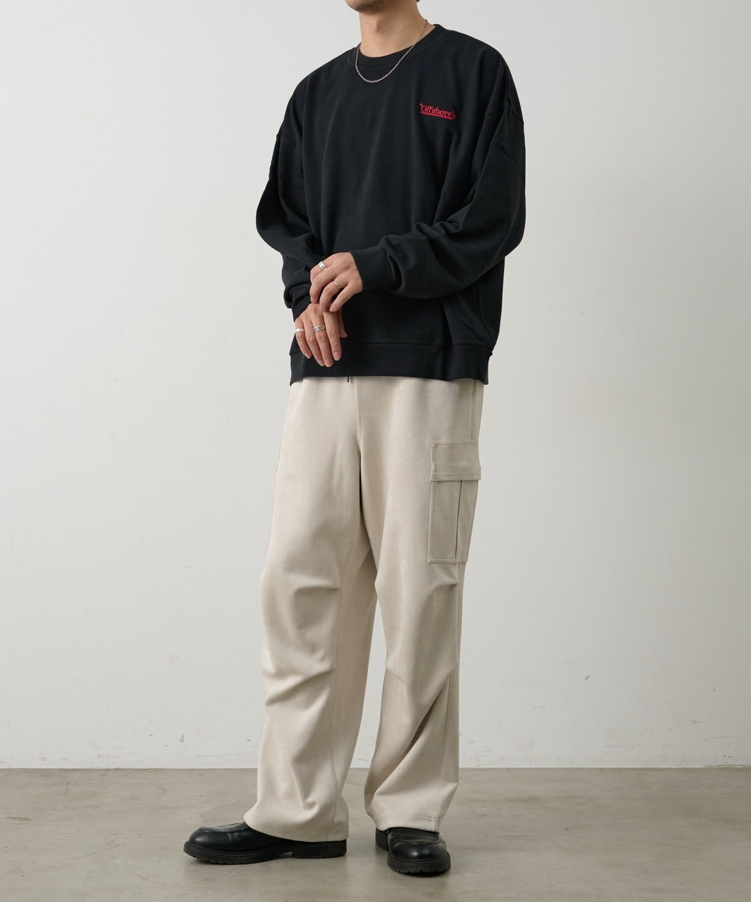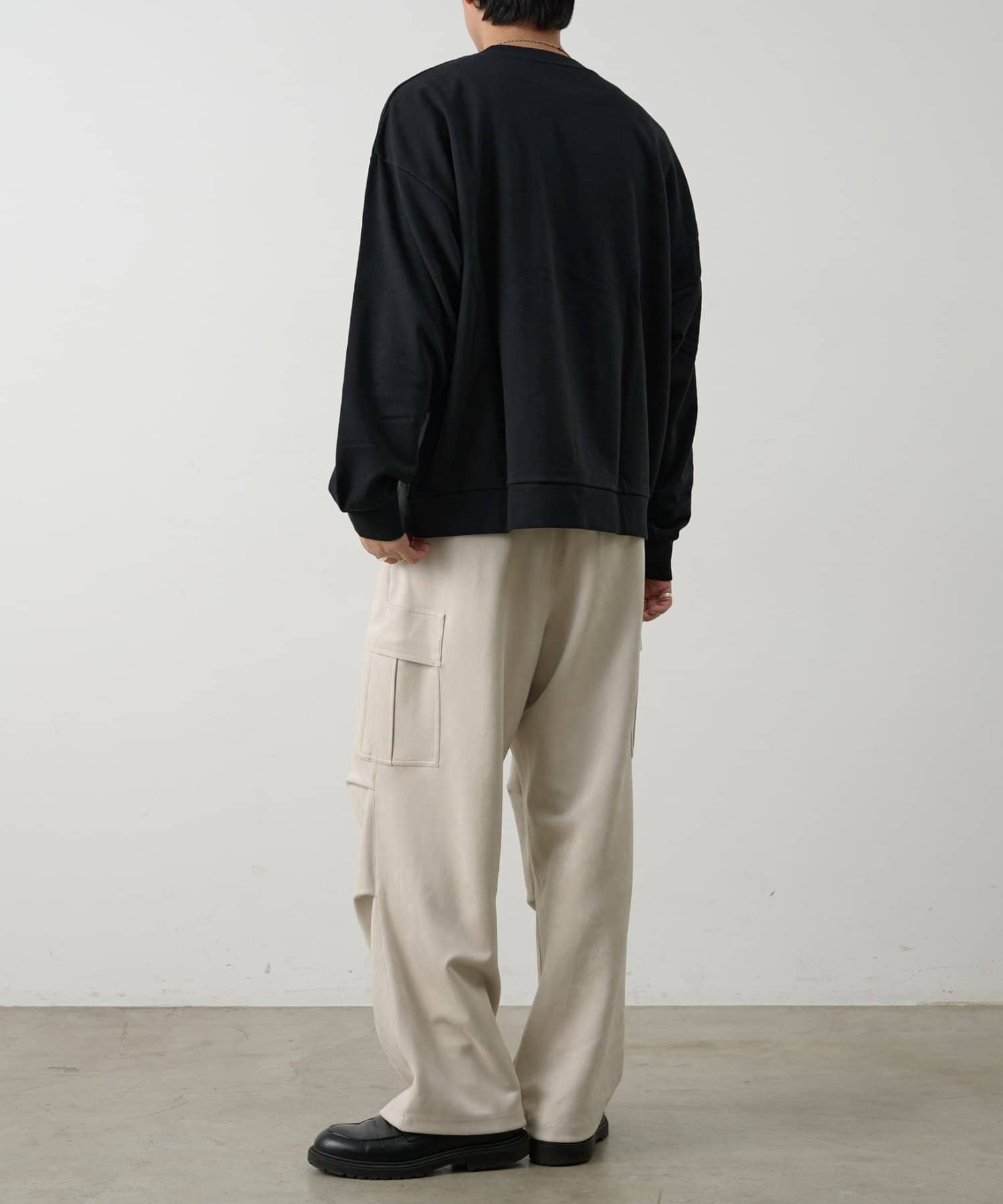 ミリタリー由来のカーゴデザインを柔らかなスエード調素材で仕上げることで、カジュアルさと上品さを取り入れられるアイテムになっています。
