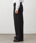 フロントのタックが腰まわりに程よいゆとりを生み、ワイドシルエットでもすっきりとした印象に◎