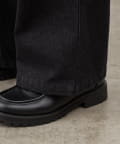 デニム素材でありながらスラックス仕立てのきれいな落ち感と立体感を備え、カジュアルすぎない大人の一本に仕上げました。