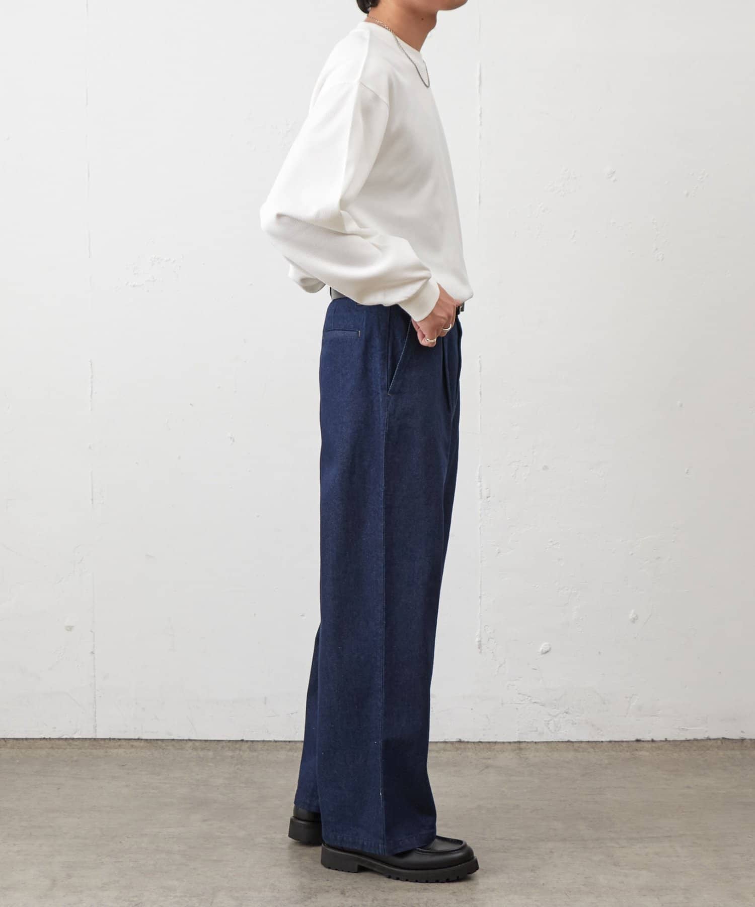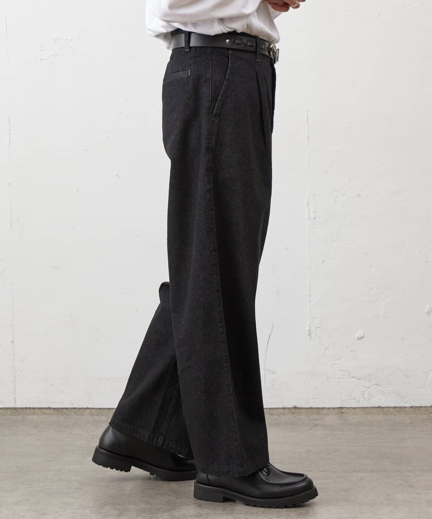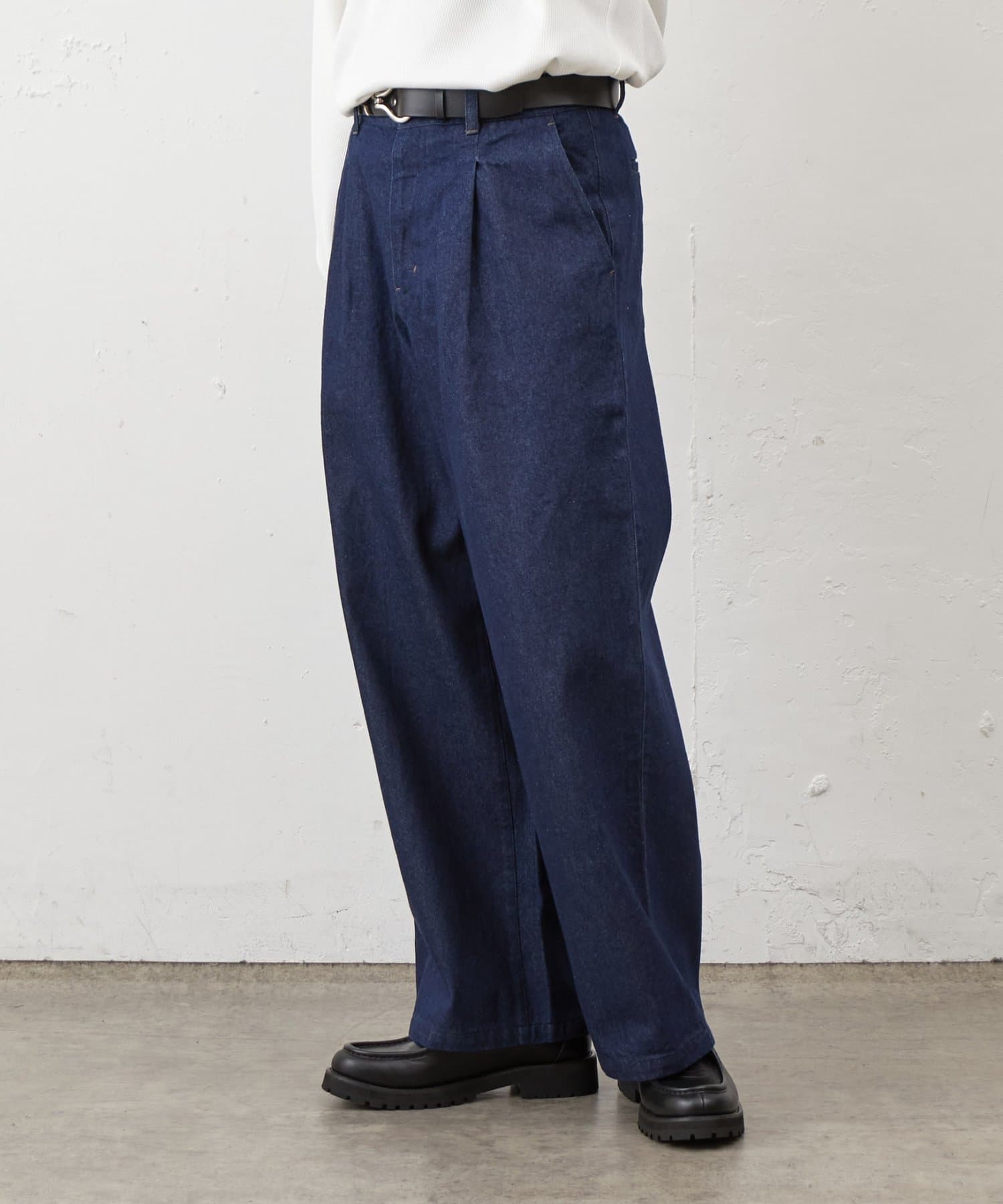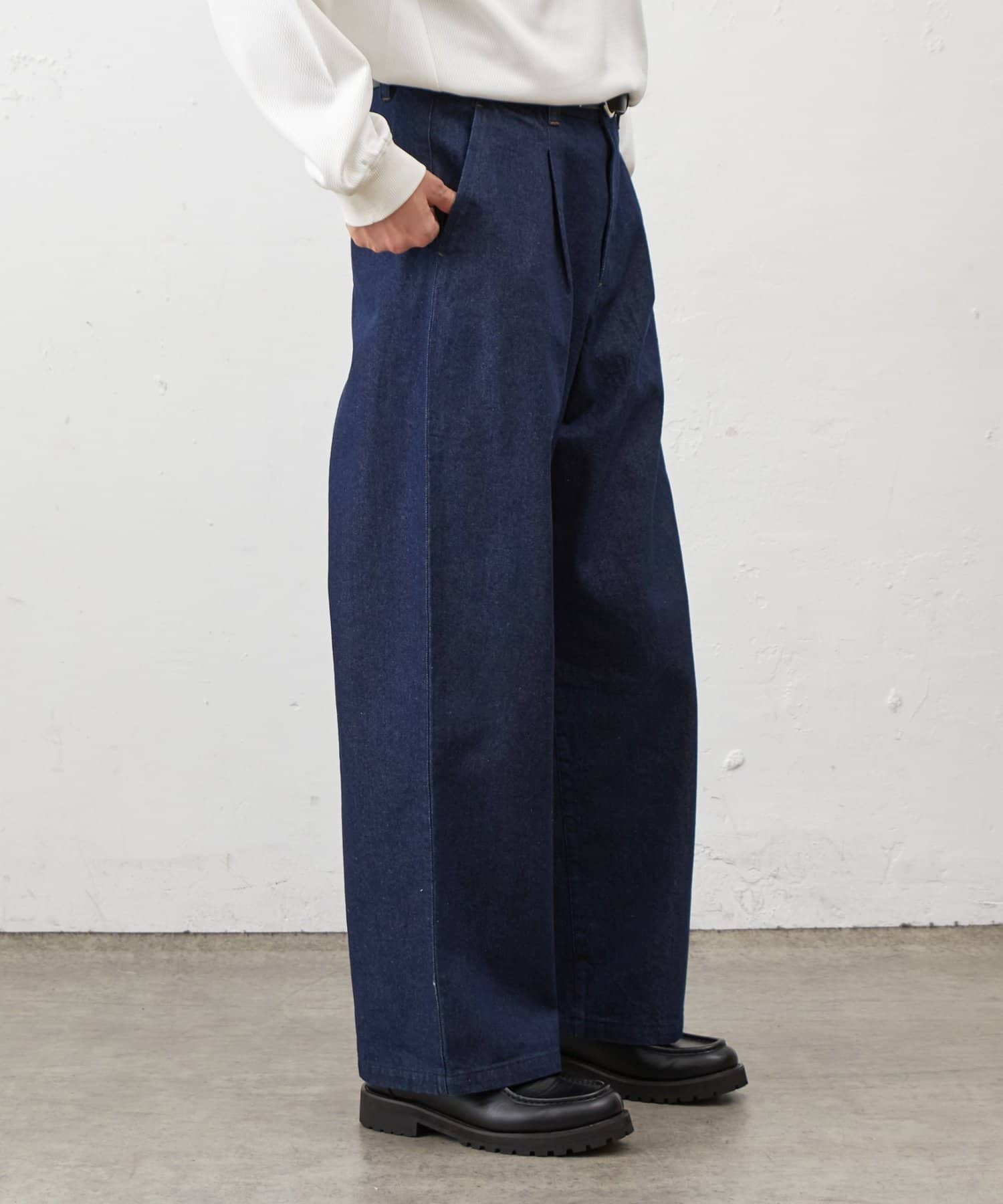自然なムラ感が特徴のナチュラルスラブデニムを使用したタック入りのワイドスラックスです。