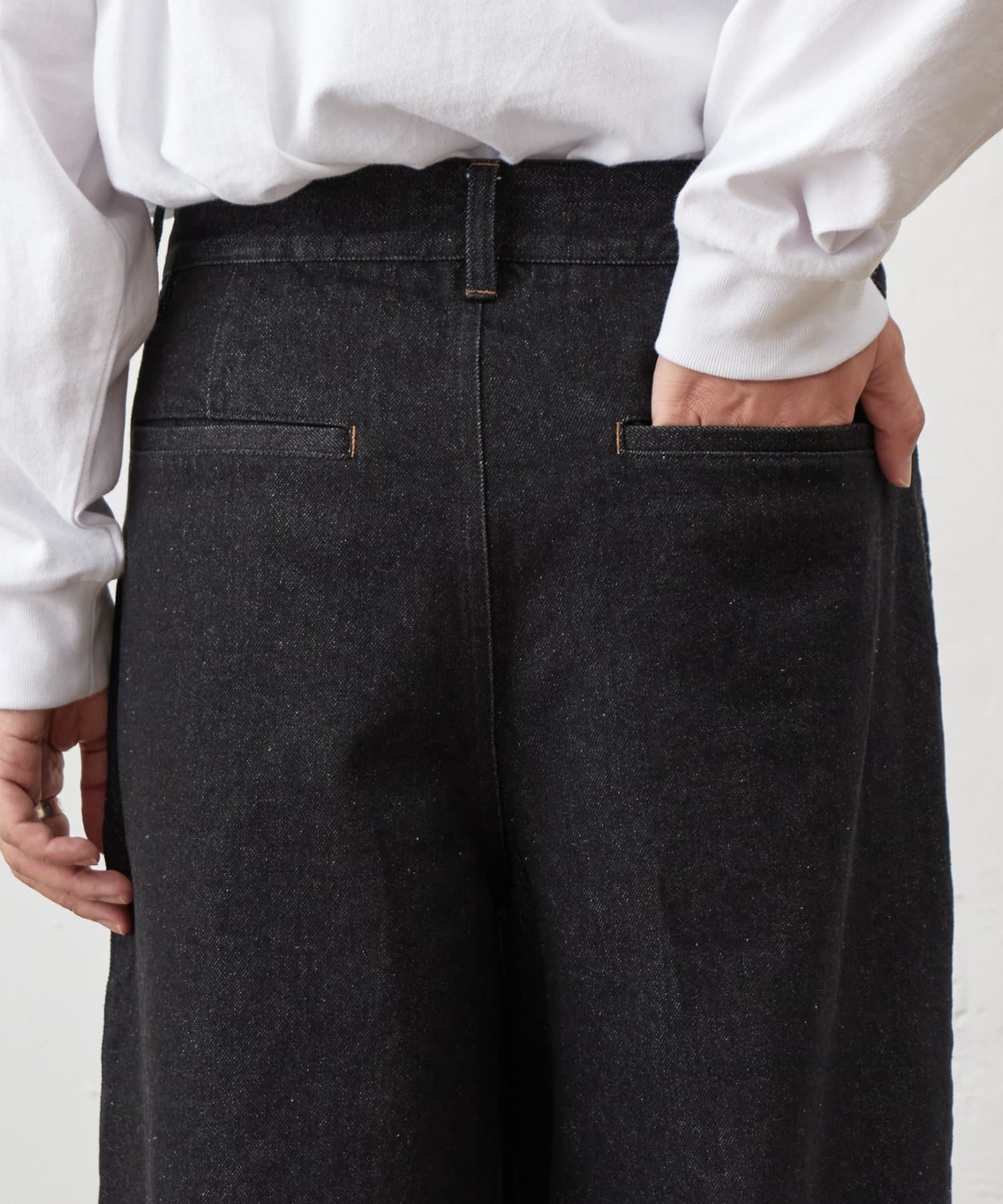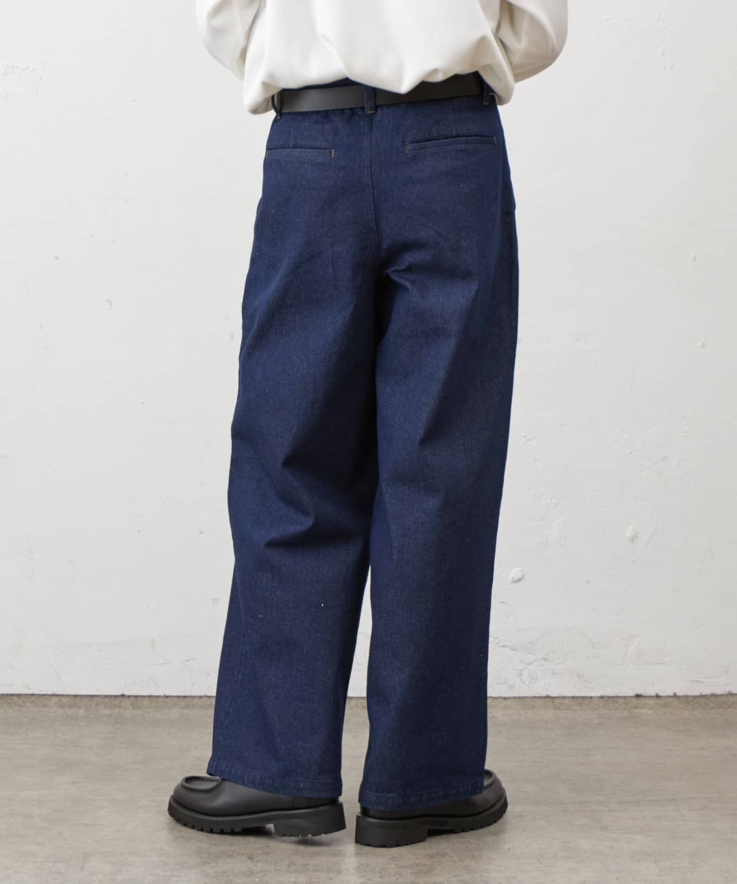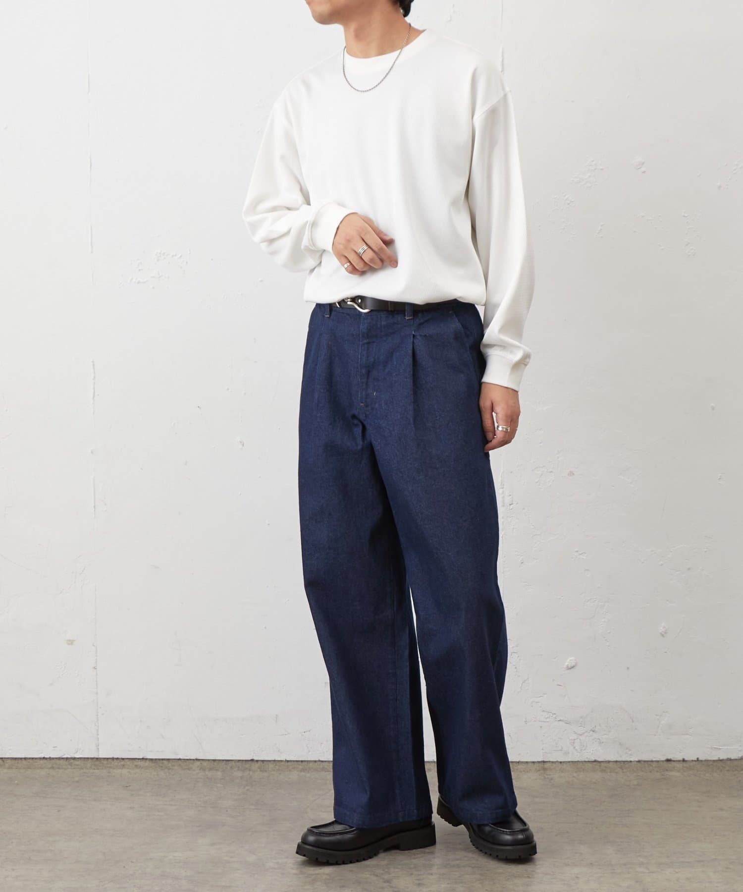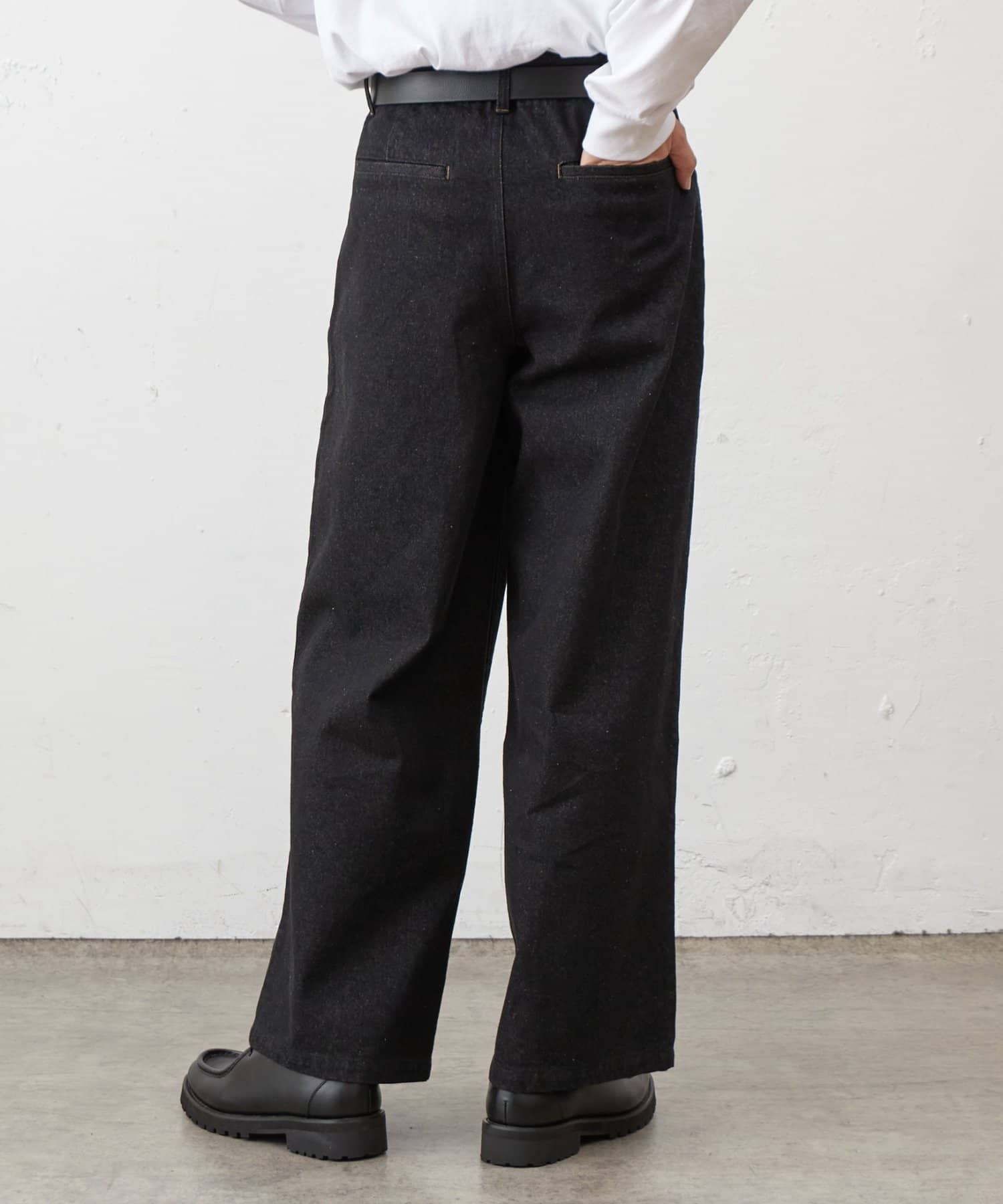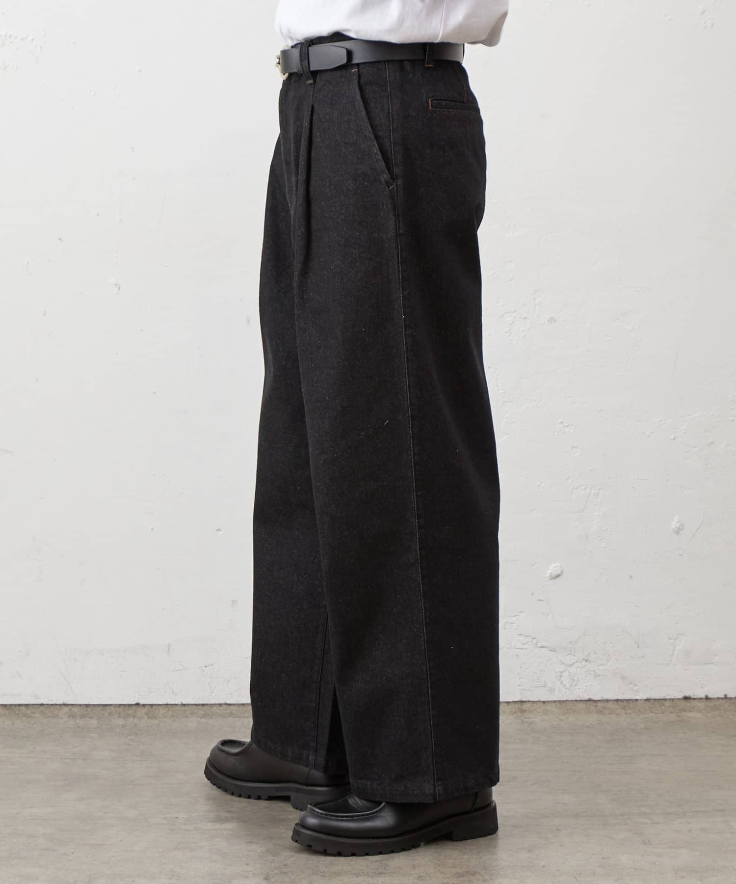自然なムラ感が特徴のナチュラルスラブデニムを使用したタック入りのワイドスラックスです。