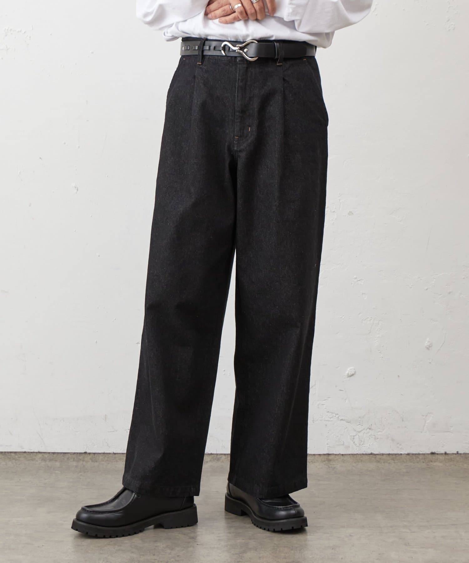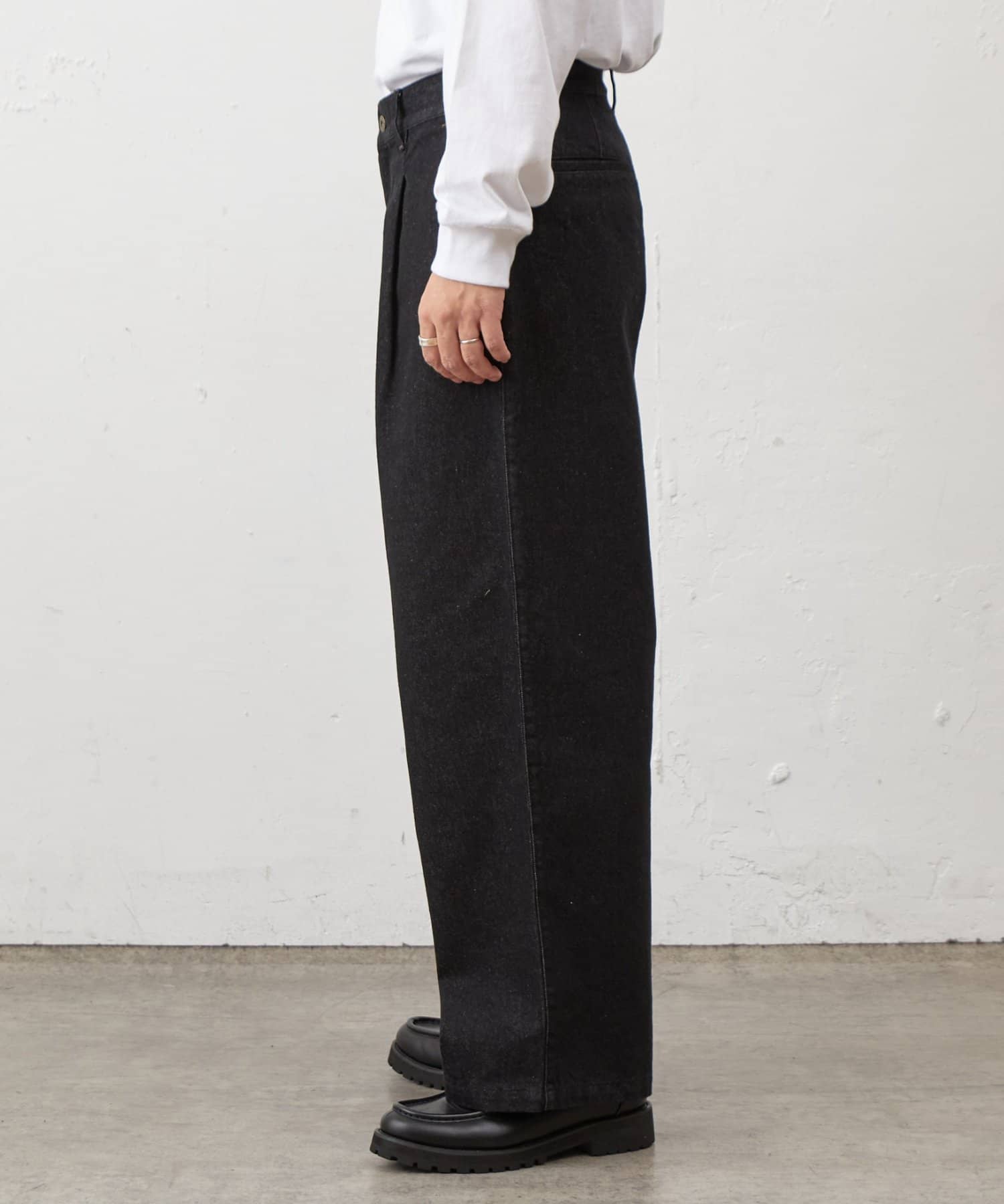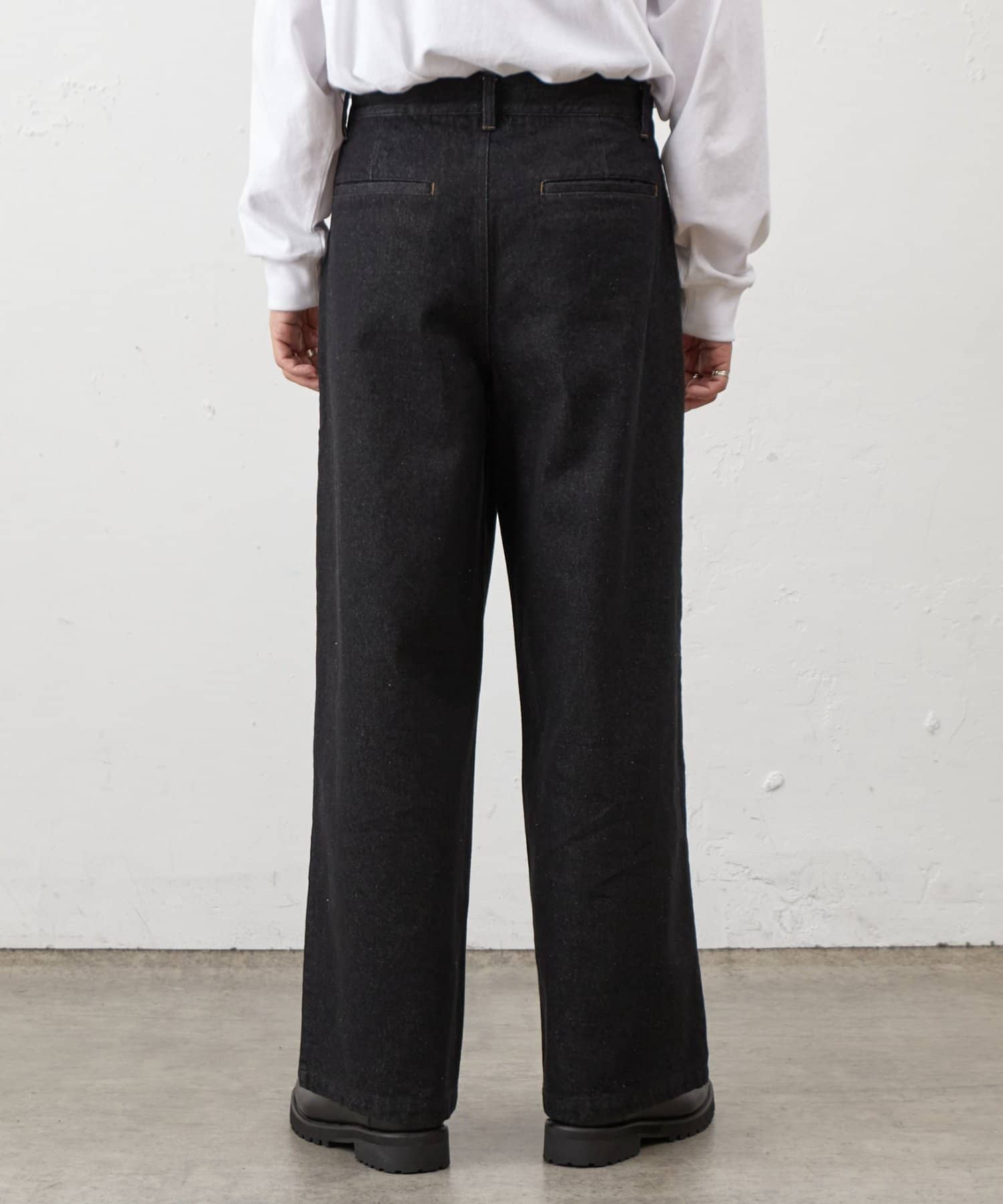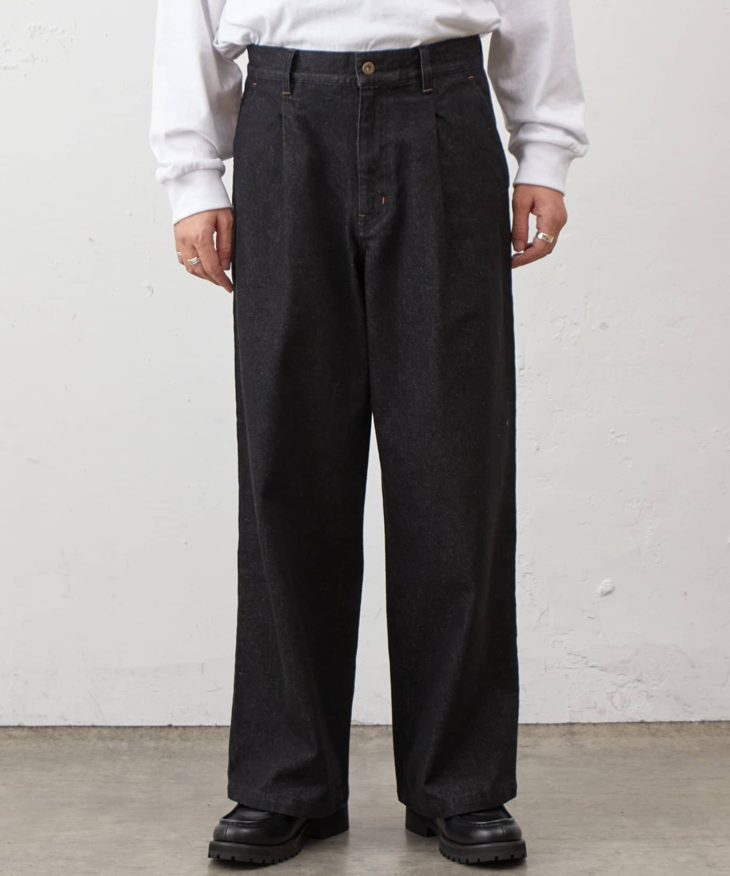 自然なムラ感が特徴のナチュラルスラブデニムを使用したタック入りのワイドスラックスです。