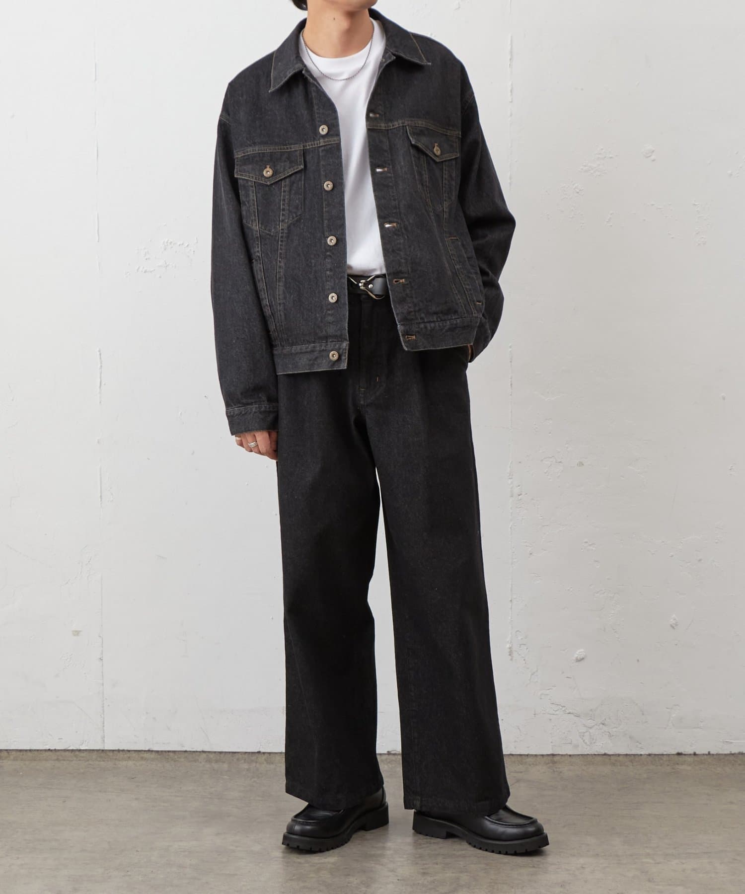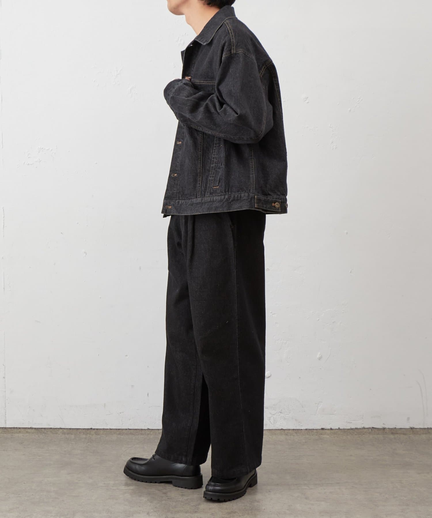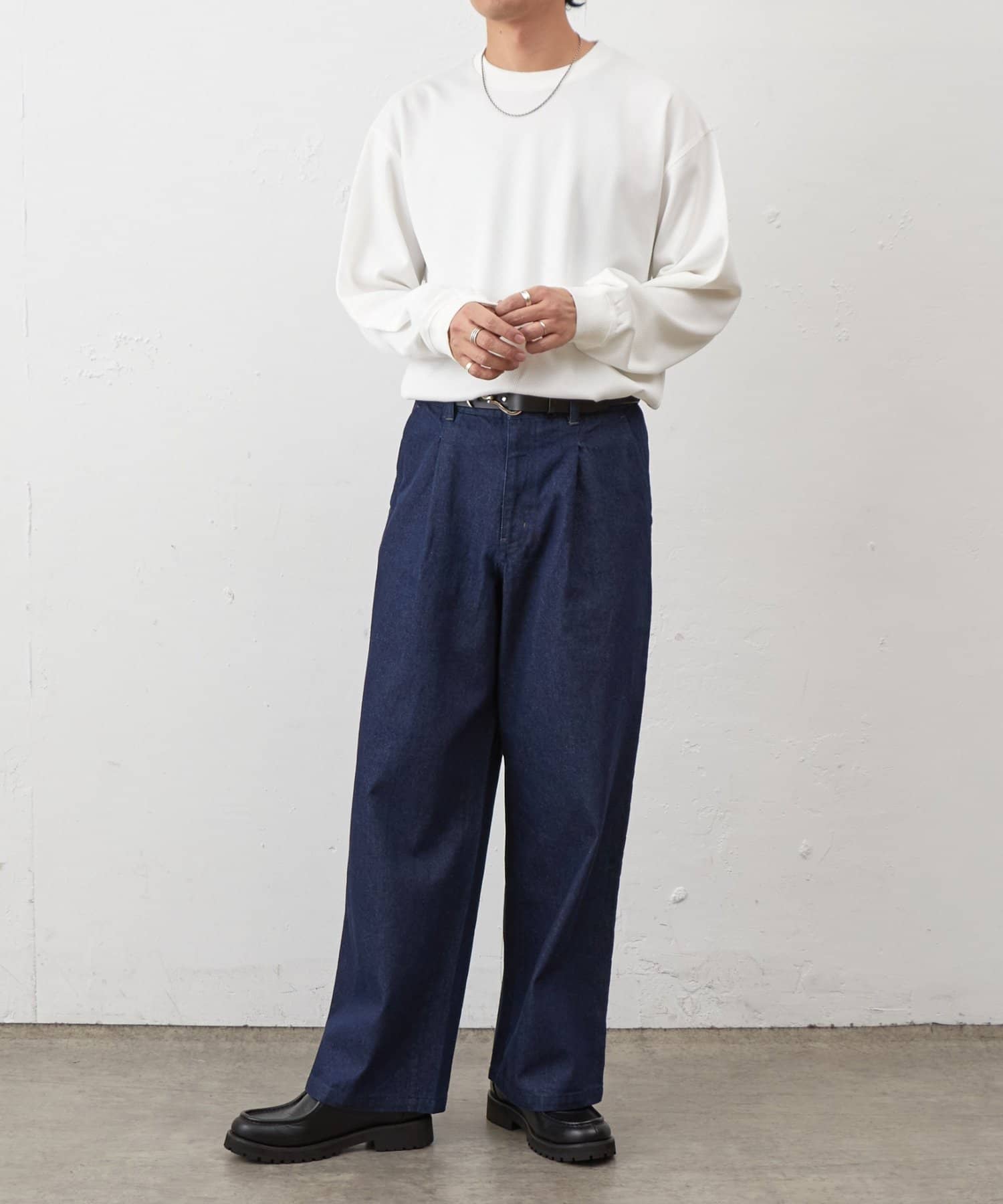 【セットアップ対応】ナチュラルスラブデニム1タックワイドスラックス