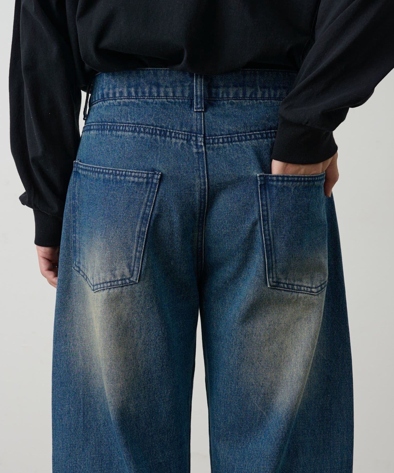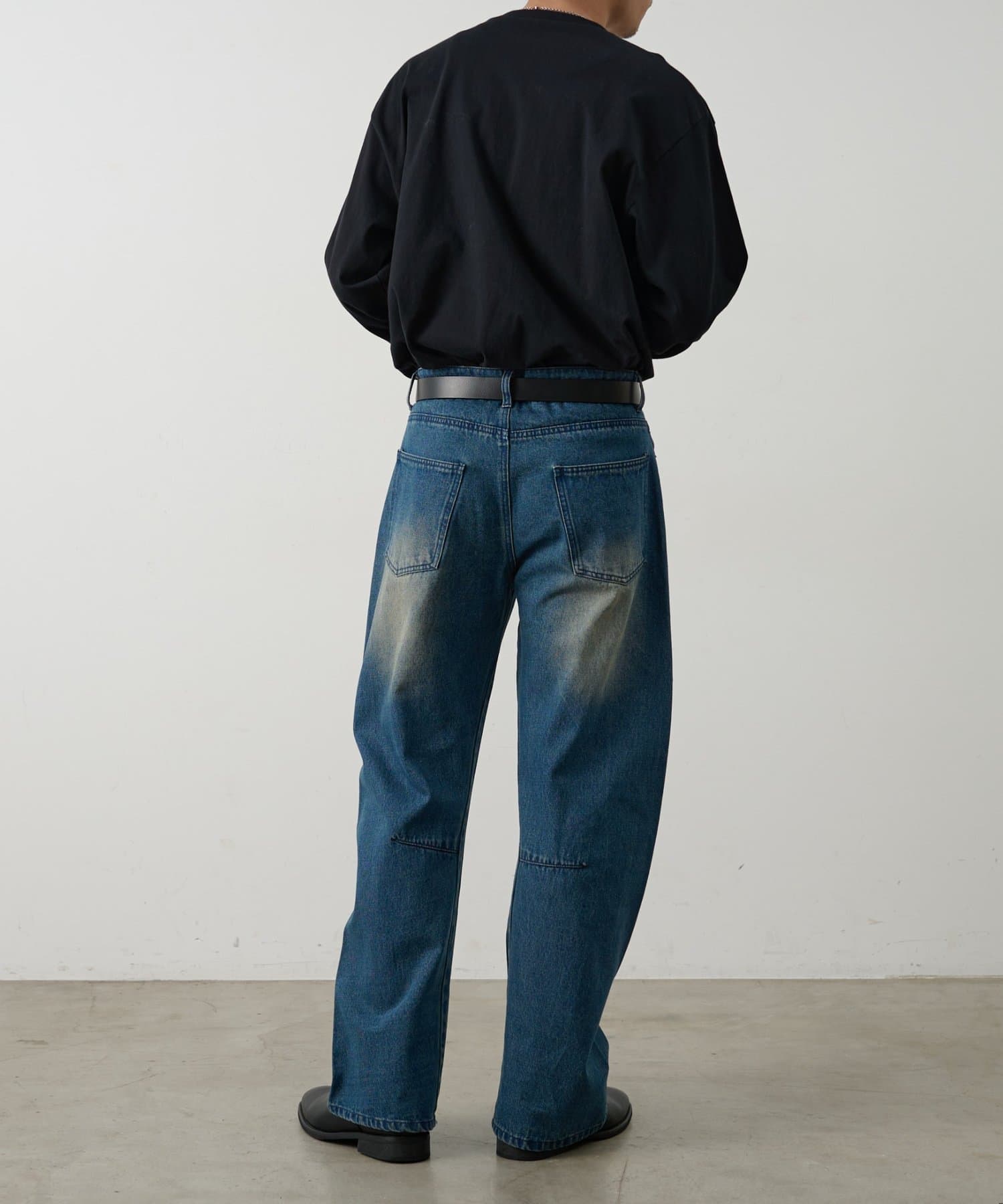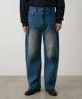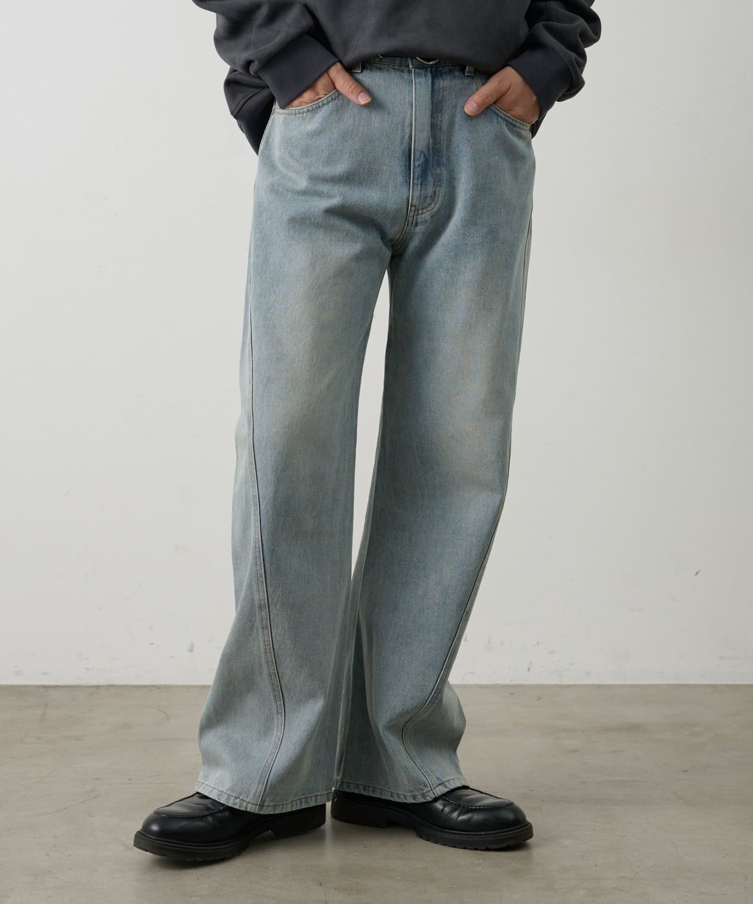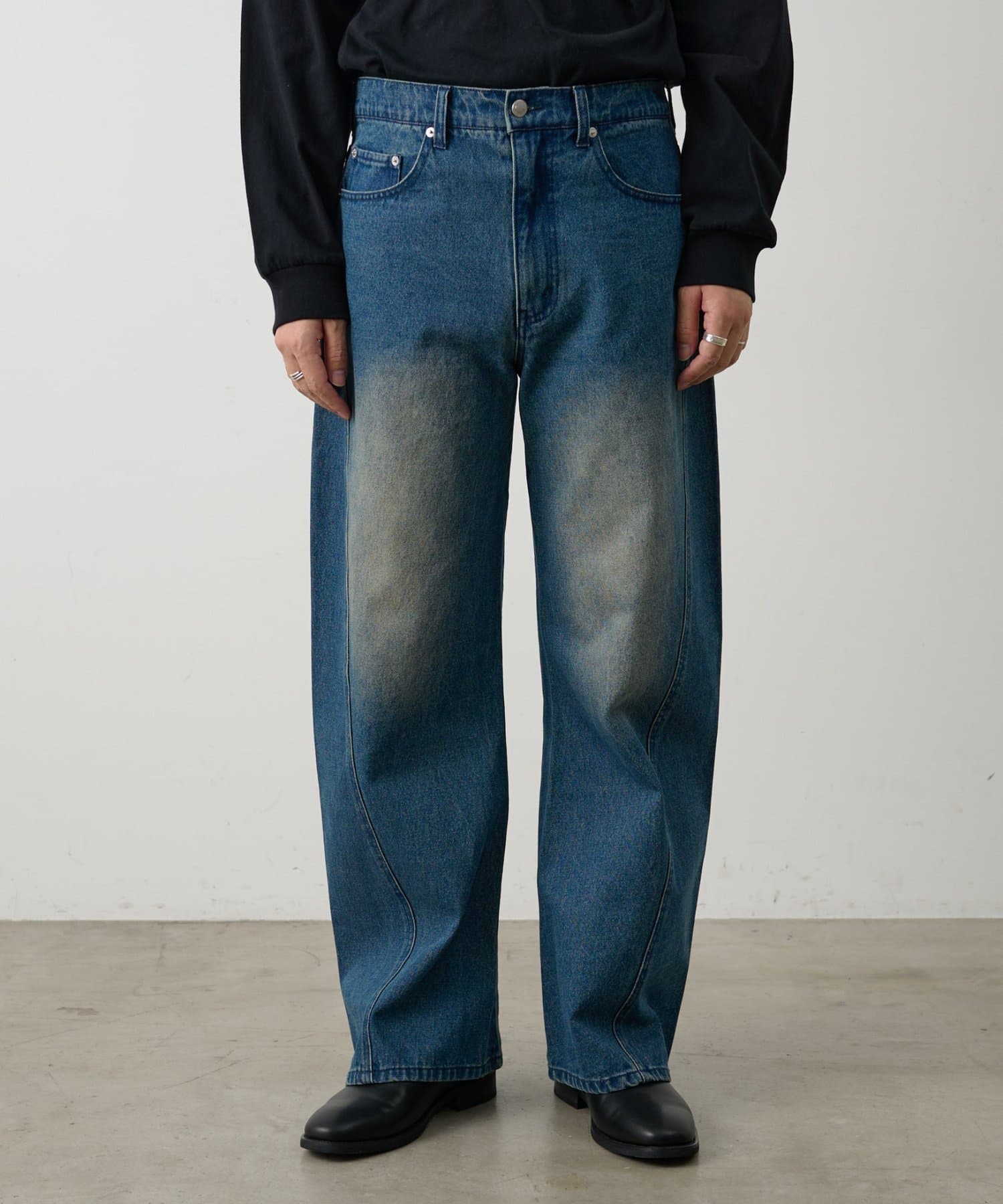 程よく色落ちさせたヴィンテージライクな風合いが魅力のカーブフレアデニムパンツです。
