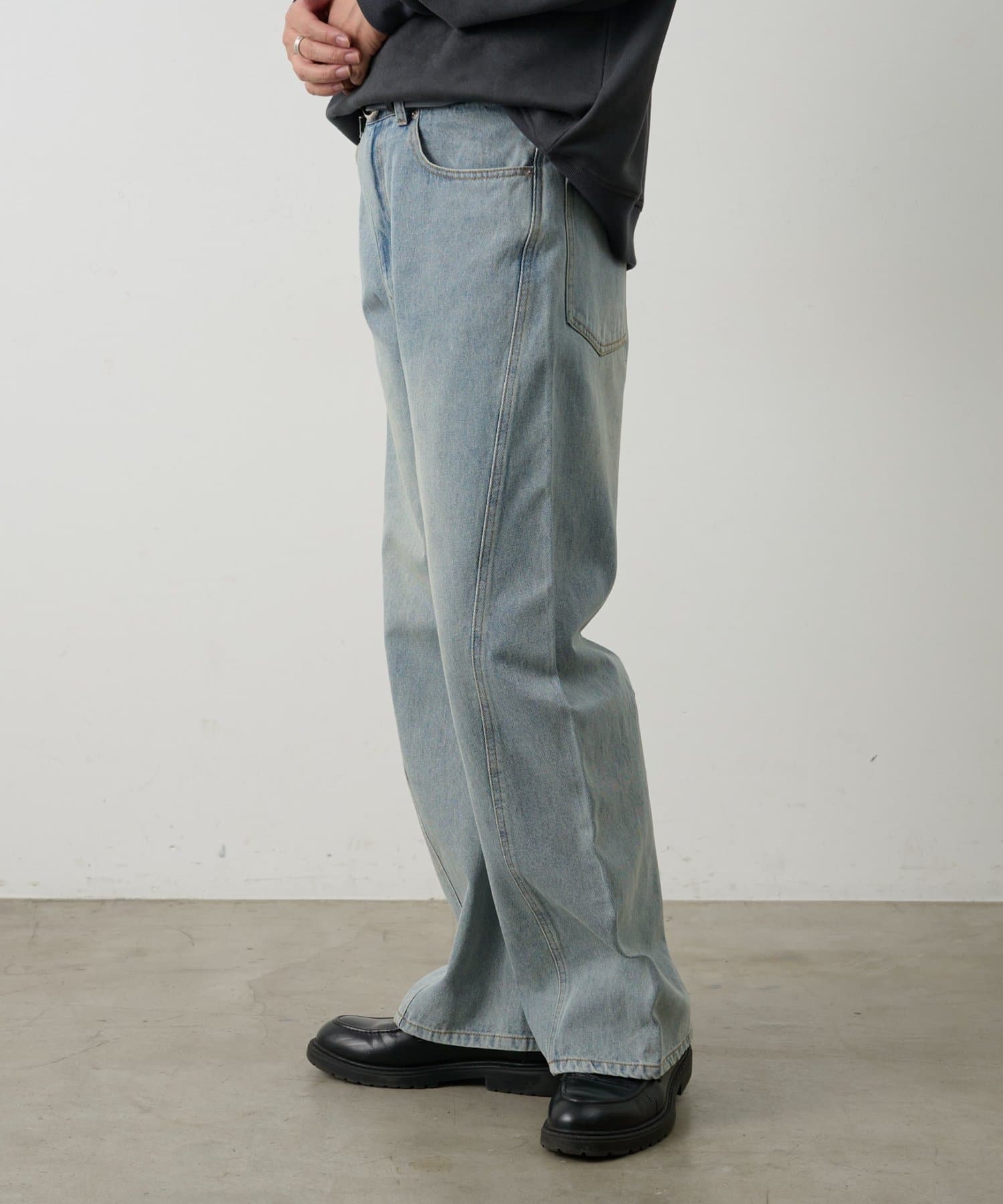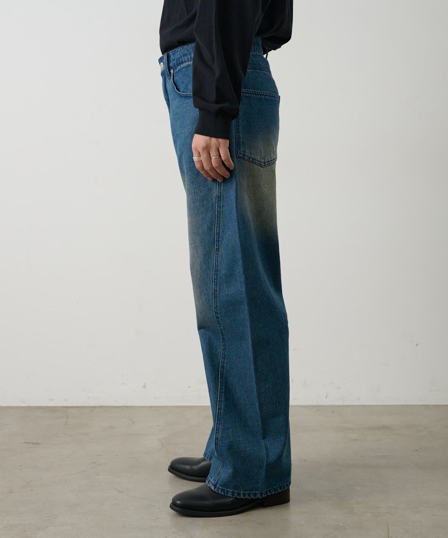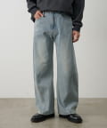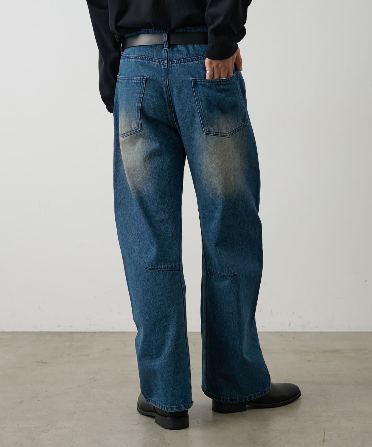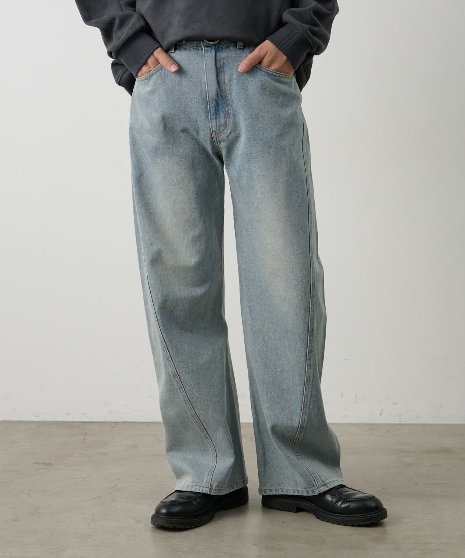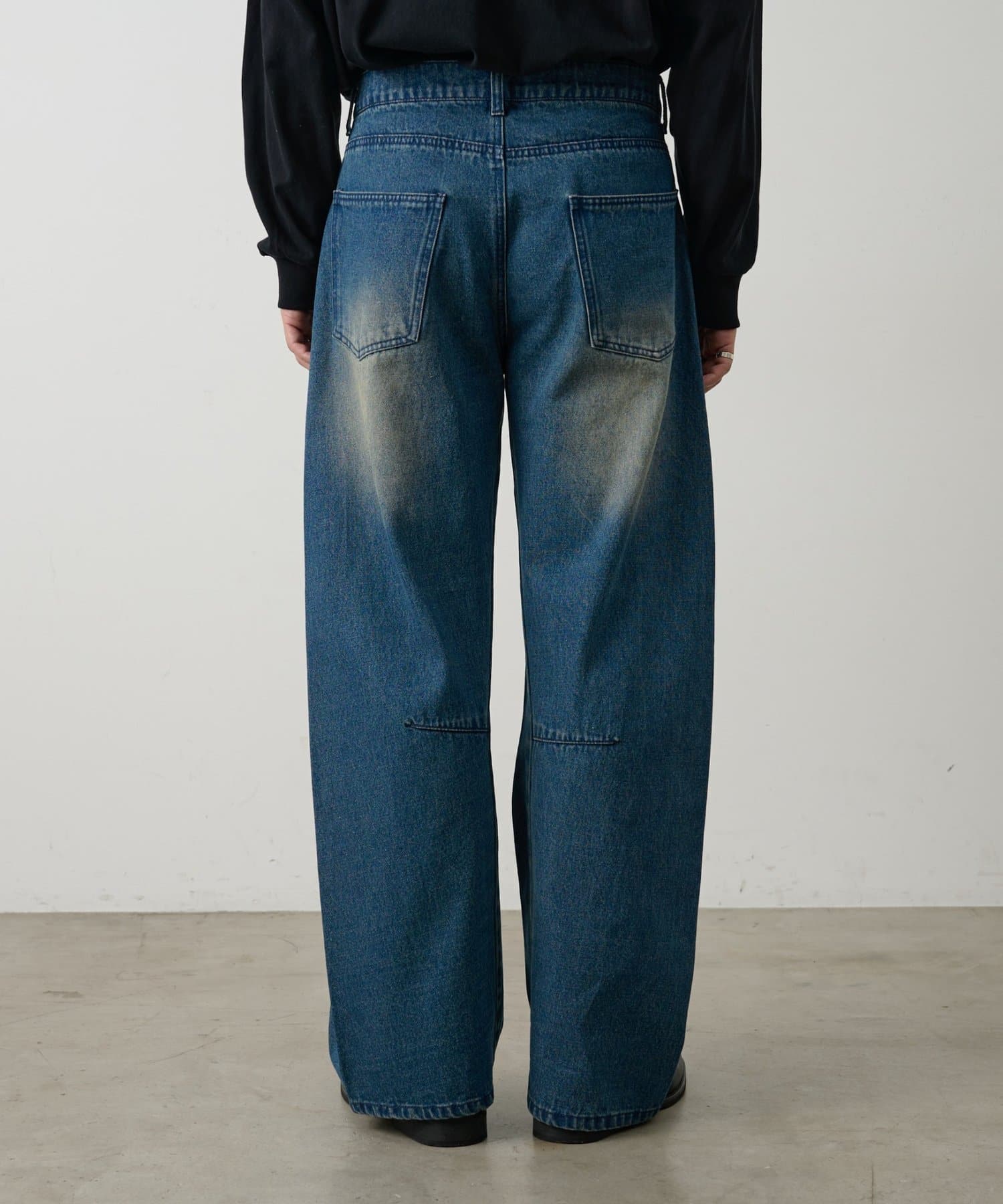 程よく色落ちさせたヴィンテージライクな風合いが魅力のカーブフレアデニムパンツです。