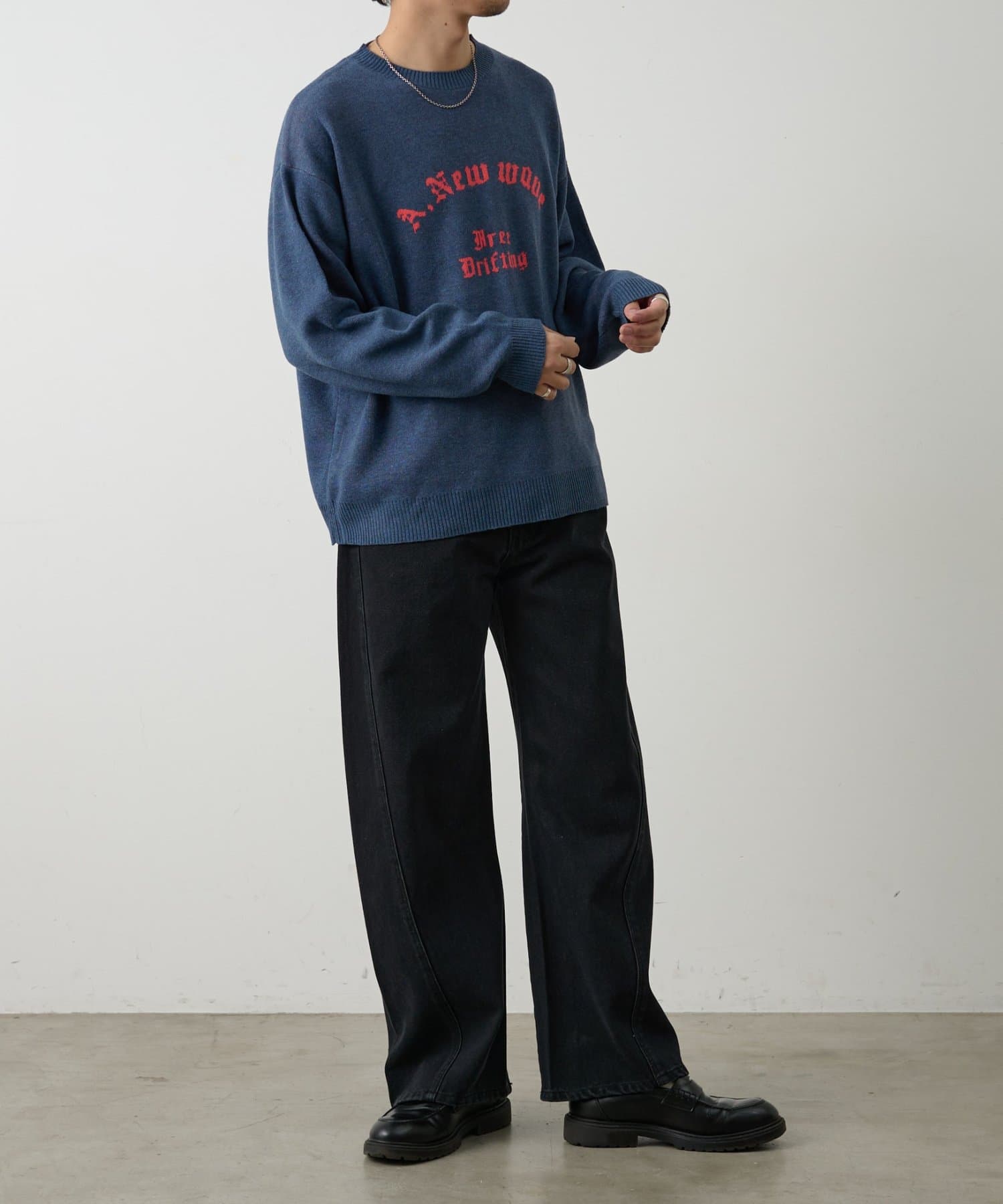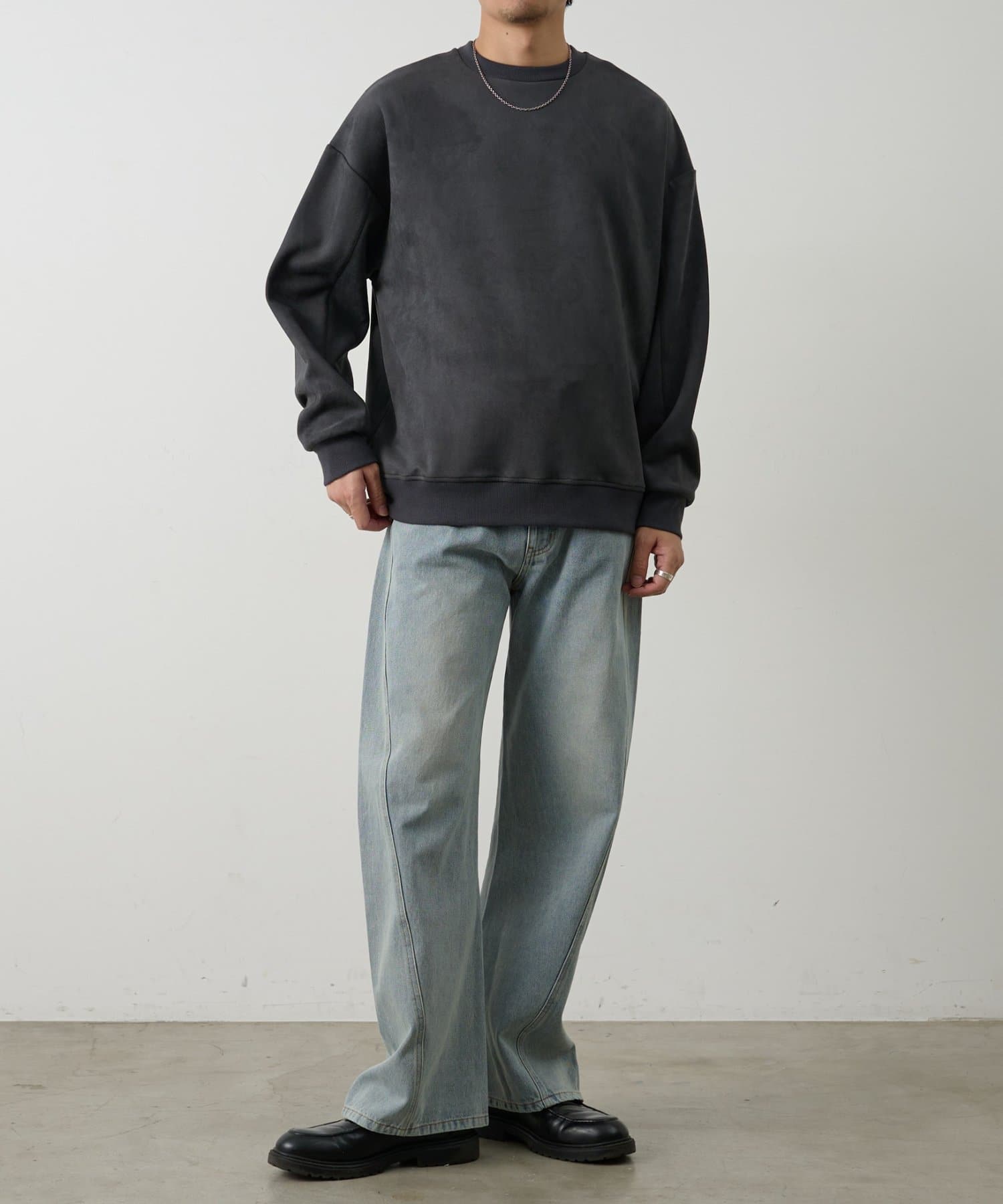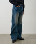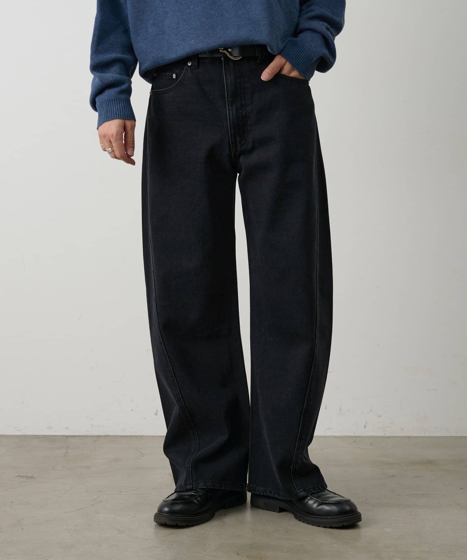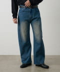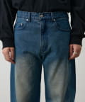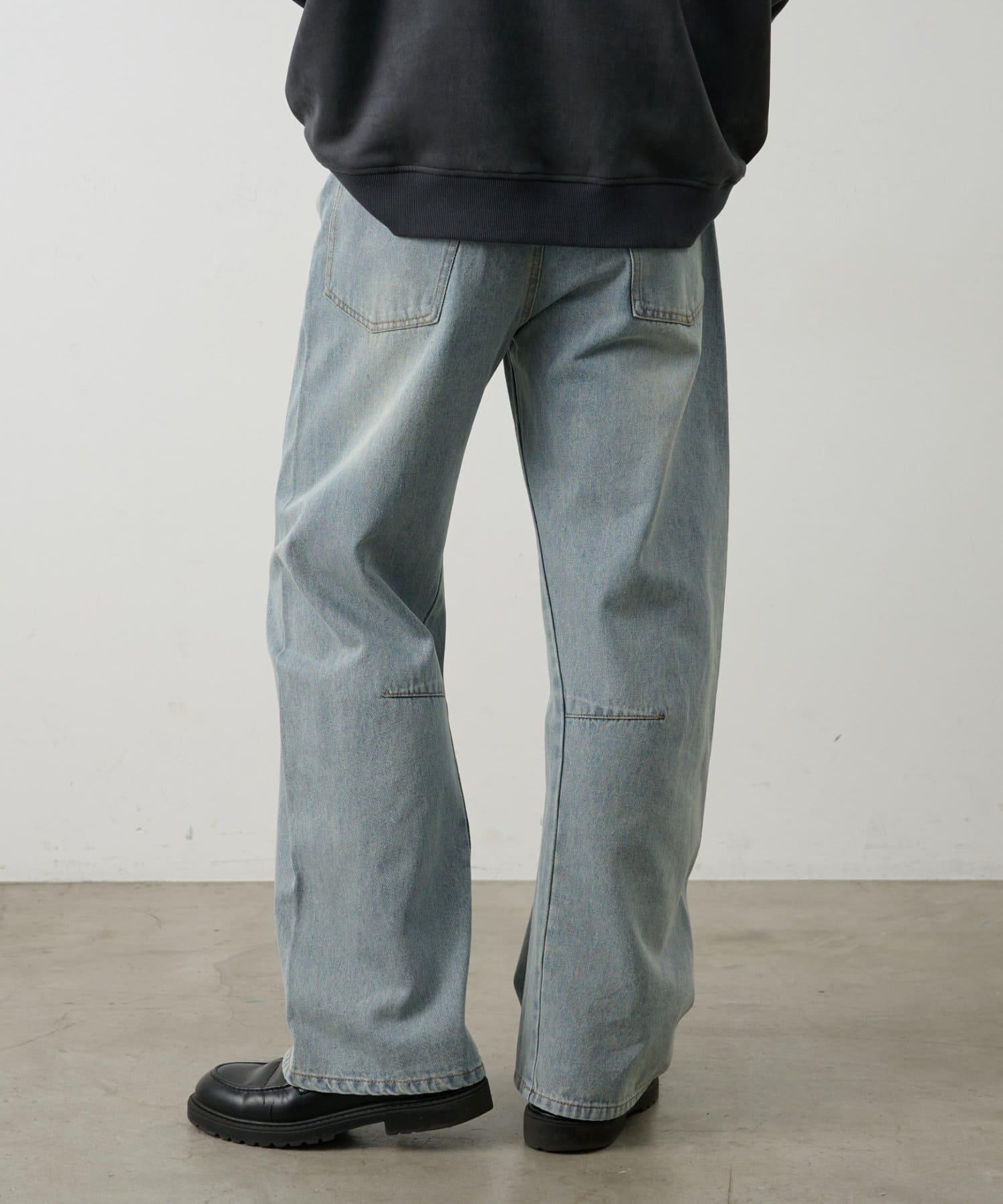 程よく色落ちさせたヴィンテージライクな風合いが魅力のカーブフレアデニムパンツです。