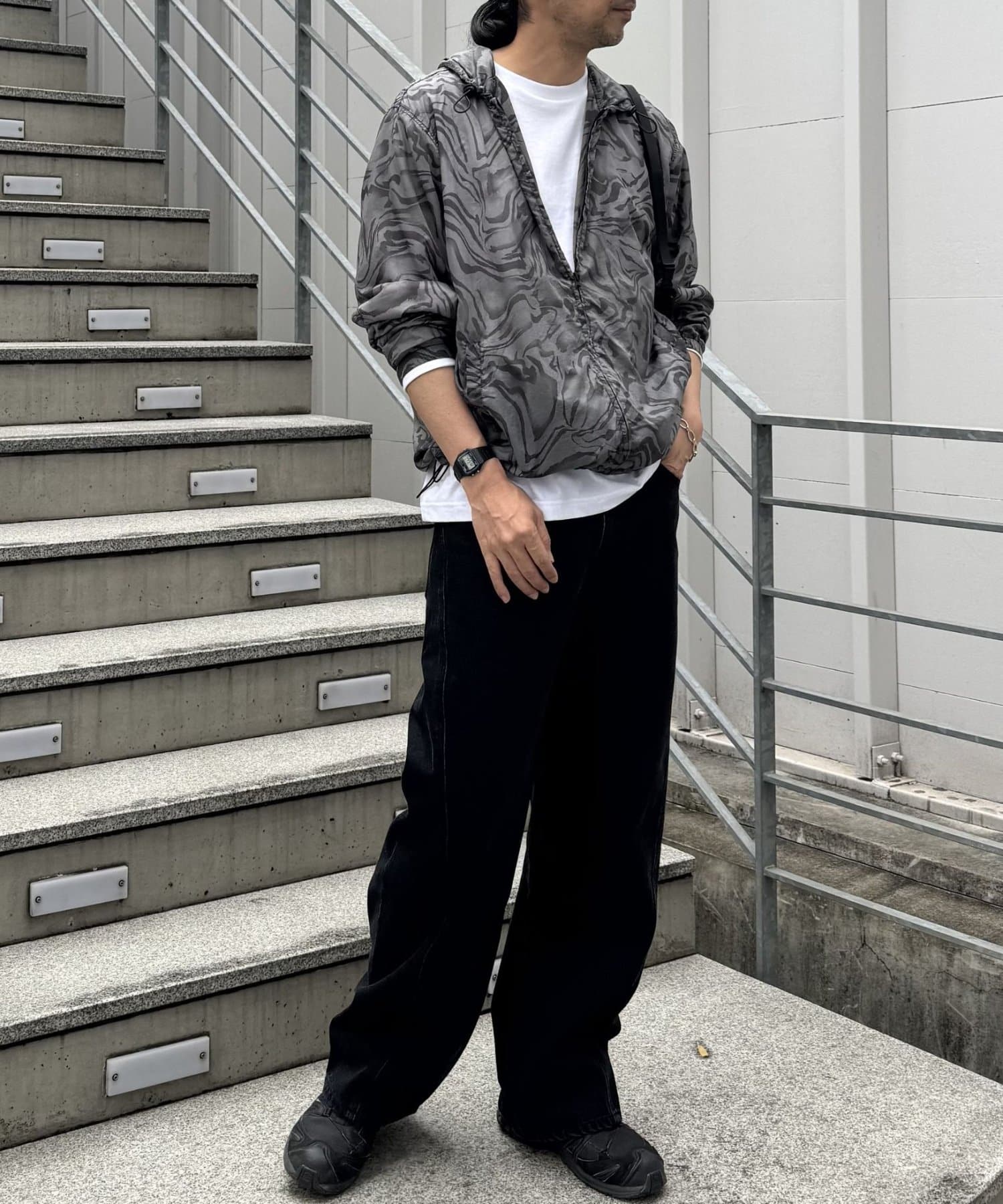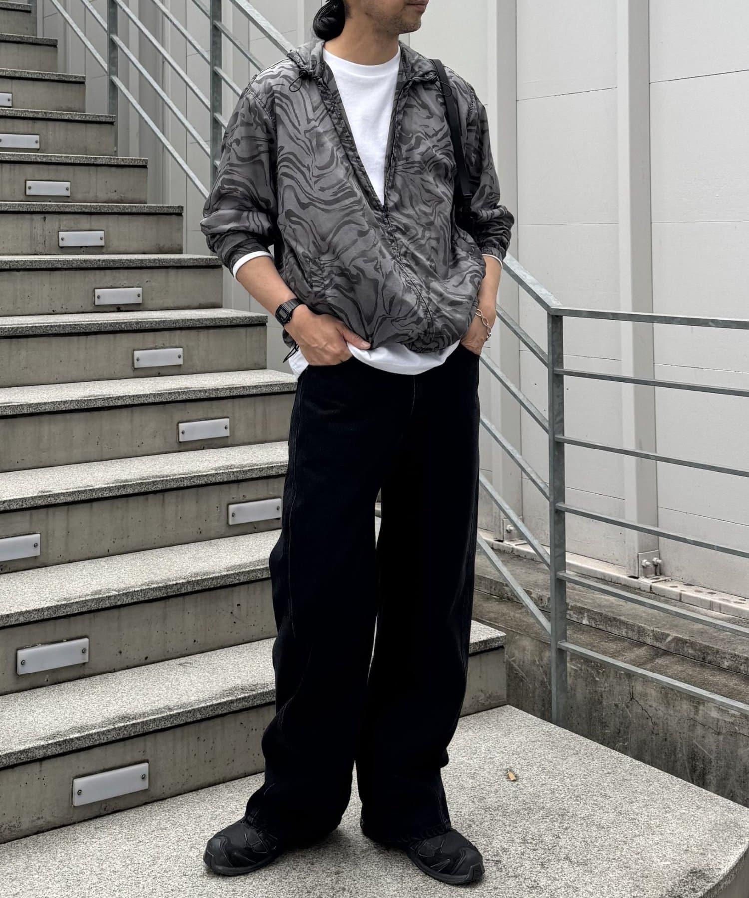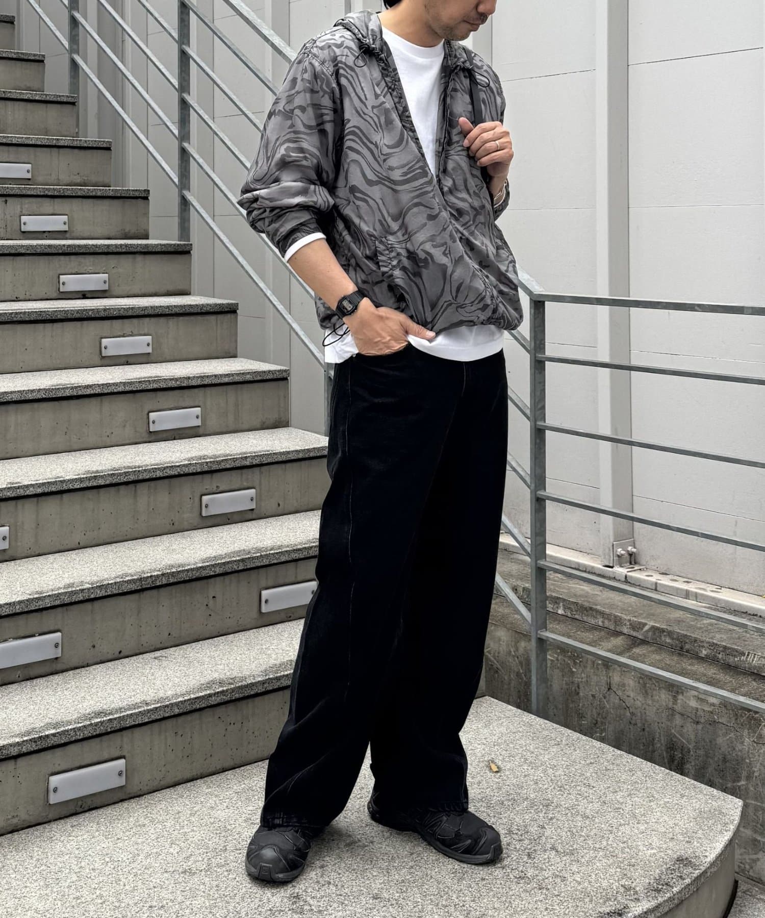 一年中使いやすい生地感でロングシーズン着用可能。ジャケットやニット、スウェットなど様々な系統のアイテムとも相性抜群です。