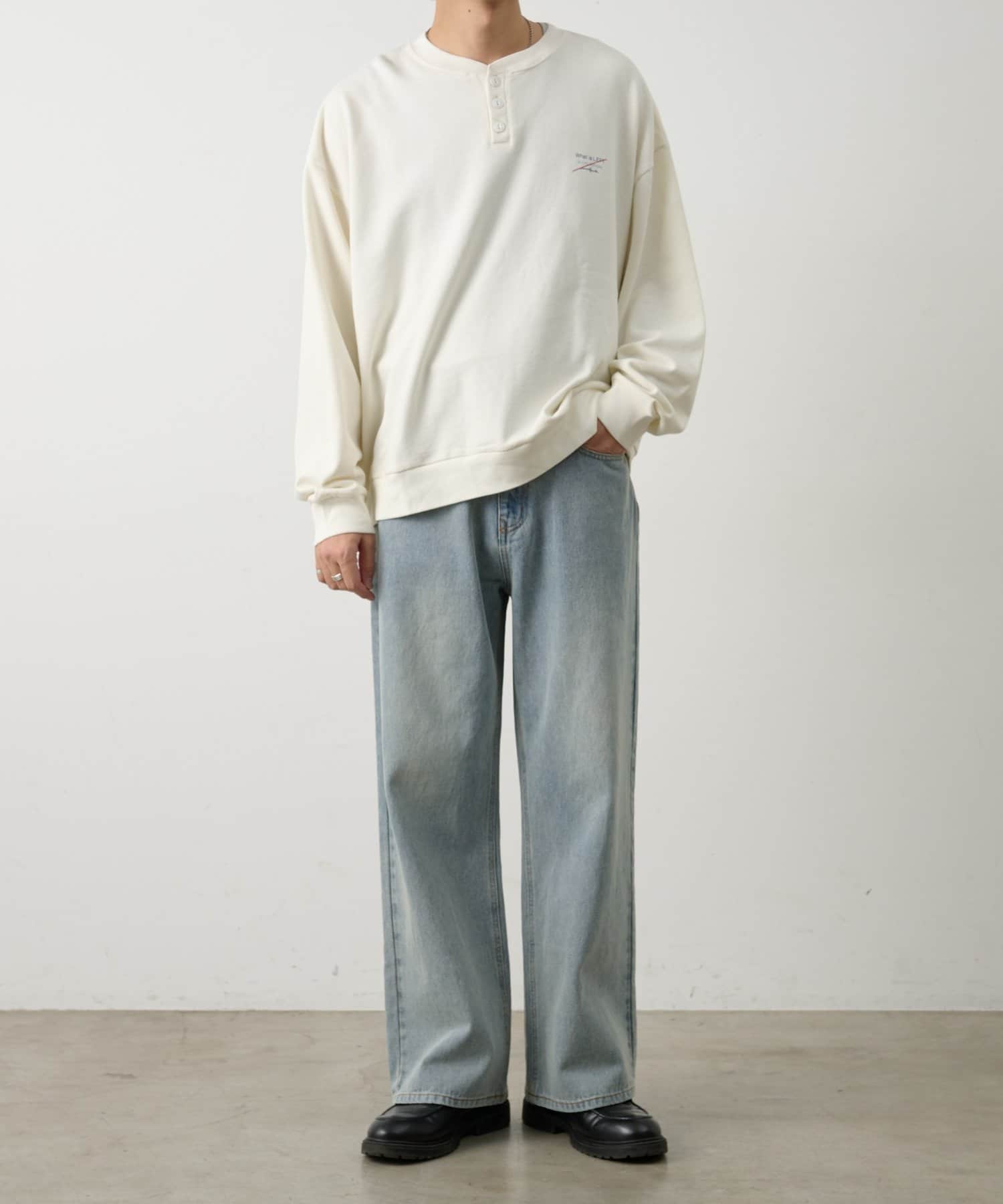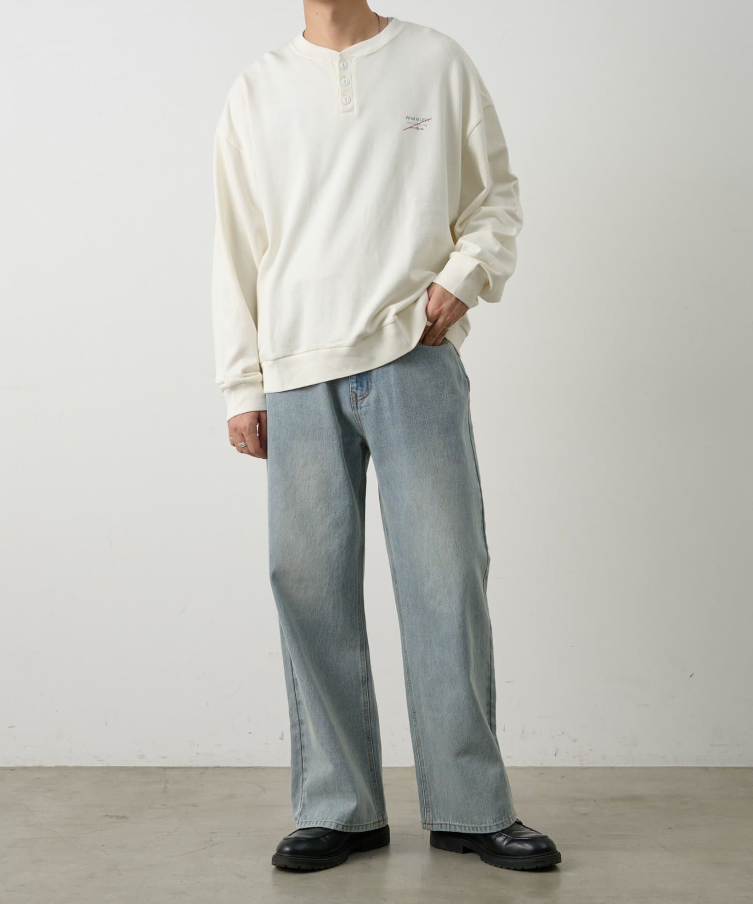 程よい色落ち加工で仕上げたヴィンテージライクなデザインが魅力のルーズストレートデニムパンツです。