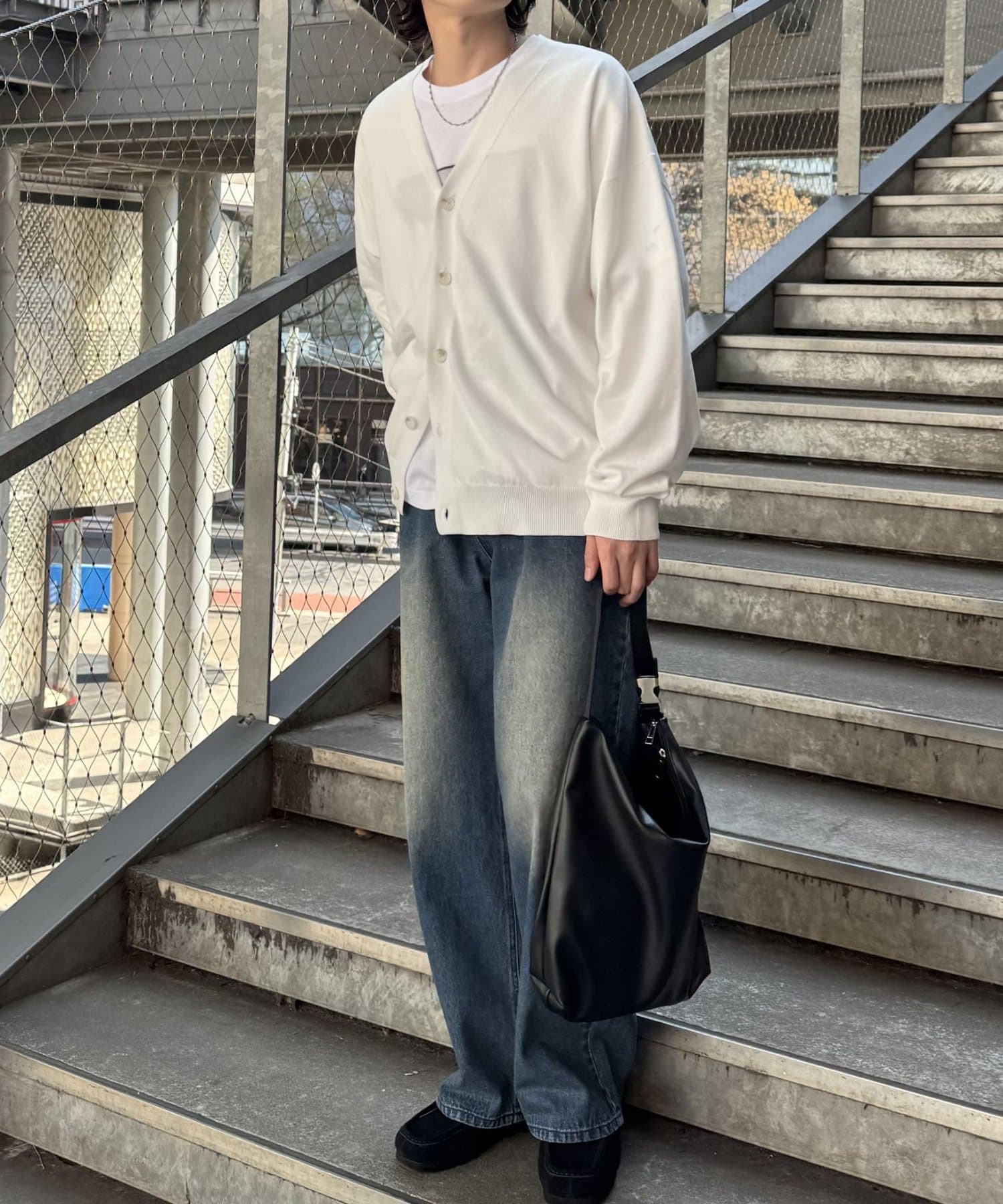 ルーズすぎない程よいゆとり感になっているので、キレイめな印象にも合わせられる万能アイテムです。