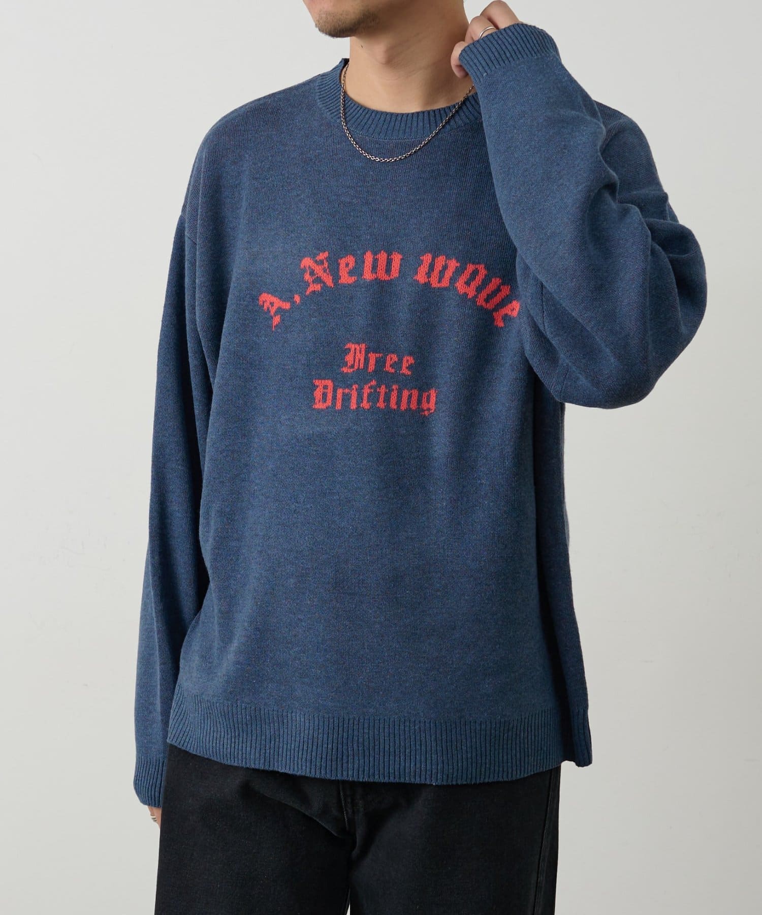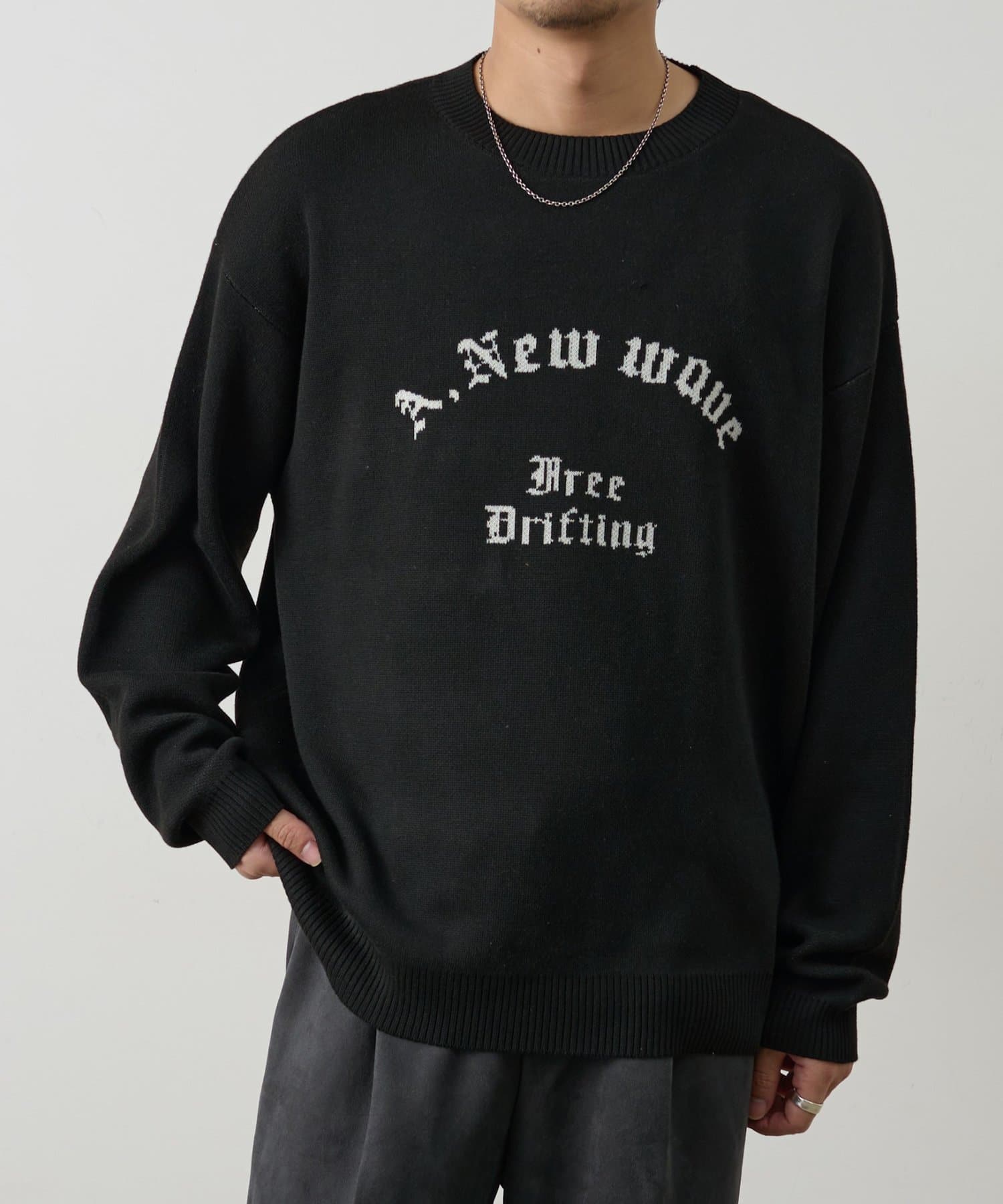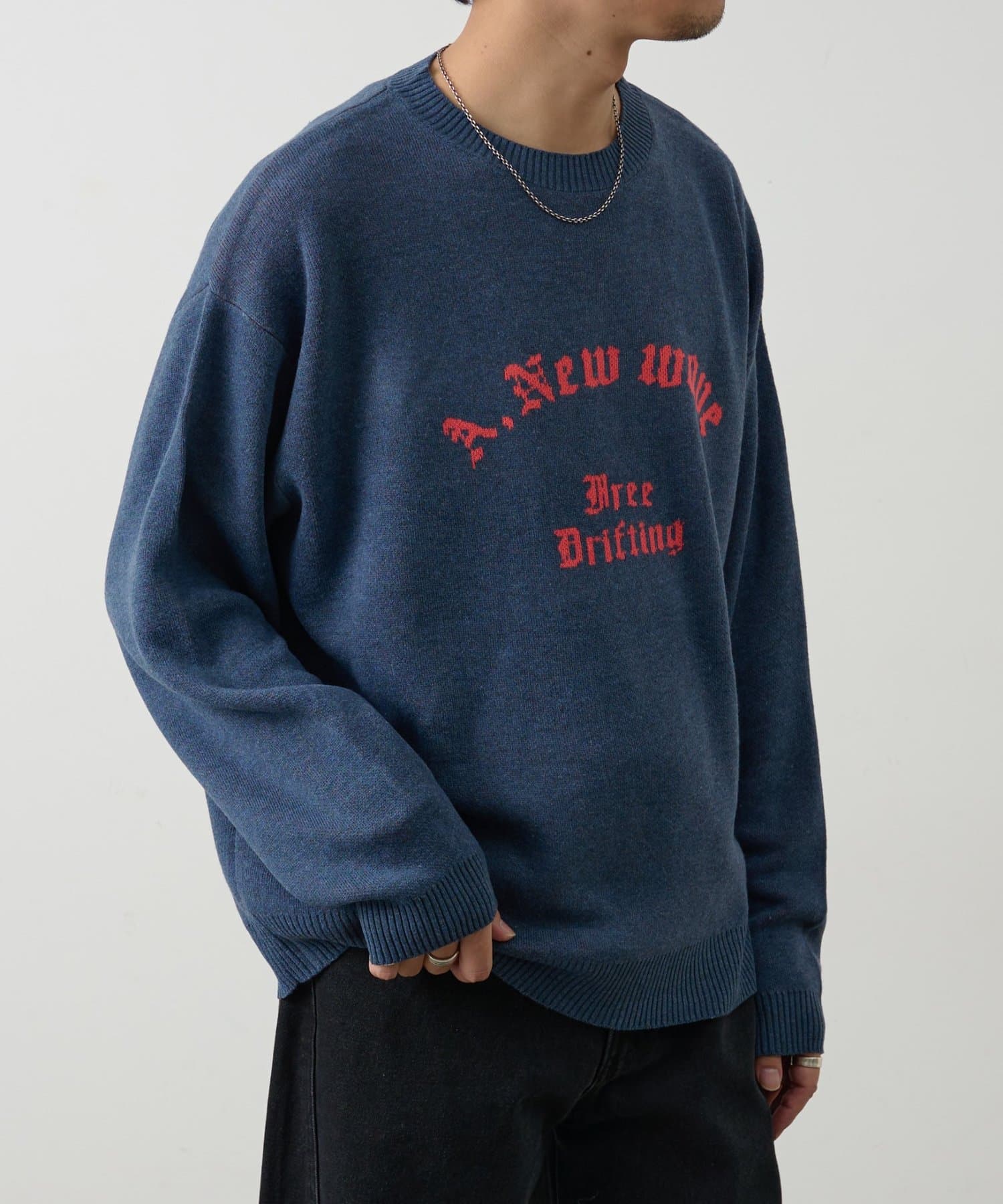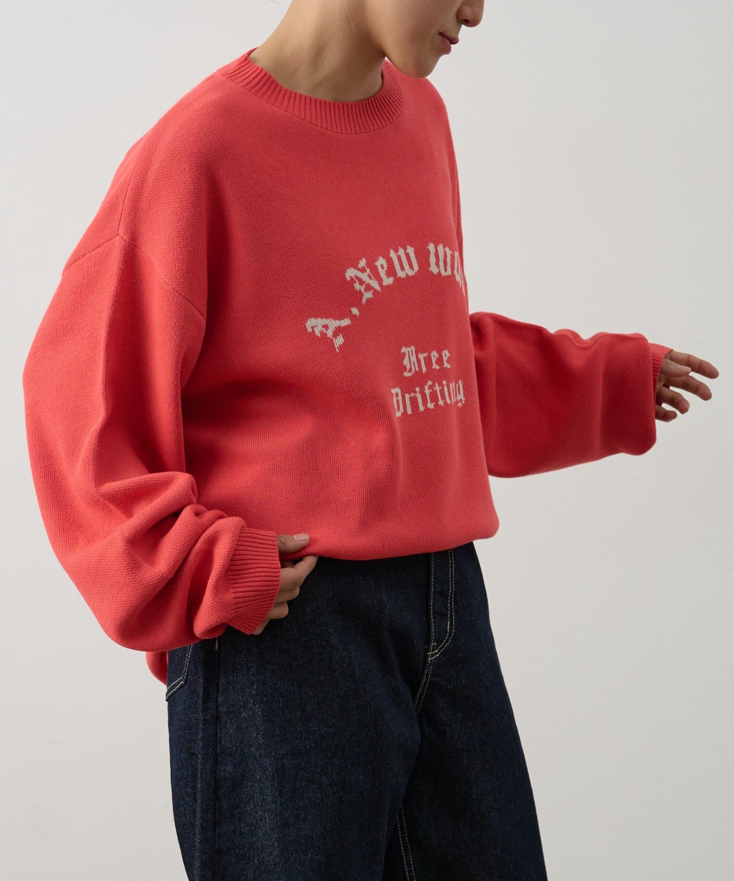 フロントに大きく配置したアーチロゴが目を引く、存在感のあるジャガードニットです。